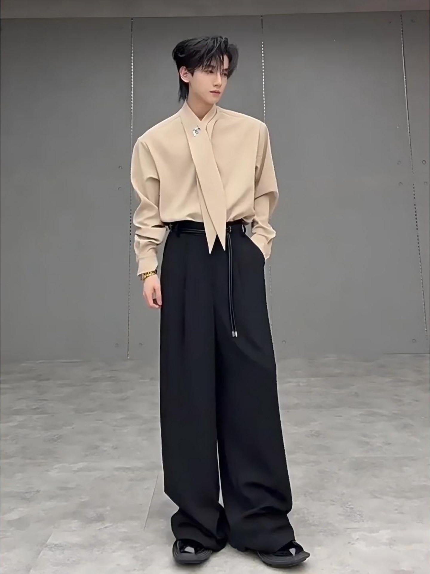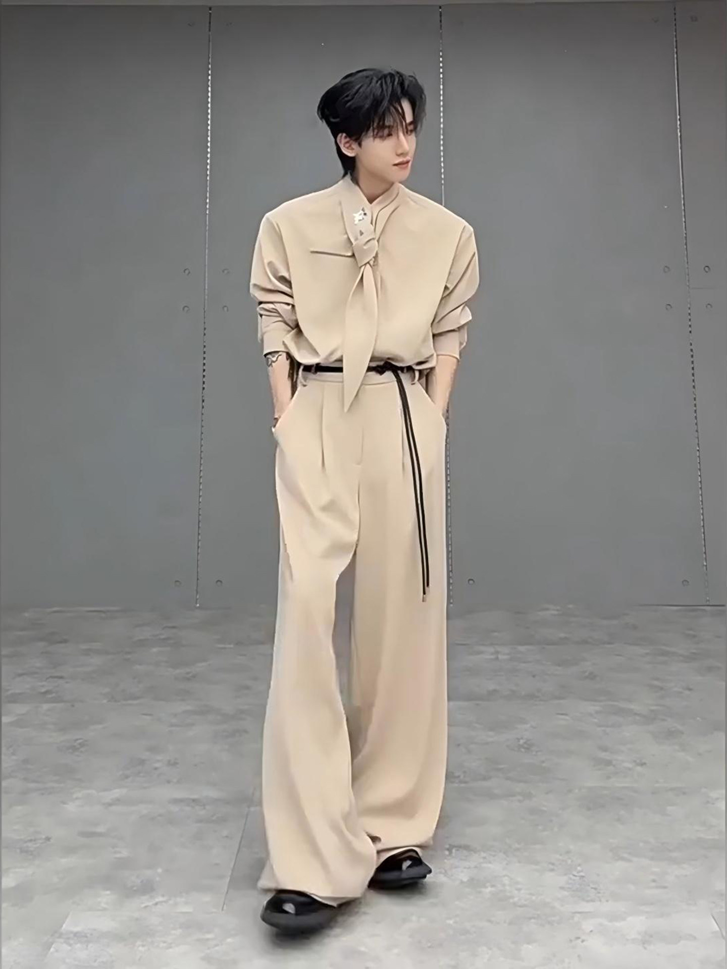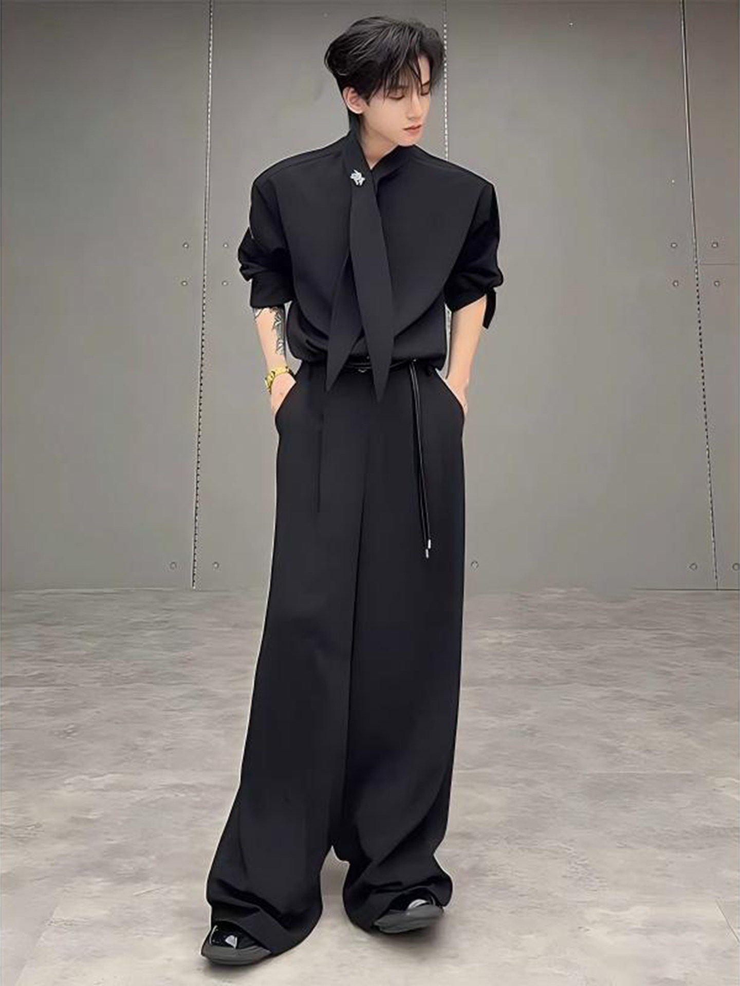 Tie with Scarf, Bow Tie, Shoulder Pads, Shirt, British Style, Yuppie Style Men's Suit, Stylish Design, Drapey Suit Pants