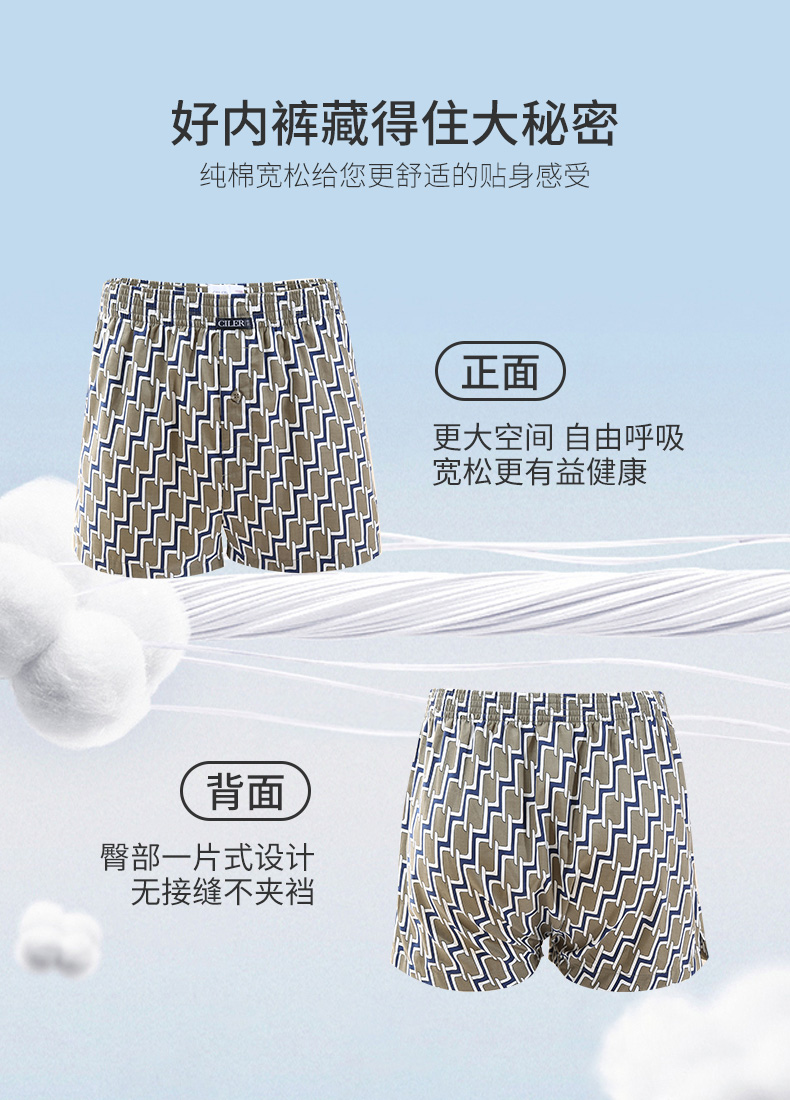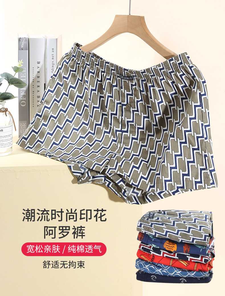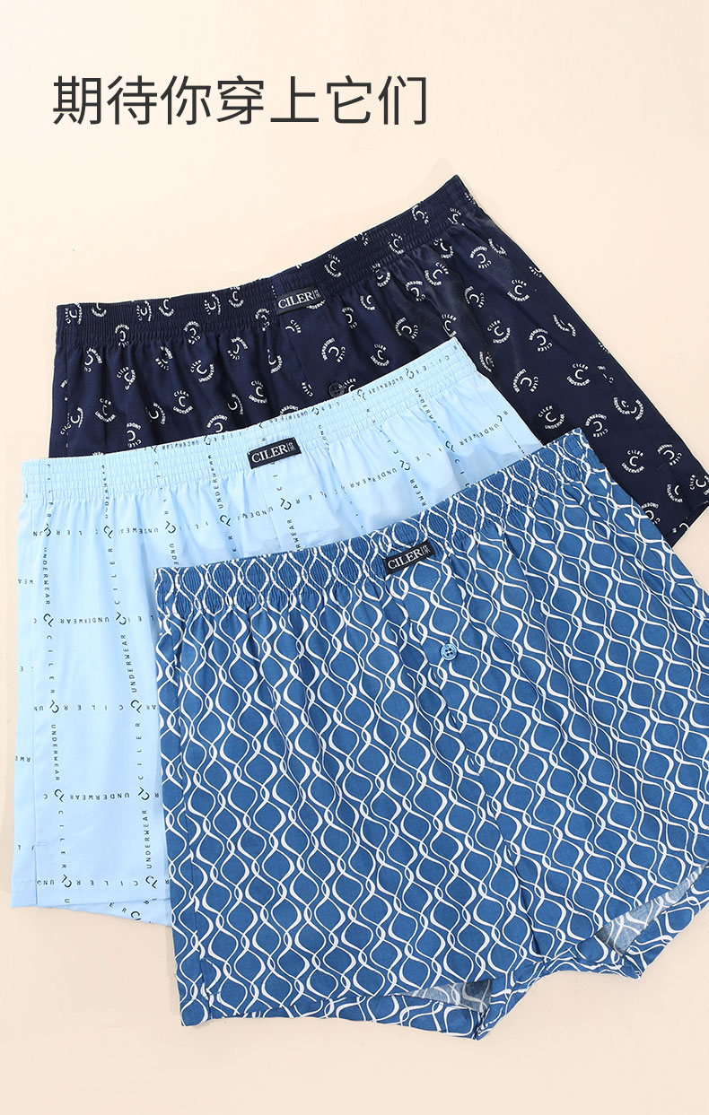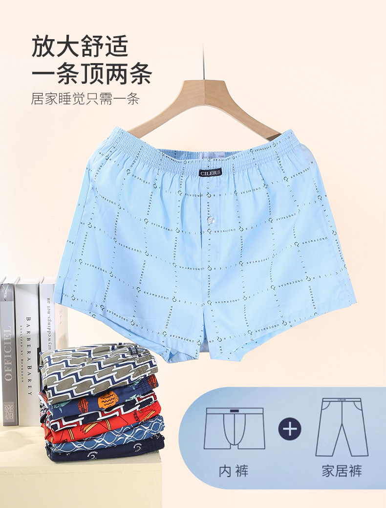 3 Pairs of Shile Men's Pure Cotton Boxer Briefs, Home Shorts, Loose Fit, Plus Size, Boys' Arrow Pants, Teenagers