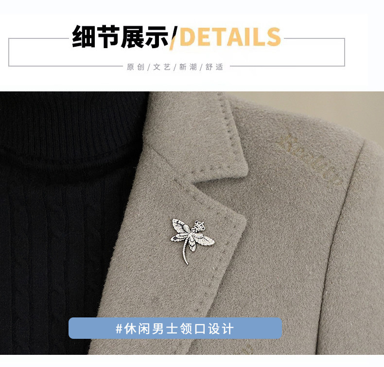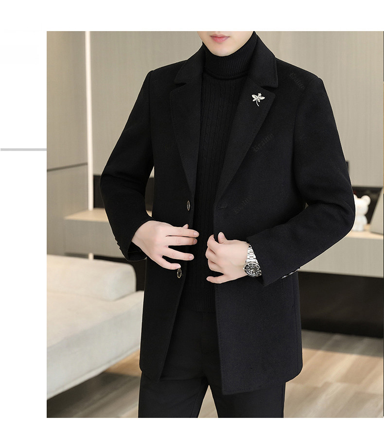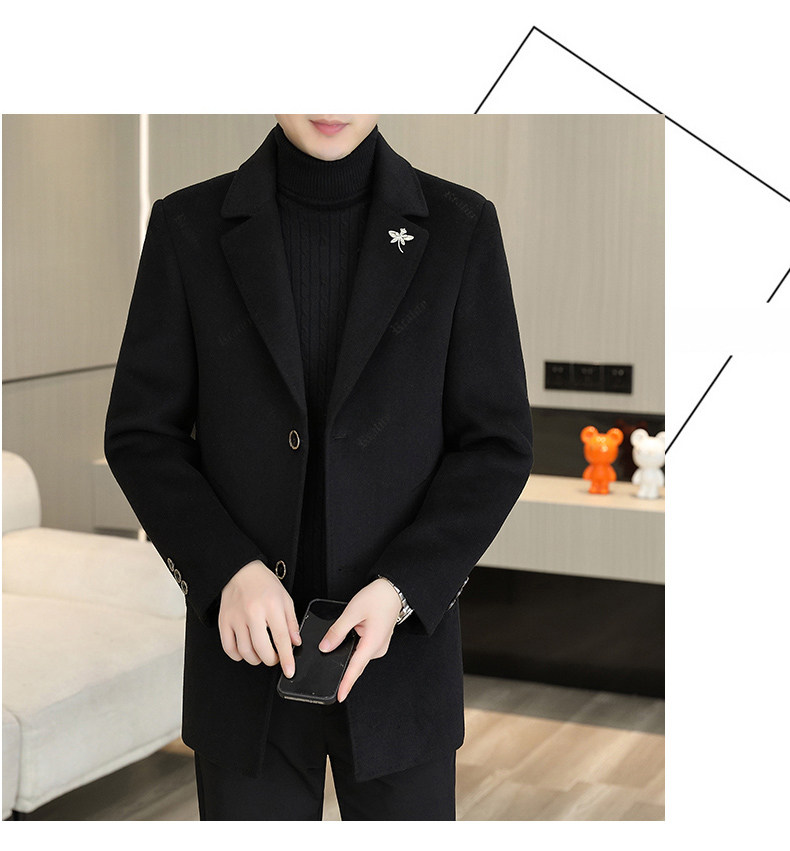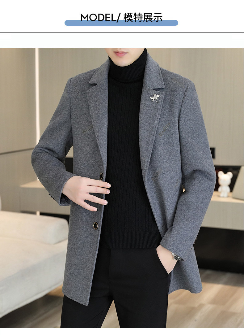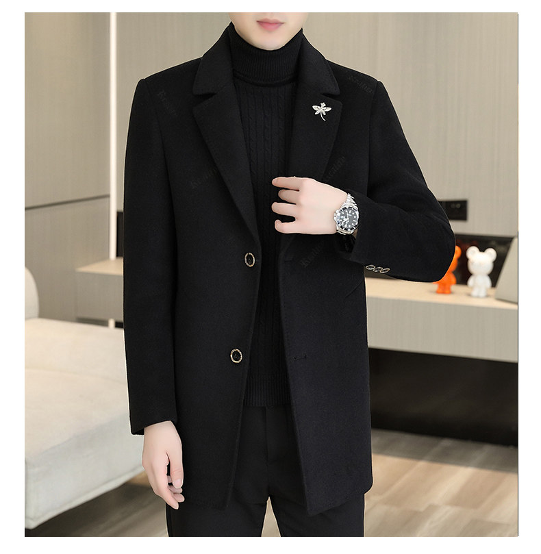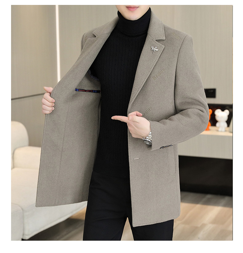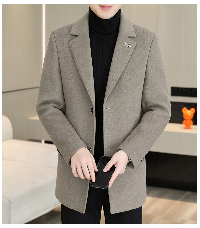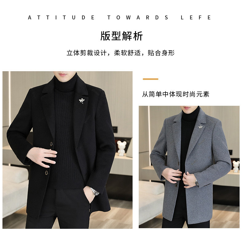 2025 New Autumn and Winter Thickened Warm Floral Mid-Length Casual Woolen Coat with Suit Collar for Men Trendy Jacket