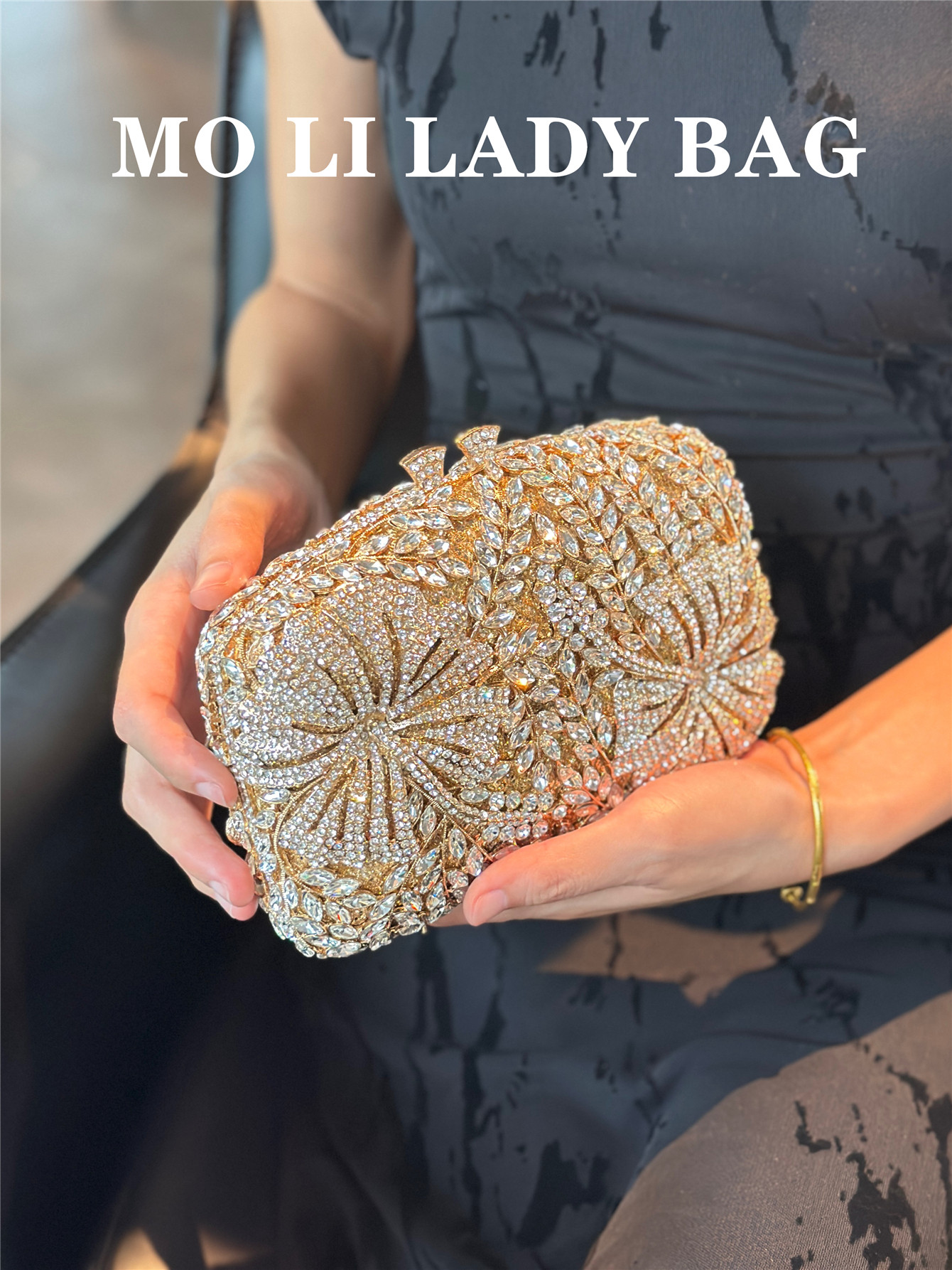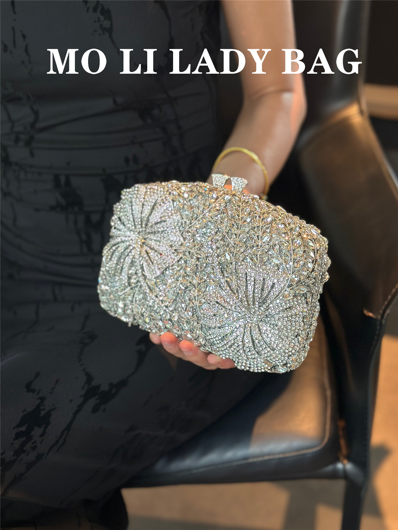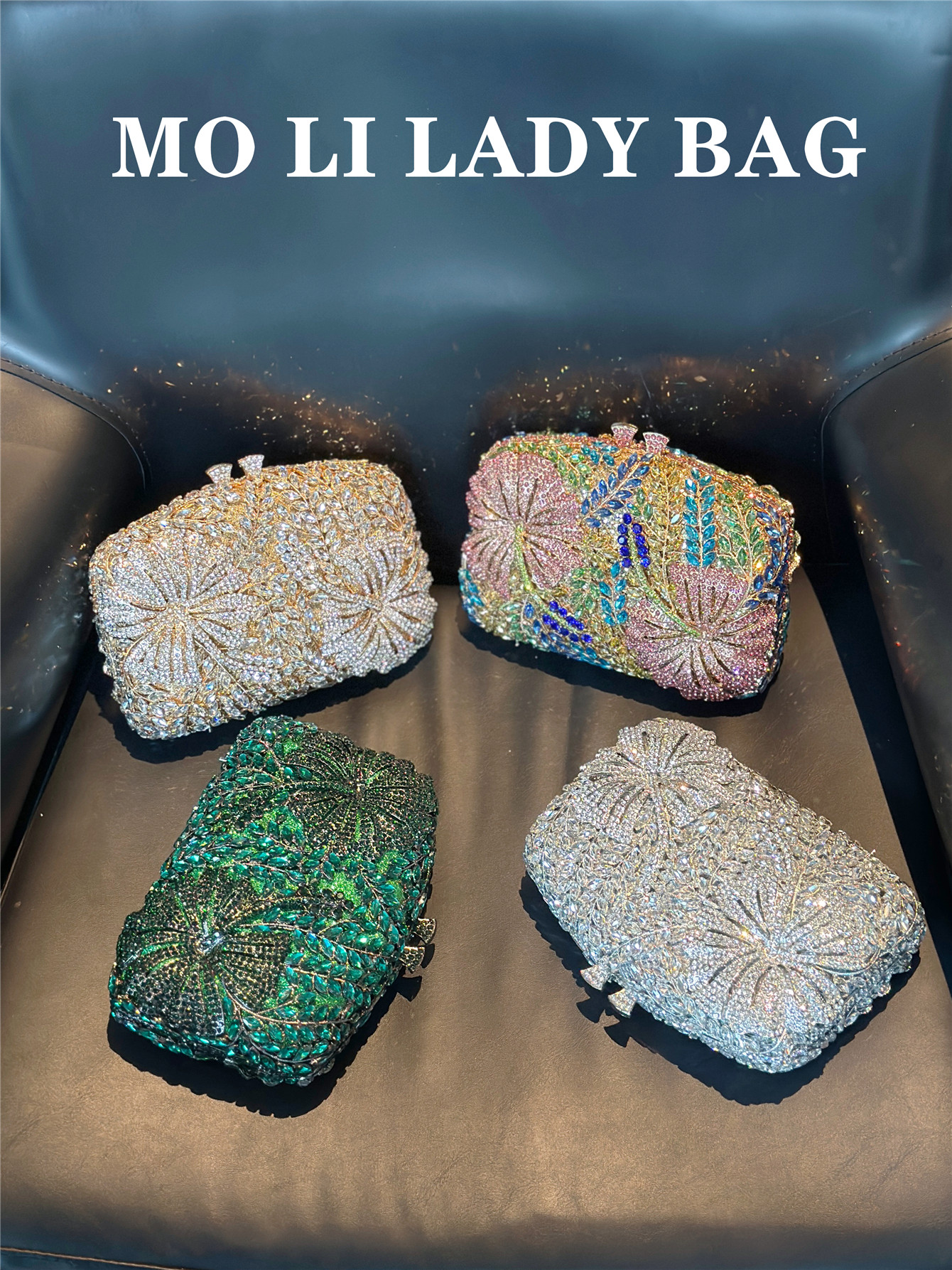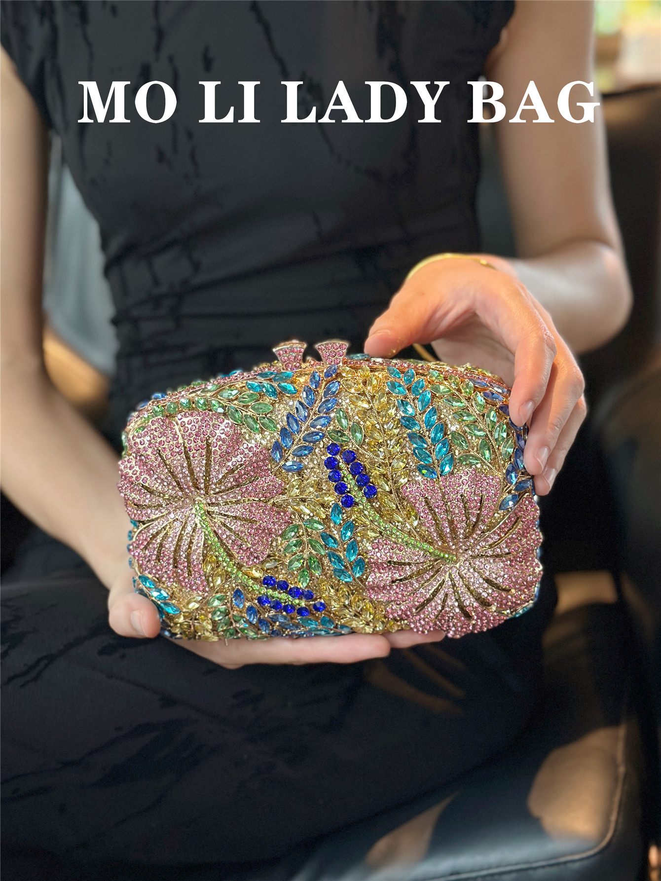 High-End French-Style Light Luxury Diamond-Encrusted Petal-Shaped Colorful Full Rhinestone Box Shiny Cheongsam Bag Evening Party Clutch Bag