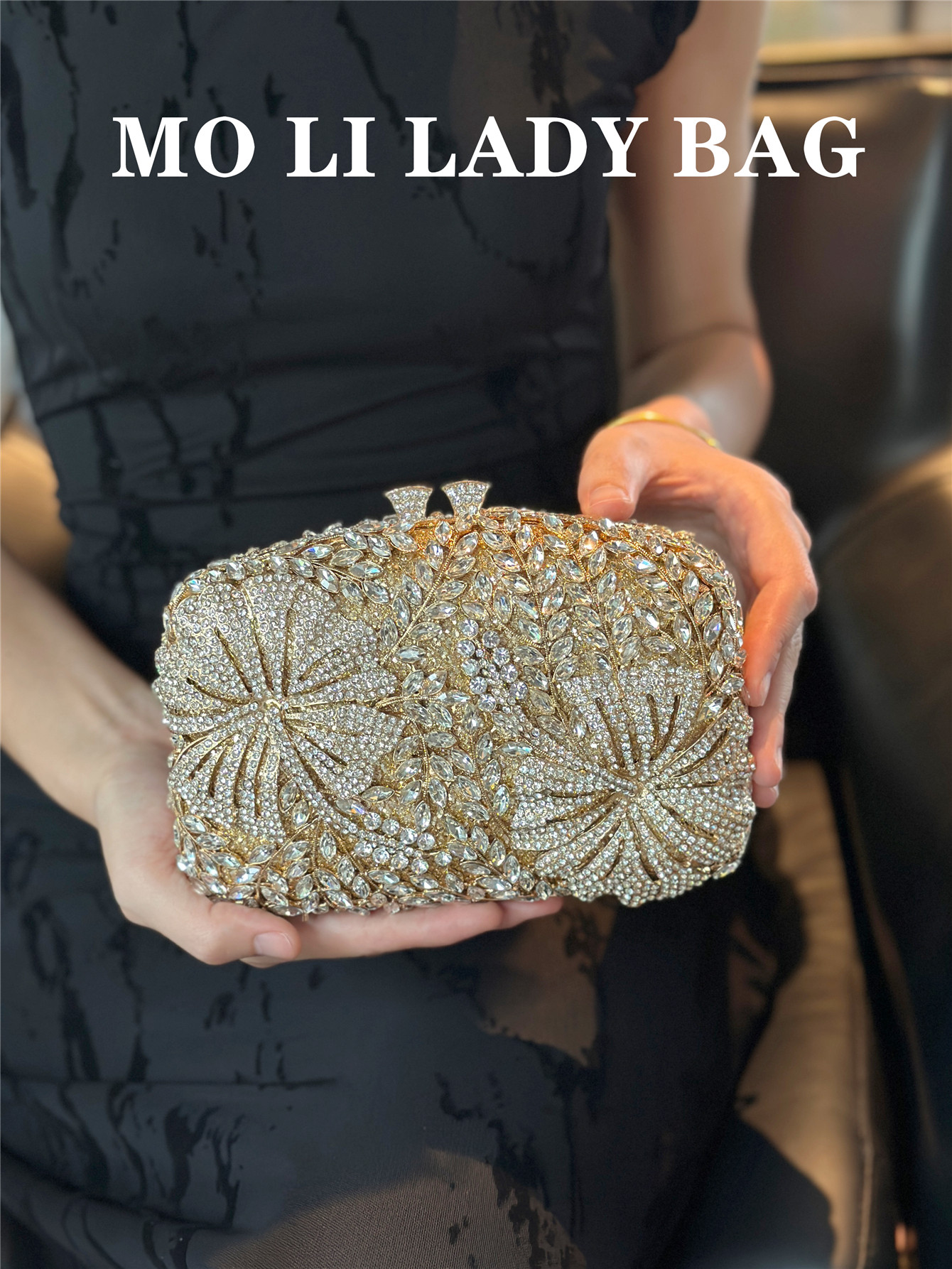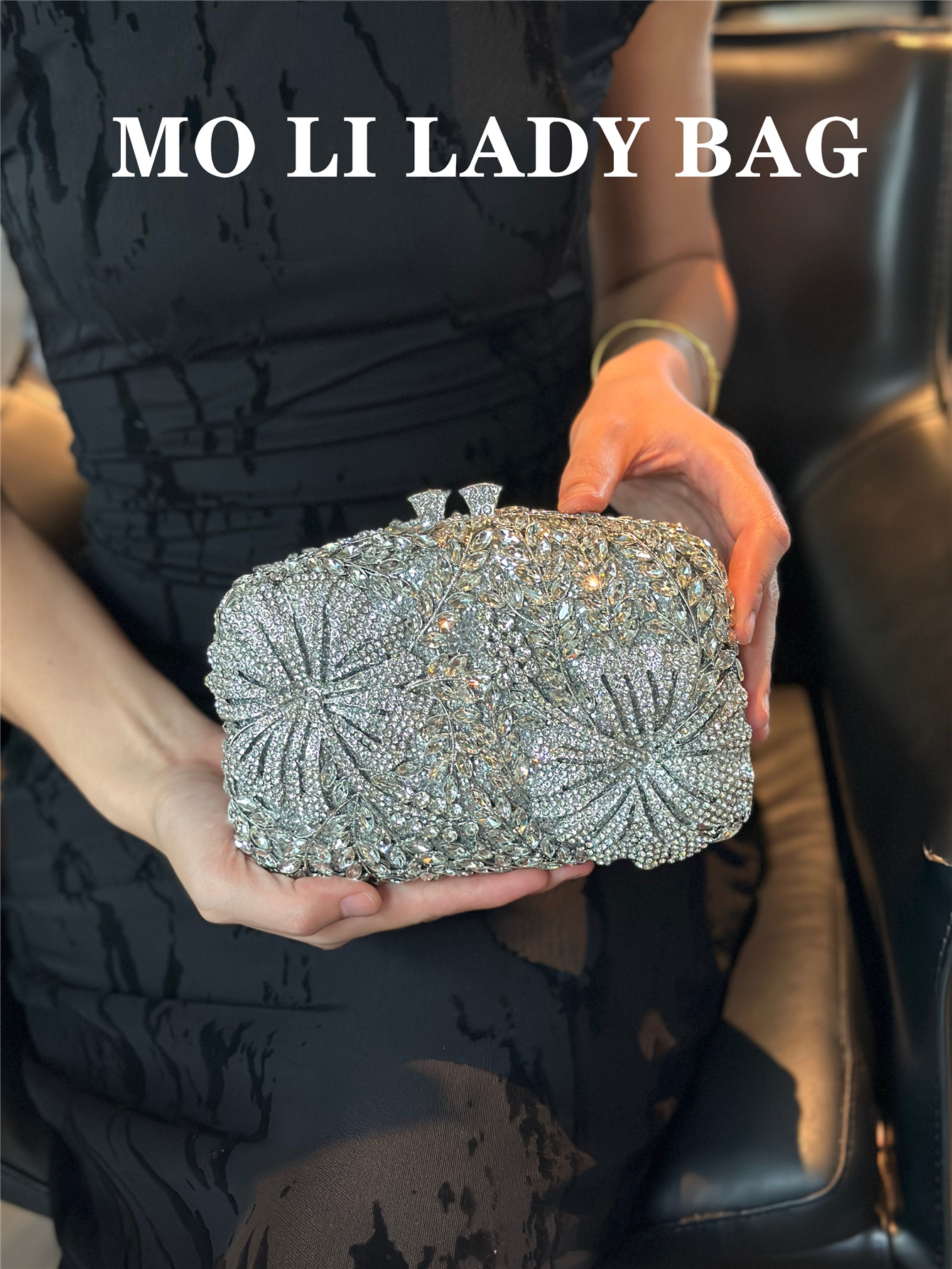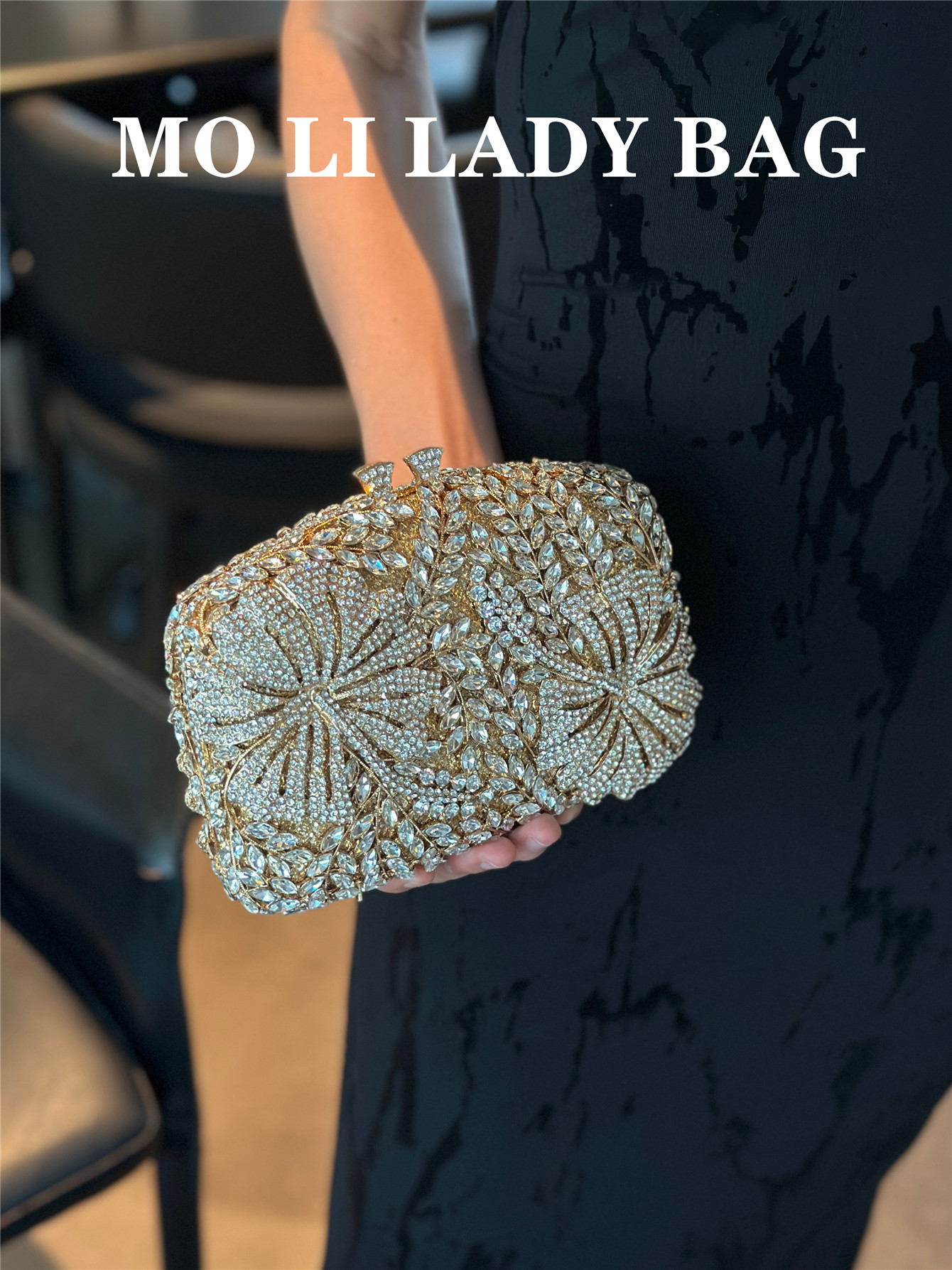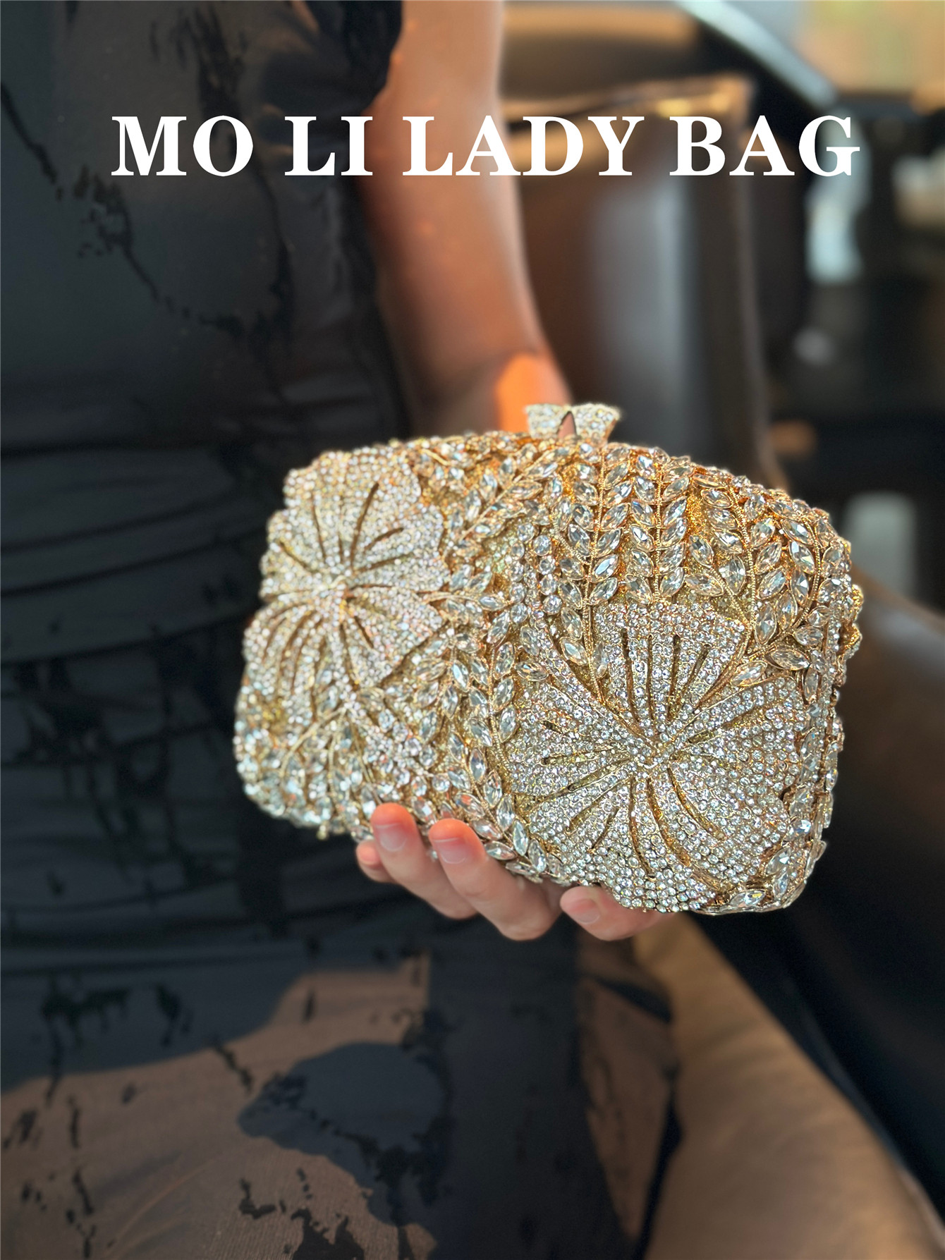 High-End French-Style Light Luxury Diamond-Encrusted Petal-Shaped Colorful Full Rhinestone Box Shiny Cheongsam Bag Evening Party Clutch Bag