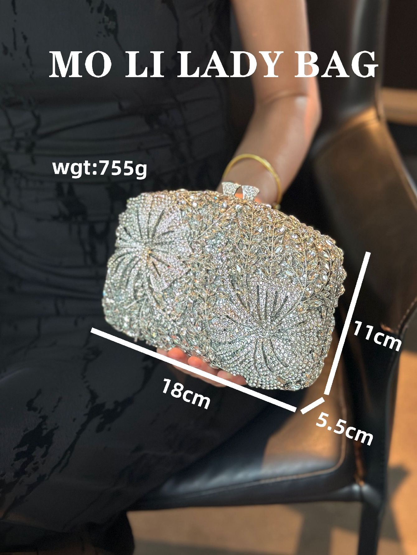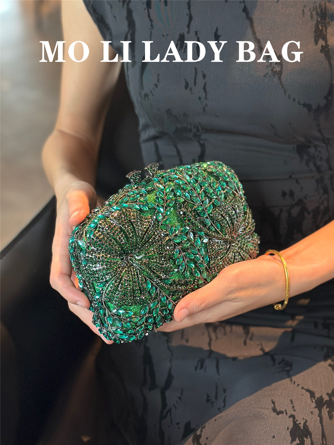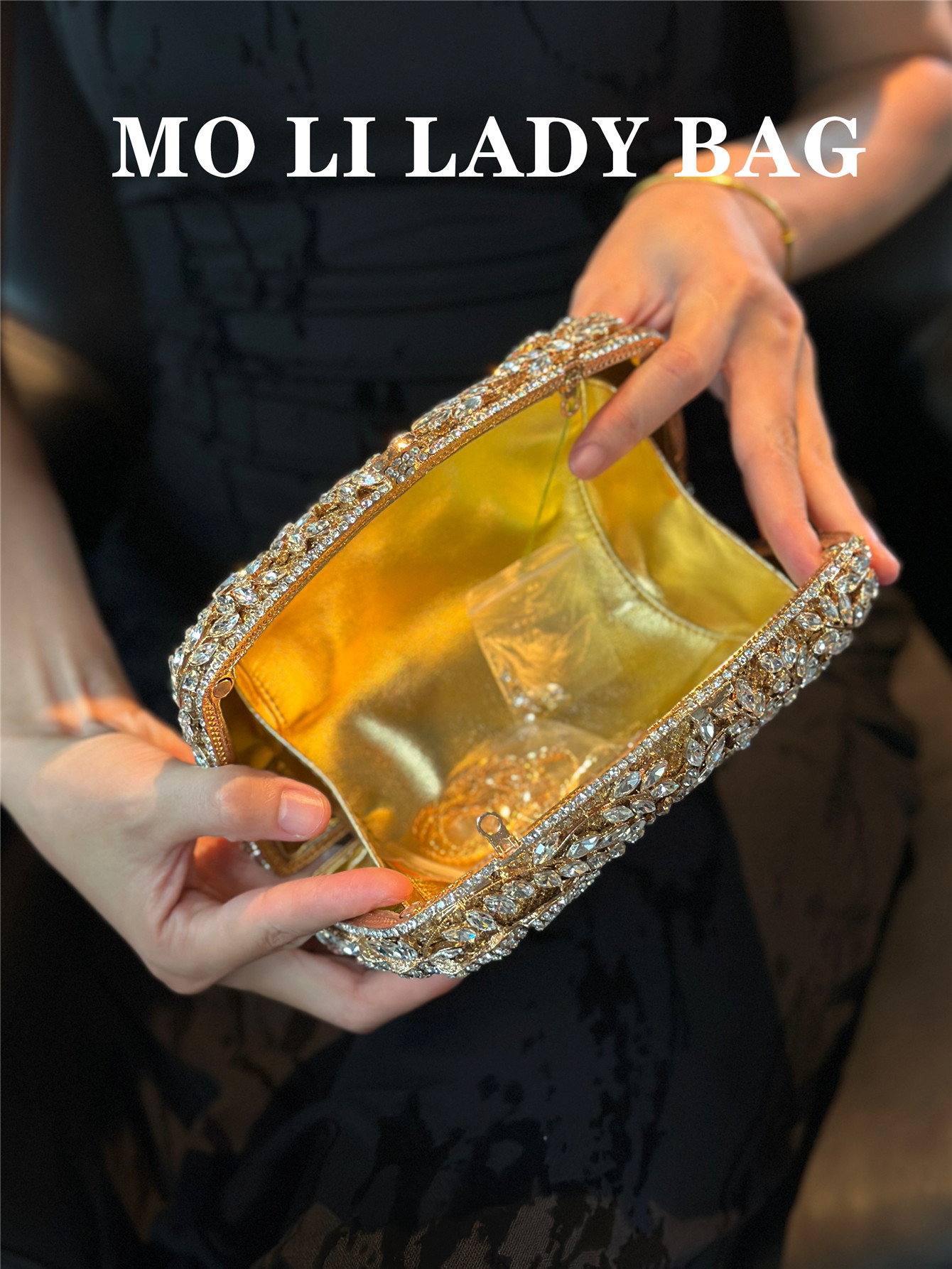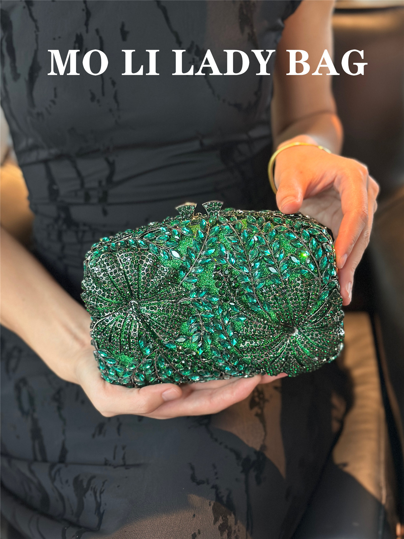 High-End French-Style Light Luxury Diamond-Encrusted Petal-Shaped Colorful Full Rhinestone Box Shiny Cheongsam Bag Evening Party Clutch Bag
