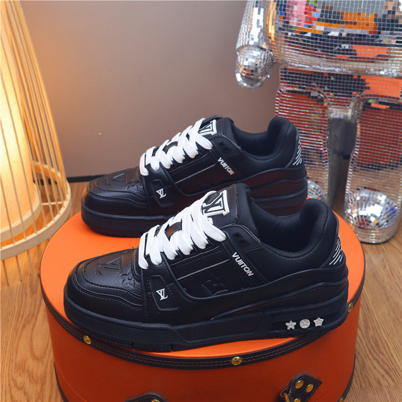 Light Luxury Trendy Brand Couple Shoes for Men 2025 New Black Warrior Print Round Toe Low-Top Shoes Student Height-Increasing Sneakers