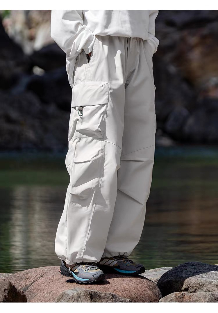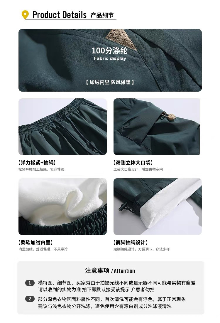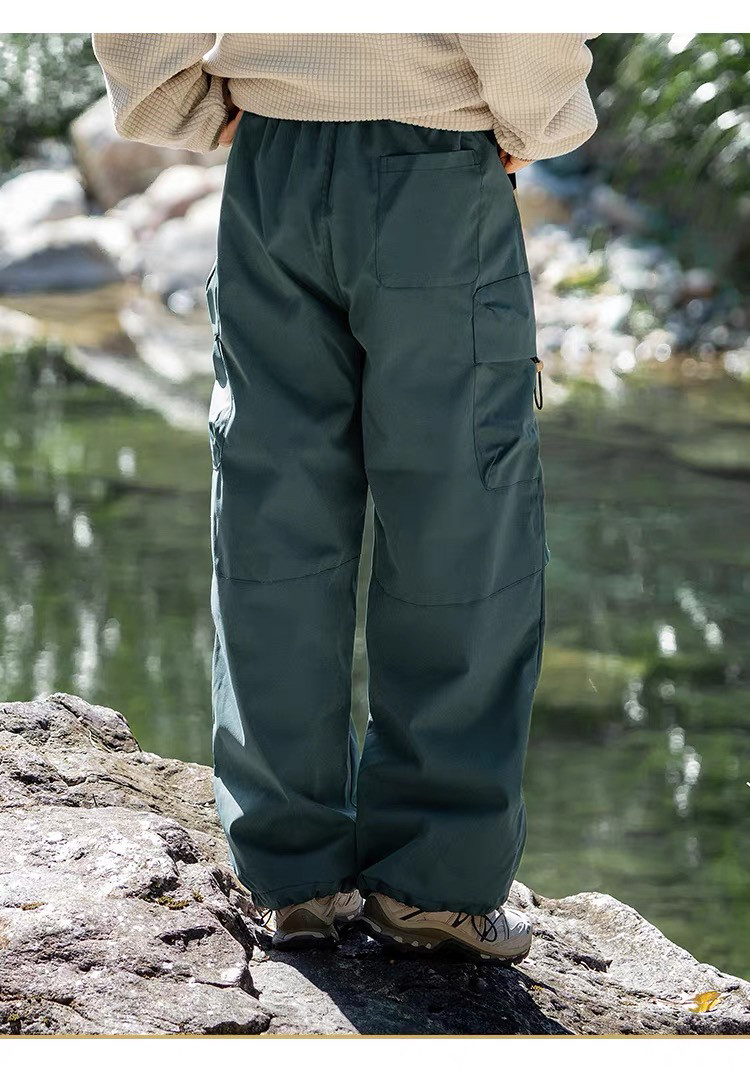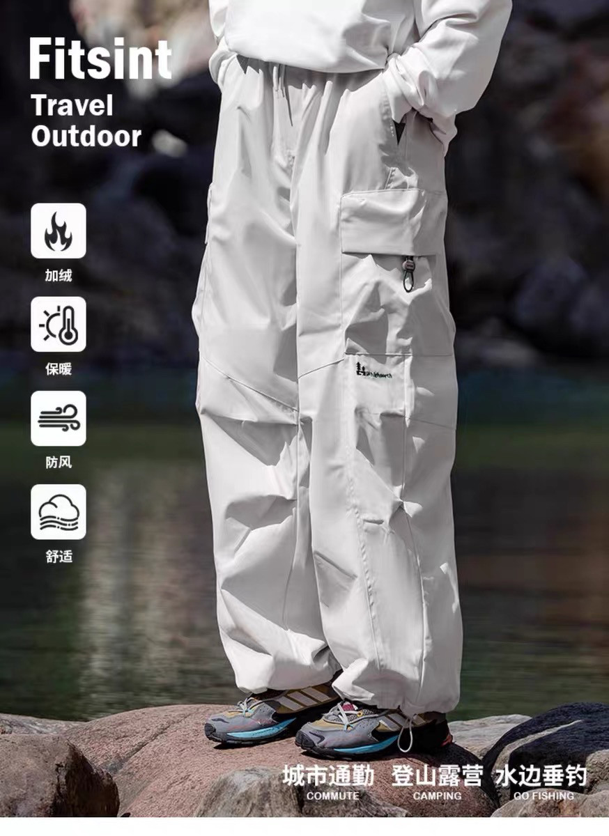 Sweetie Winter American-Style Work Pants, Thickened and Fleece-Lined, Multi-Pocket Design, Drawstring Windproof Hiking Pants