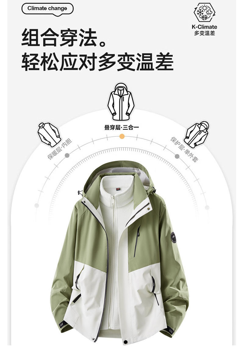 Wassup Jalyn Outdoor Three-In-One Jacket for Men and Women, Spring and Autumn Detachable Couple's Hiking Jacket