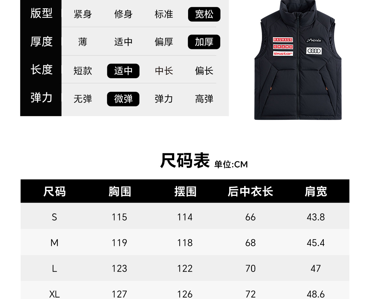 Phenix National Team Warm down Vest Men's 2025 Autumn and Winter Stand-Up Collar Goose down Lightweight Jacket
