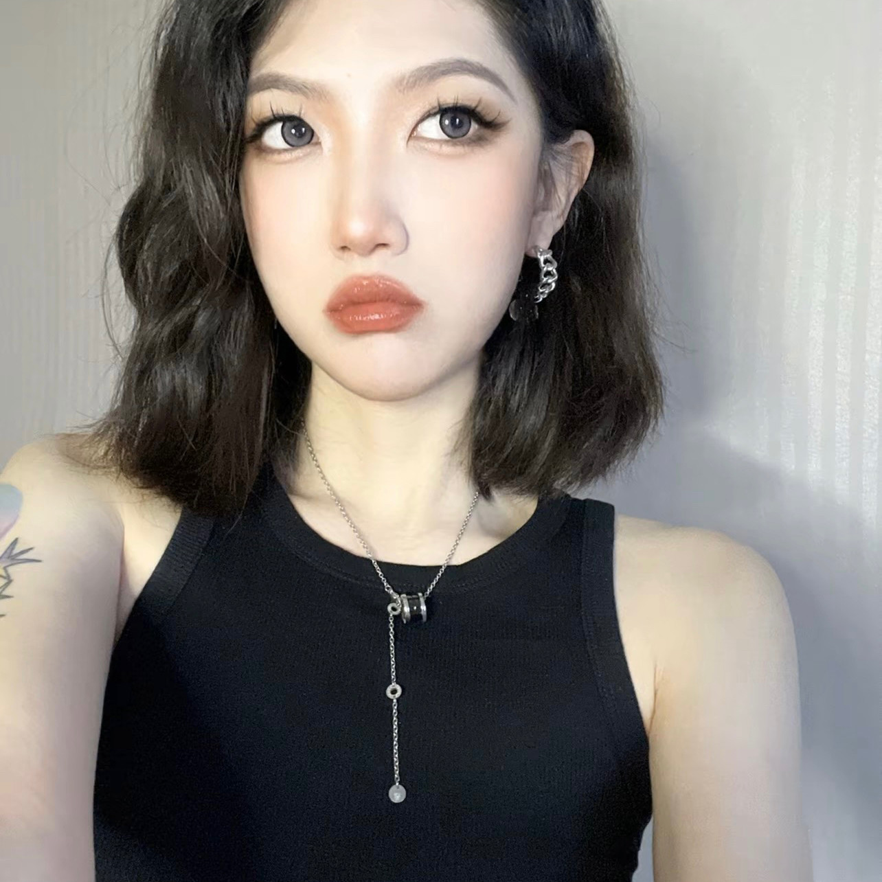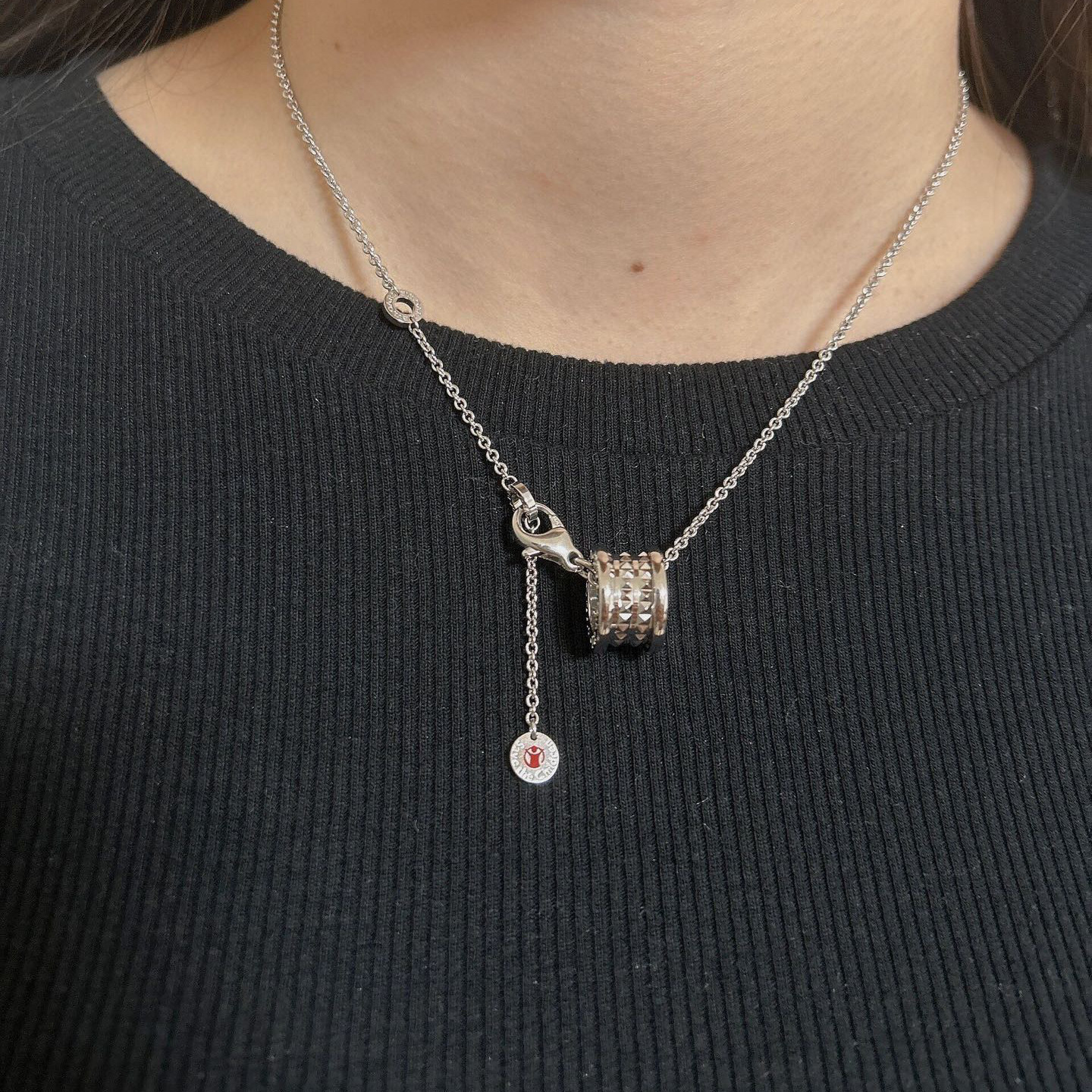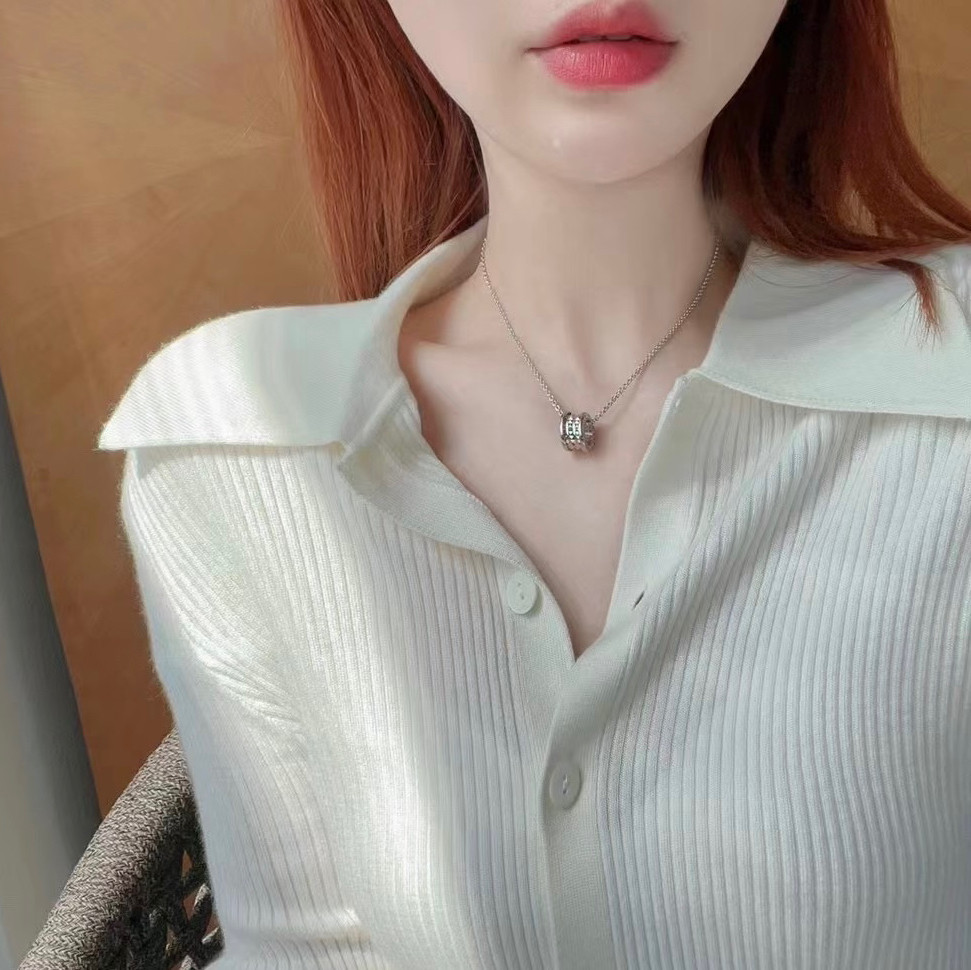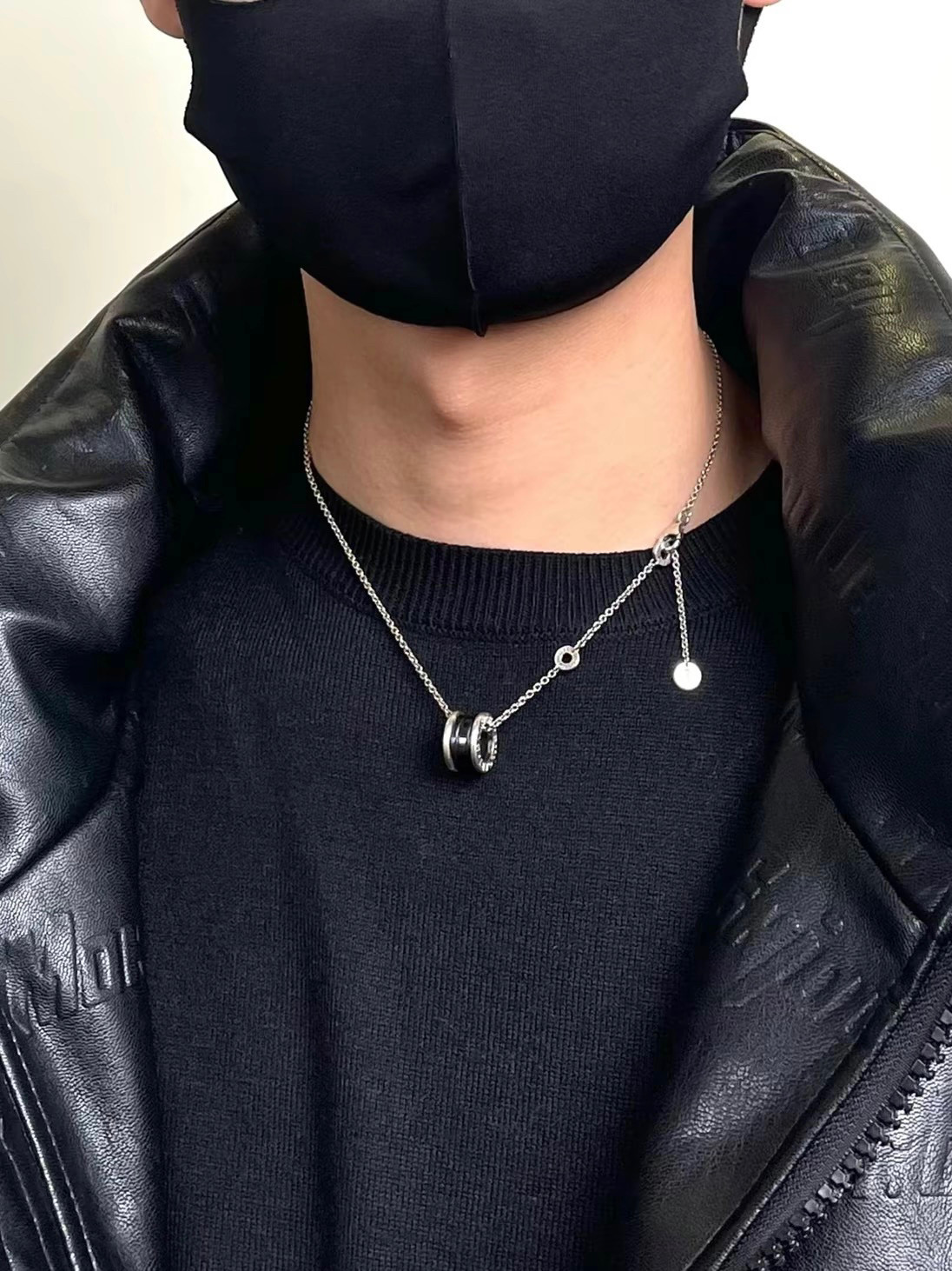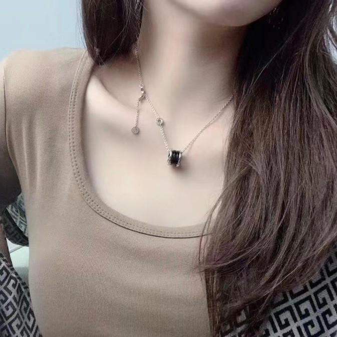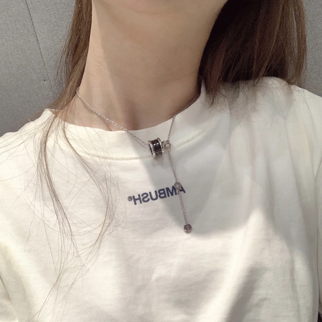 Sterling Silver Small Waist New Style Rivet Charity Black Ceramic Necklace Men's S925 Silver Jewelry Couple Valentine's Day Gift
