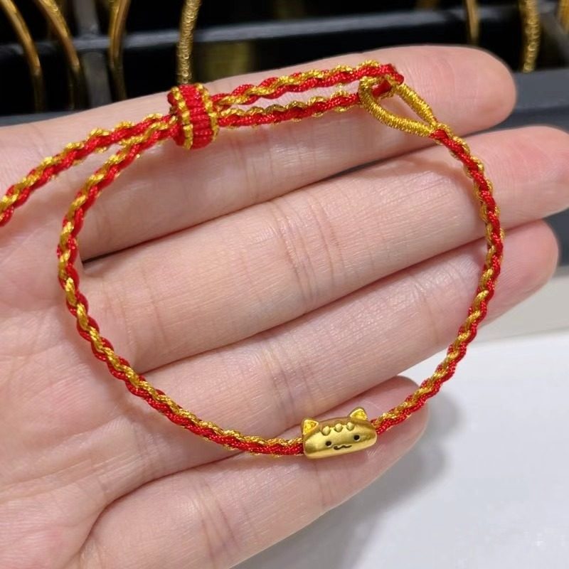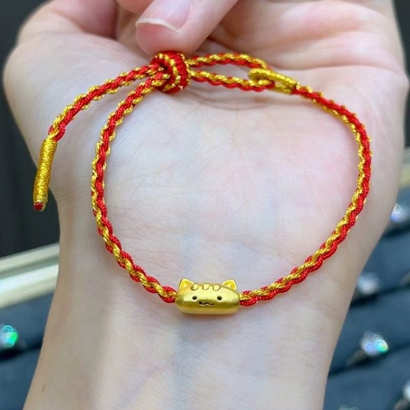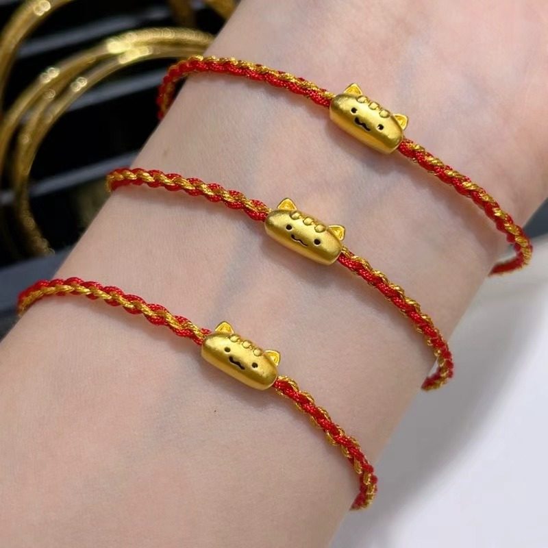 999 Pure Gold Popular Baguette Cat Versatile Bracelet C8255