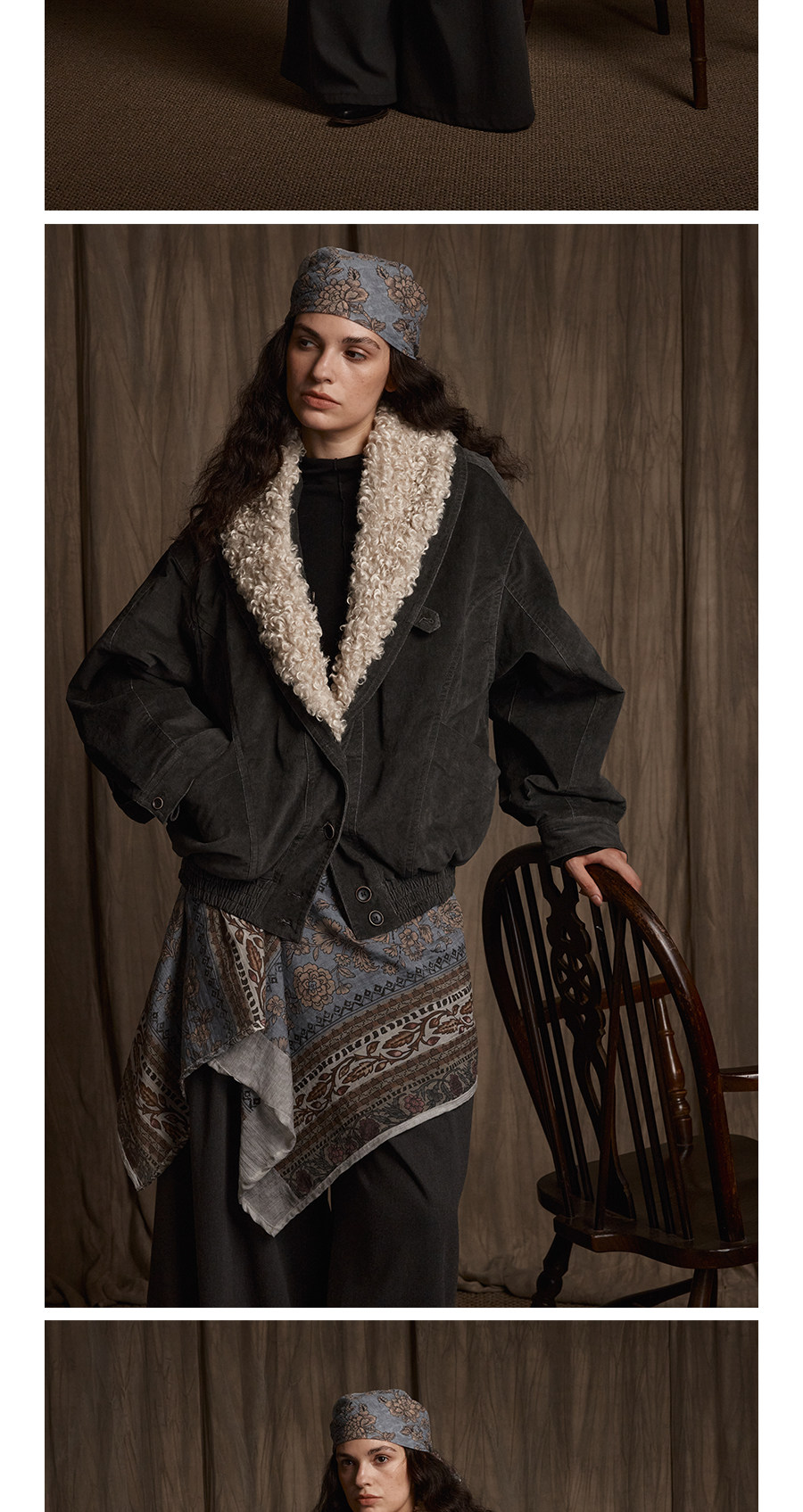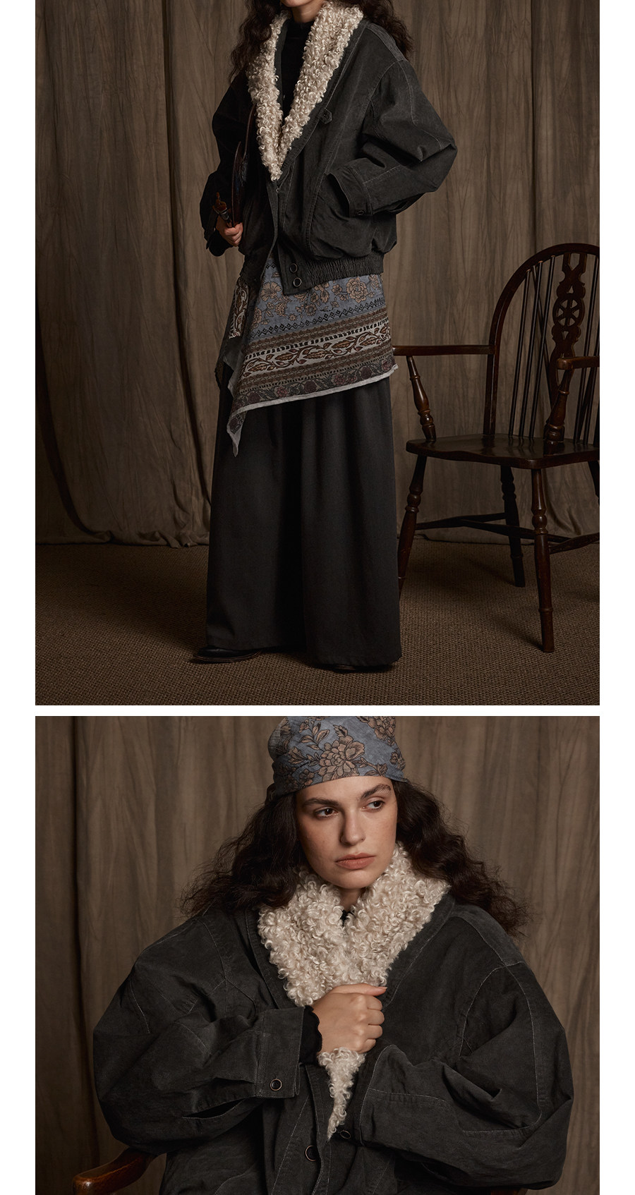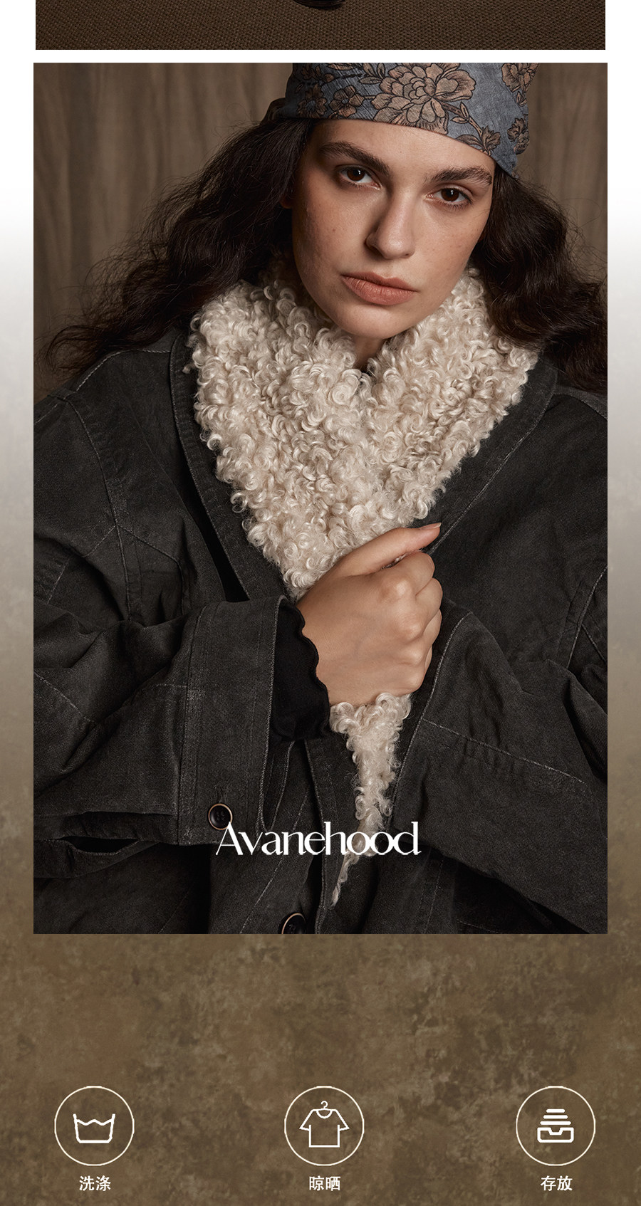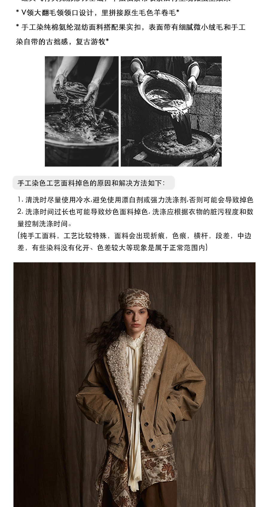 Avanehood "Snow Cedar" Hand-Dyed Lambswool Patchwork Suede Large Lapel Short Cotton Coat for Women