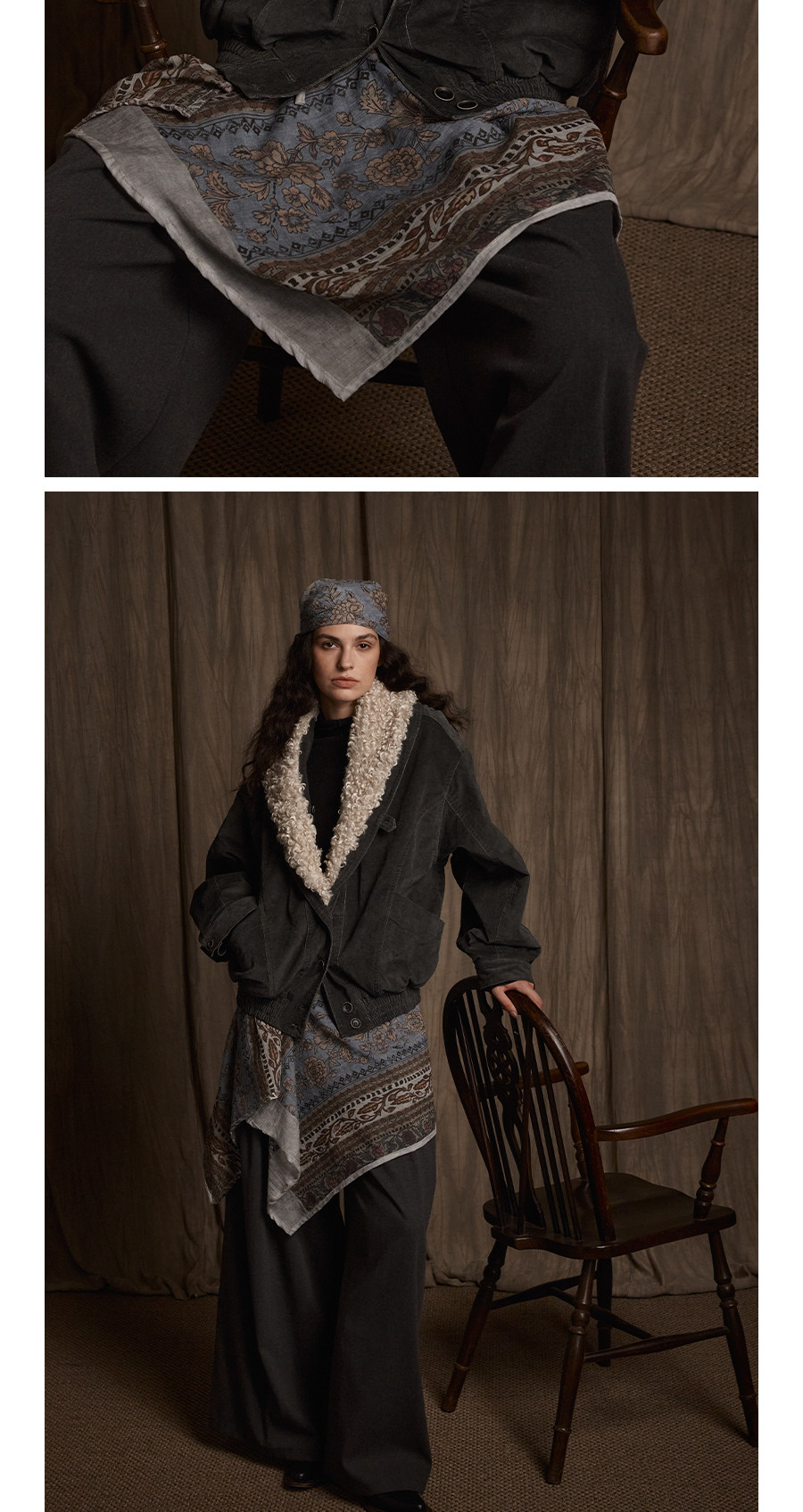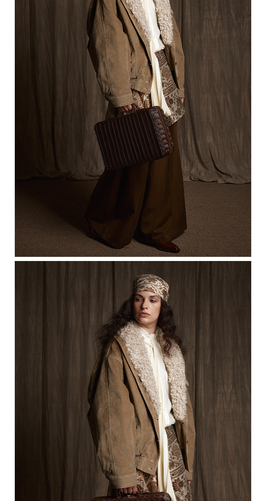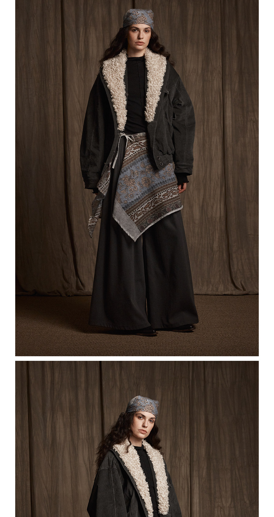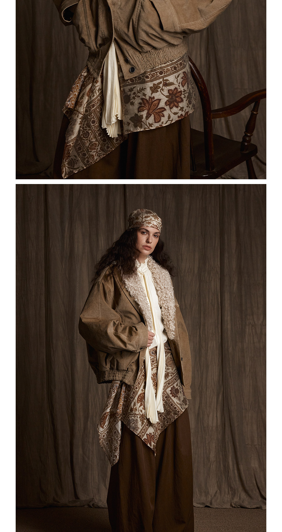 Avanehood "Snow Cedar" Hand-Dyed Lambswool Patchwork Suede Large Lapel Short Cotton Coat for Women