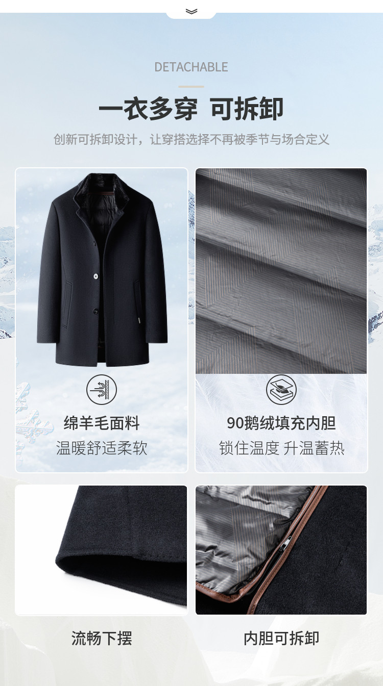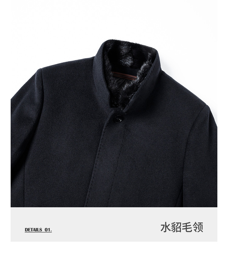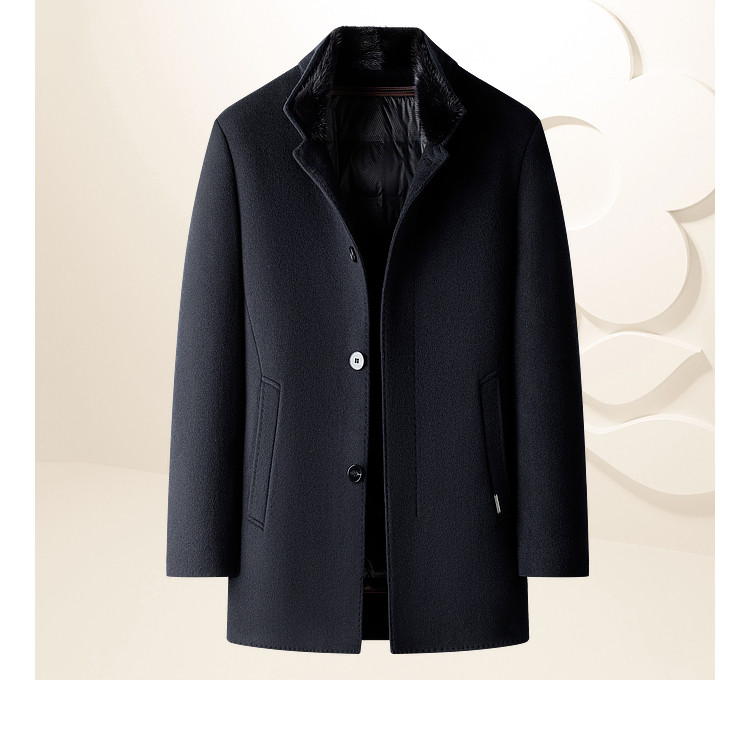 [Mink Fur/Goose down Lining] Montagut Men's Woolen Coat with Stand Collar, Winter down Jacket, Warm C