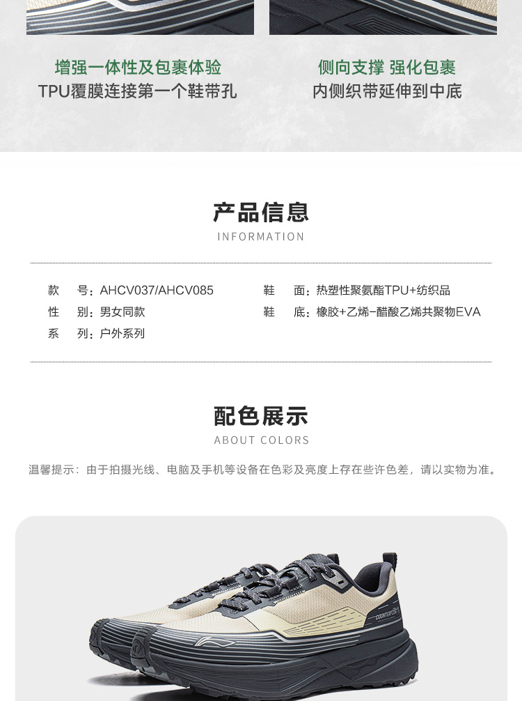 Li-Ning Outdoor Cf Hiking Shoes Autumn and Winter Shock-Absorbing Lightweight Non-Slip Trekking and Mountaineering Sports Shoes for Men