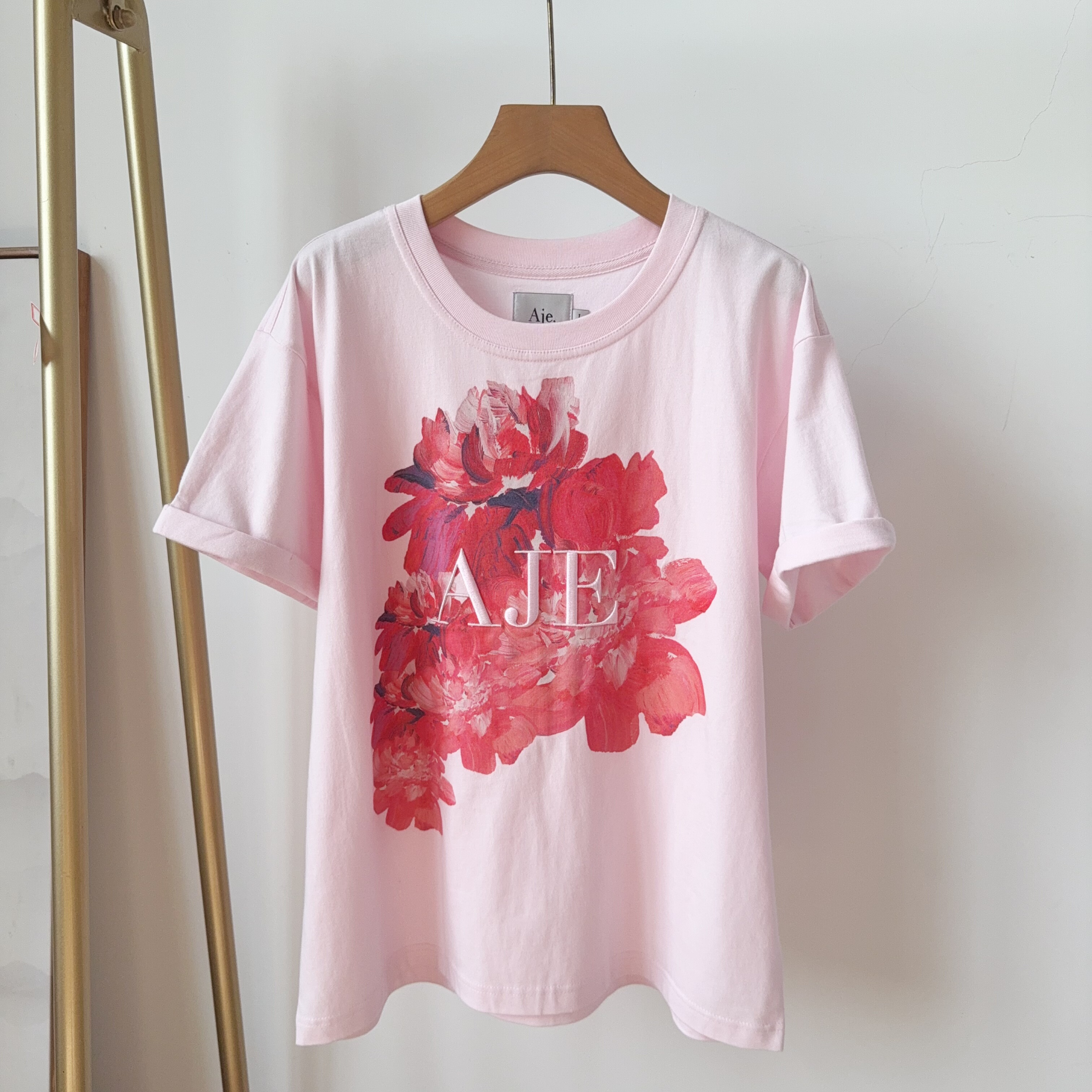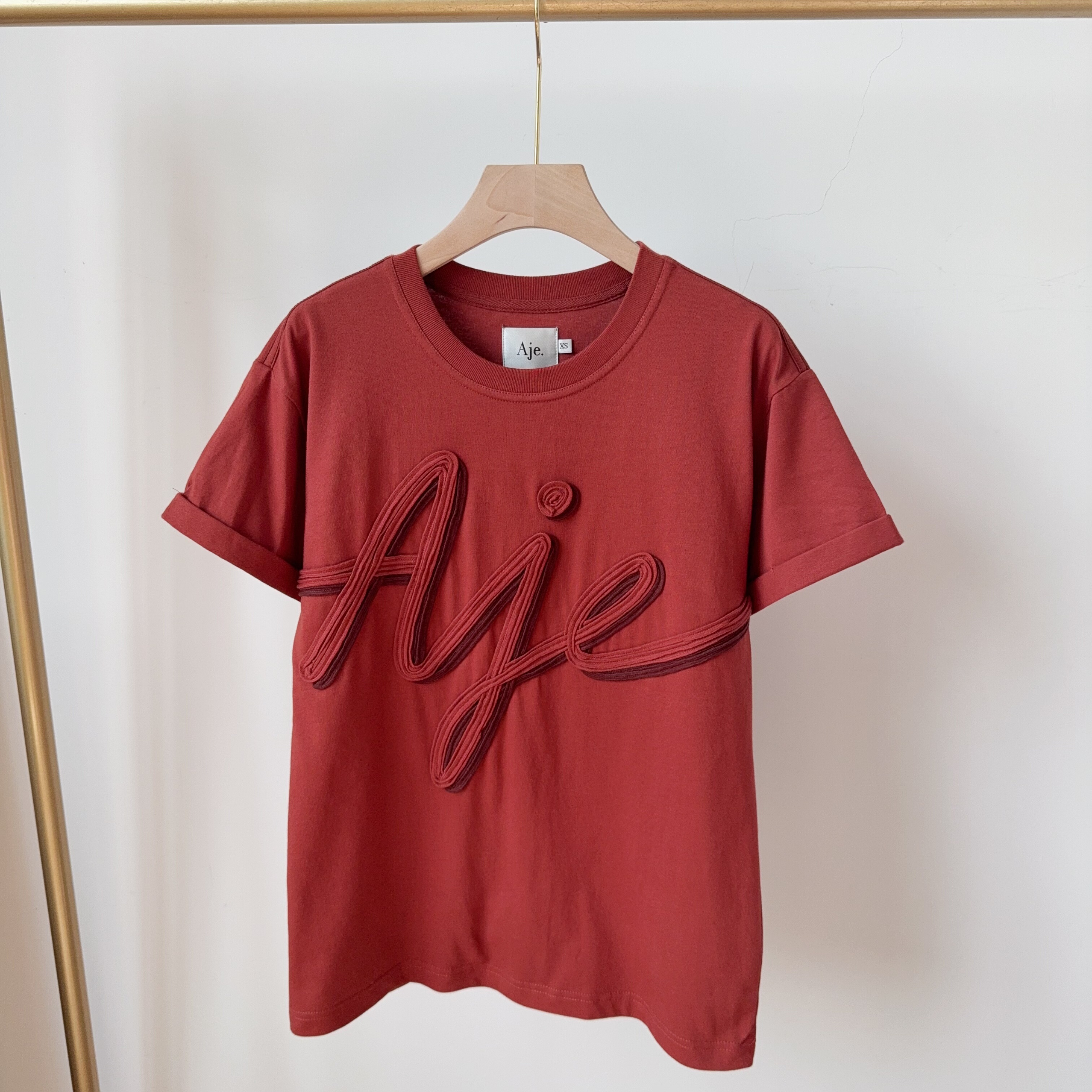 In Stock Original D Australia@Je Niche Imported All-Cotton Embroidered Crew Neck Loose Fit Short-Sleeve T-Shirt