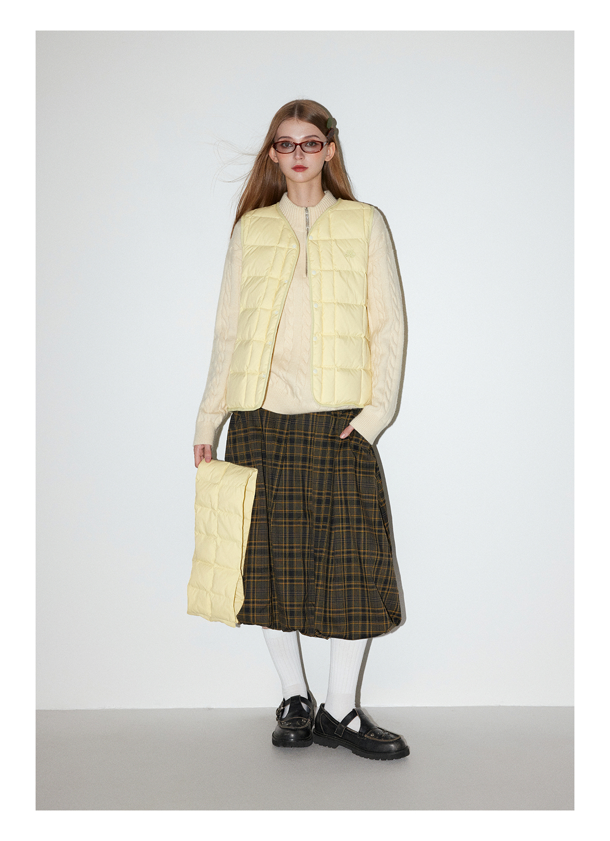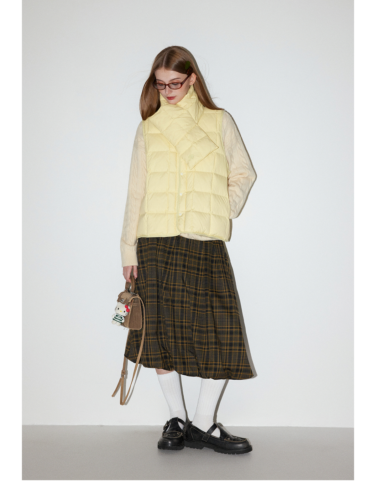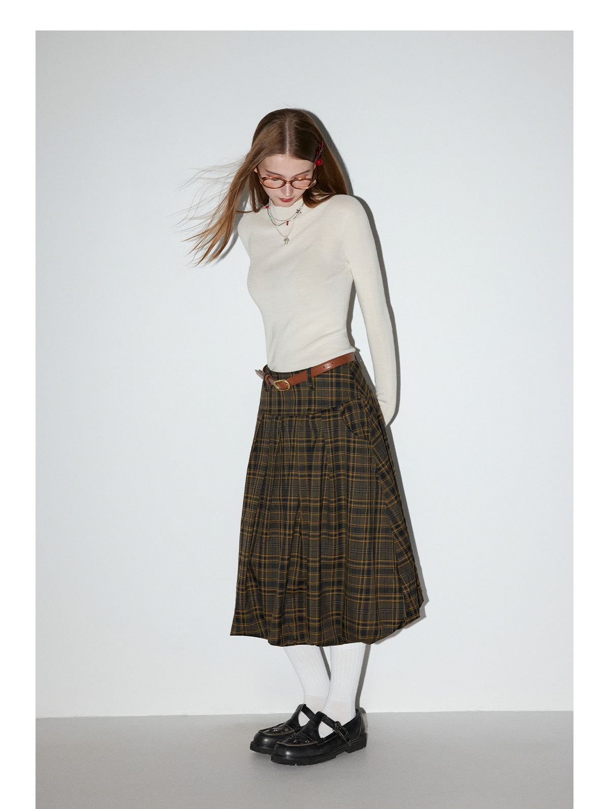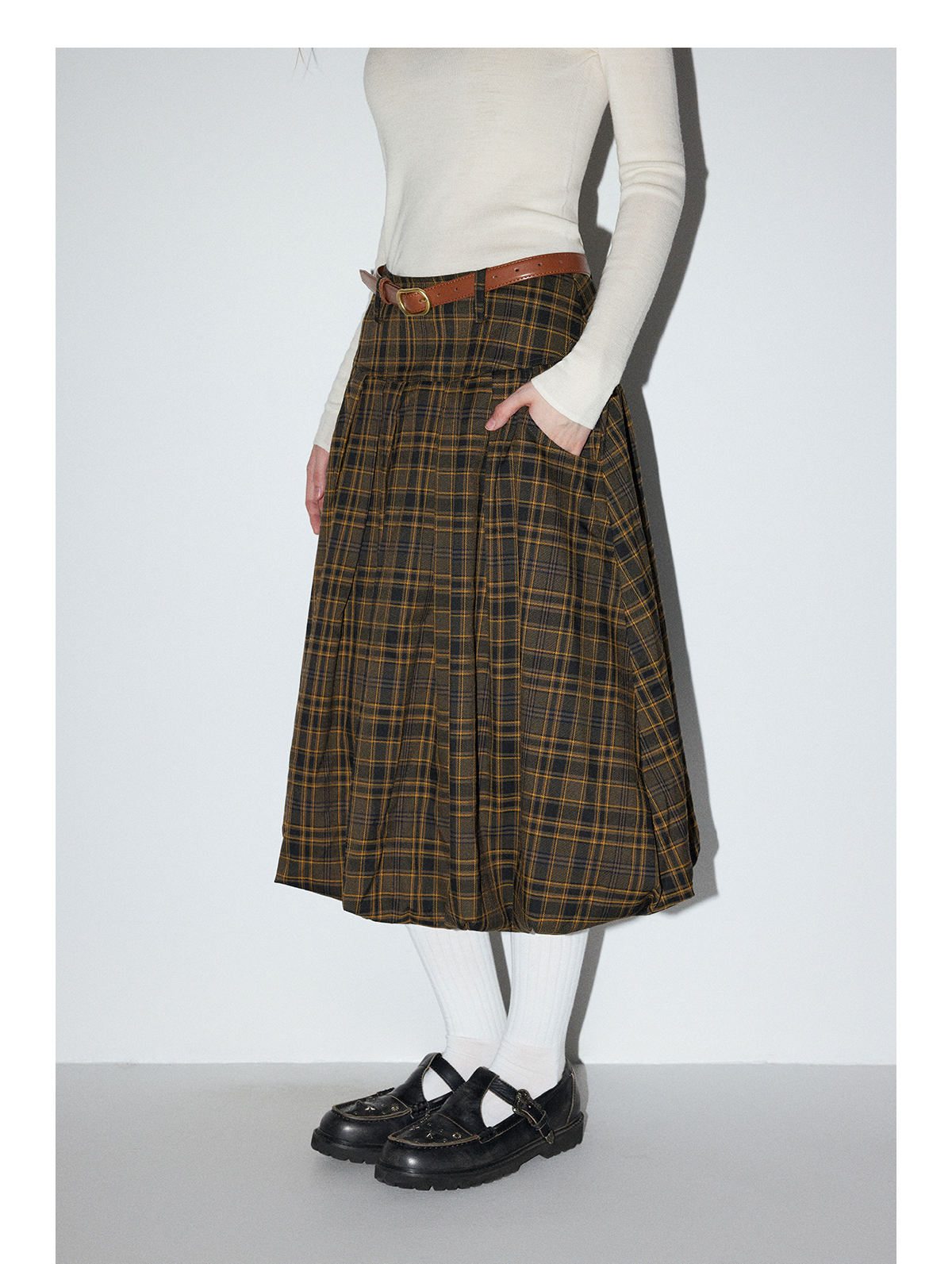 Moodberry American Retro Brown Plaid Skirt for Women in Autumn and Winter High-Waisted Mid-Length A-Line Flower Bud Skirt