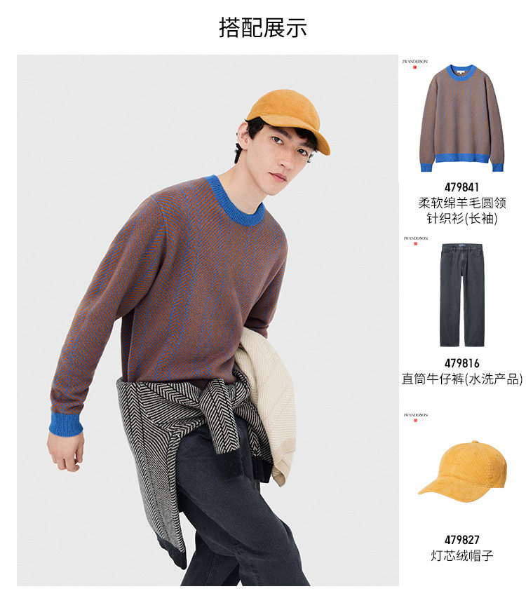 Uniqlo Collaboration Men's and Women's Soft Merino Wool Crew Neck Knit Sweater Long-Sleeve Sweater 479841
