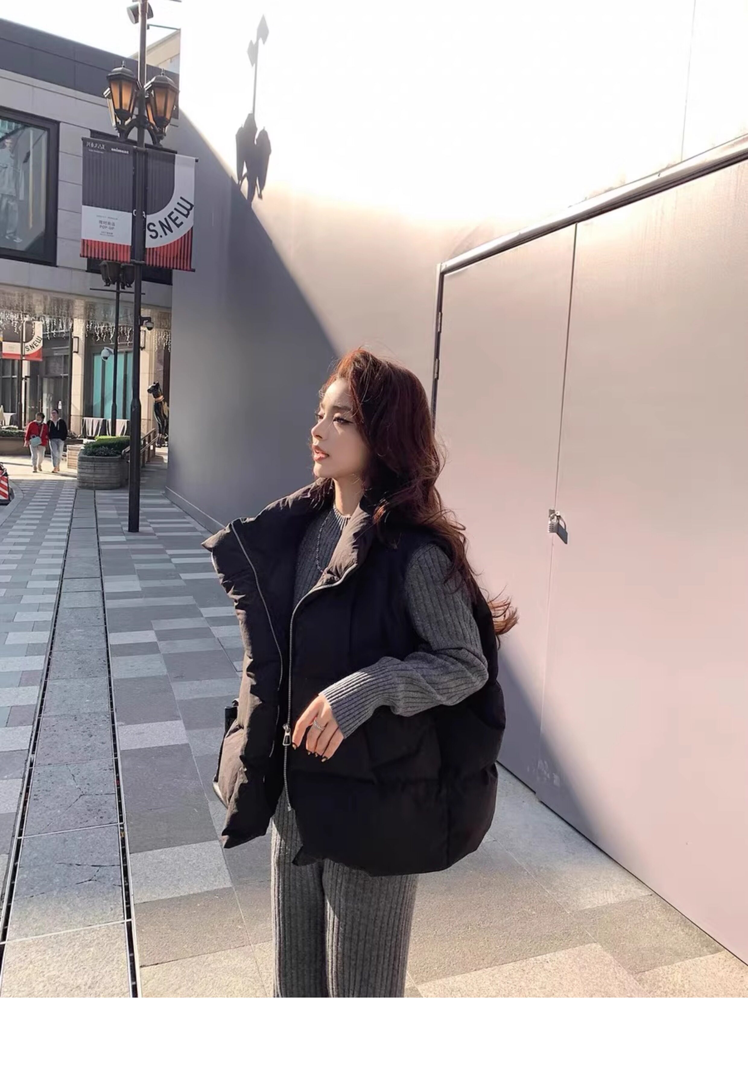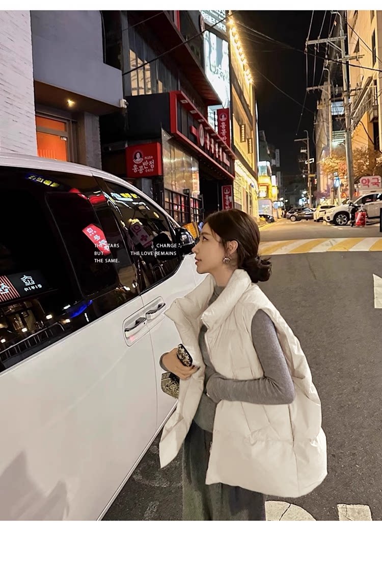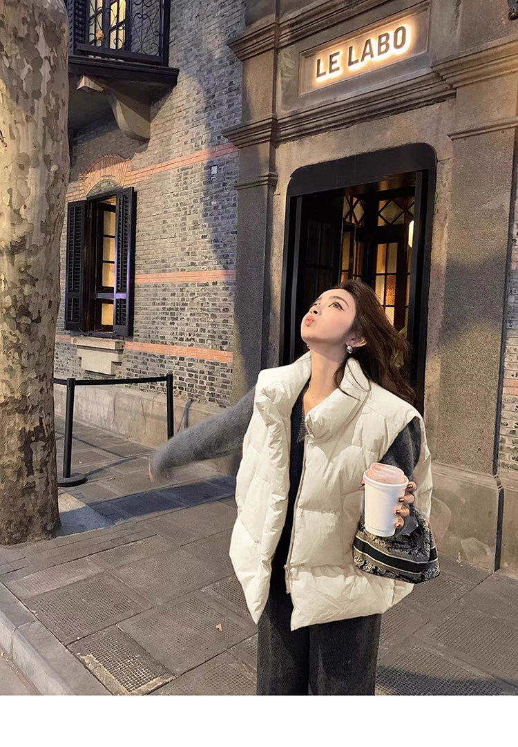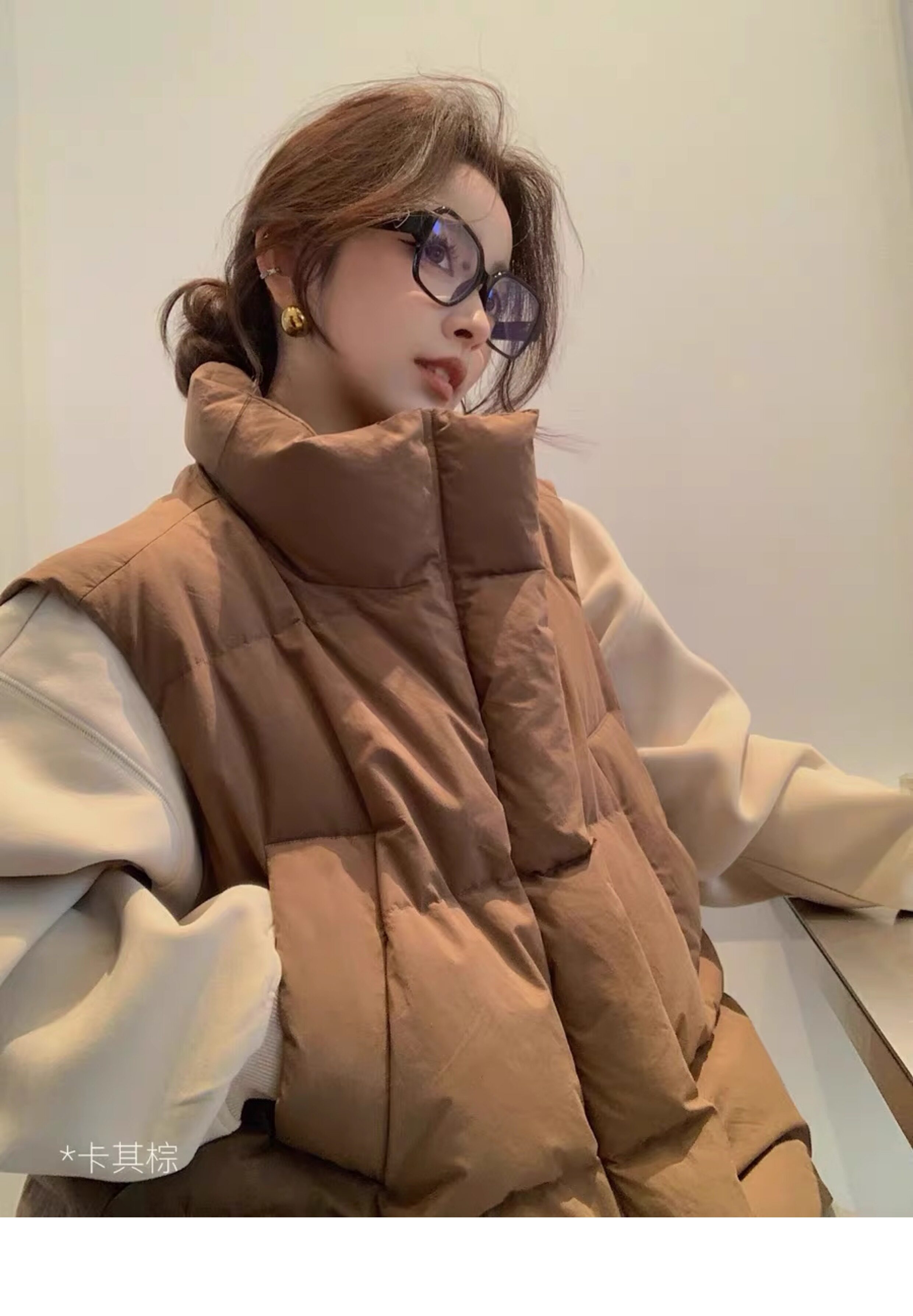 Korean-Style Fashionable down Cotton Vest for Women, Outerwear, 2025 New Autumn and Winter Stand-Up Collar Vest, Warm Cotton Jacket
