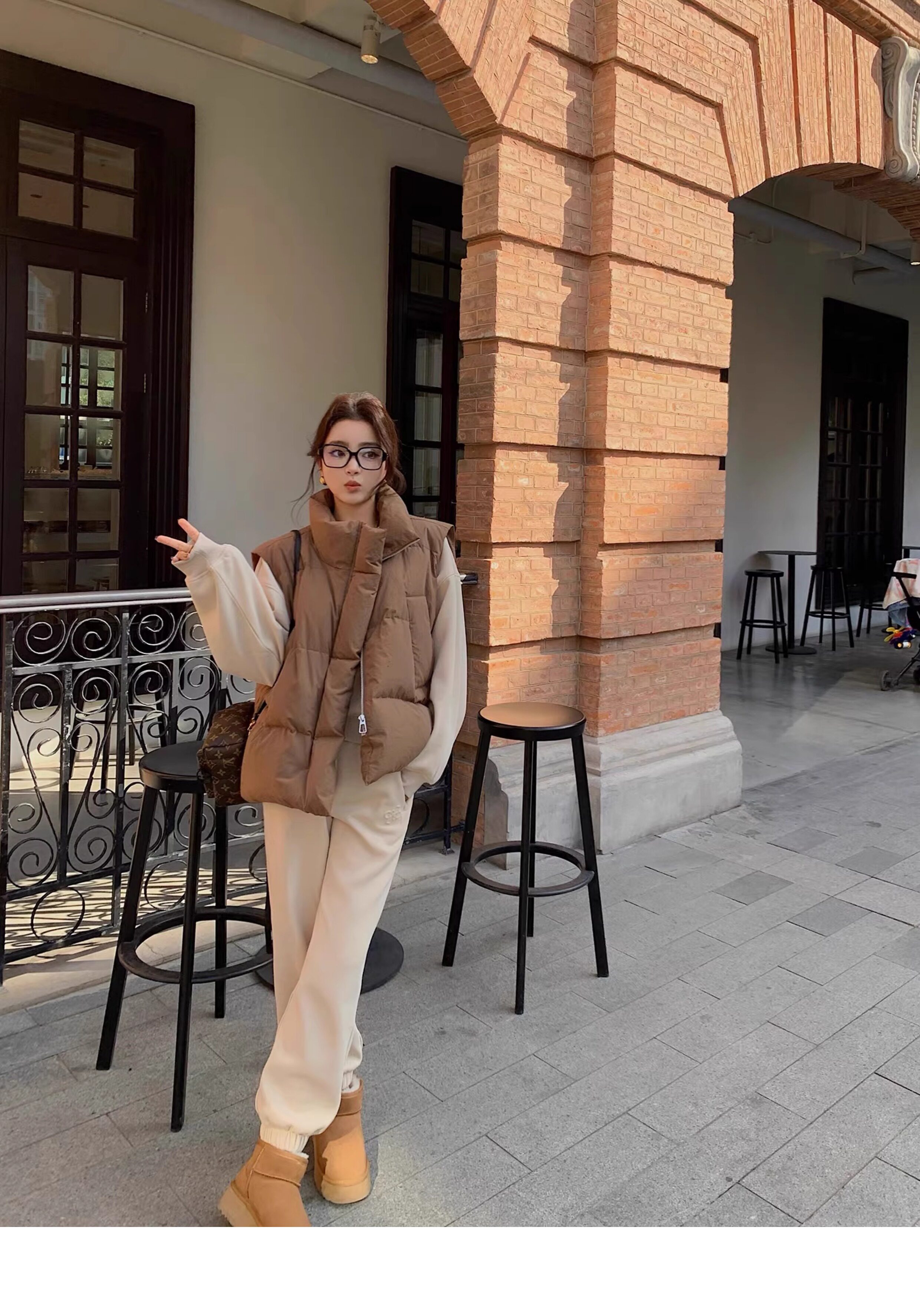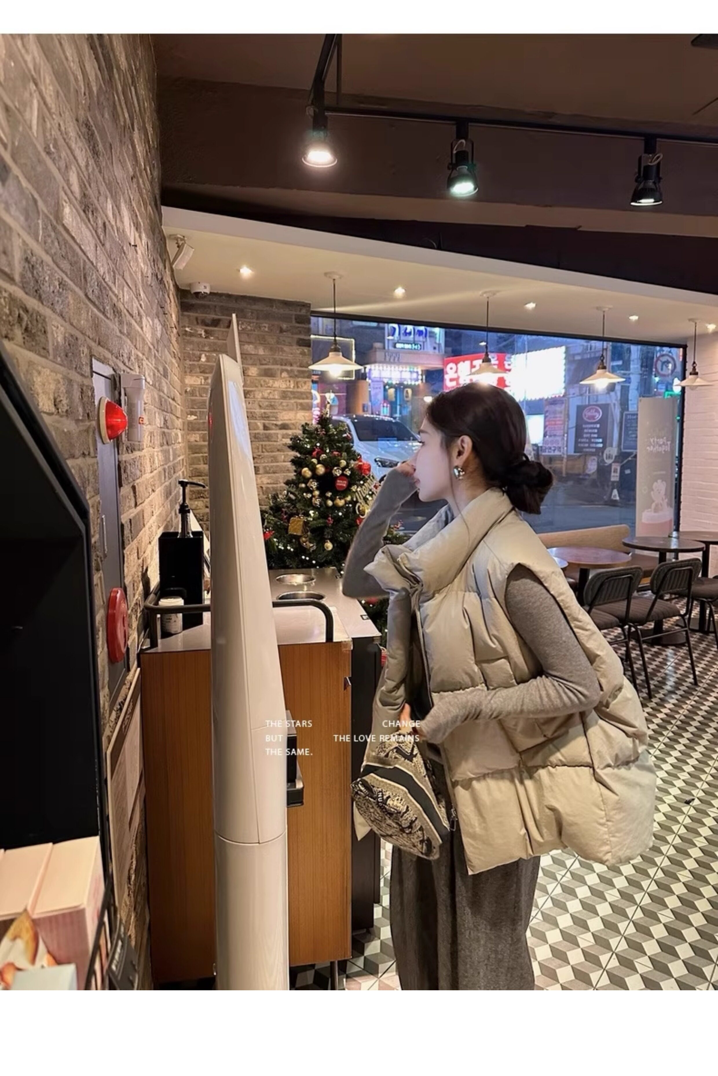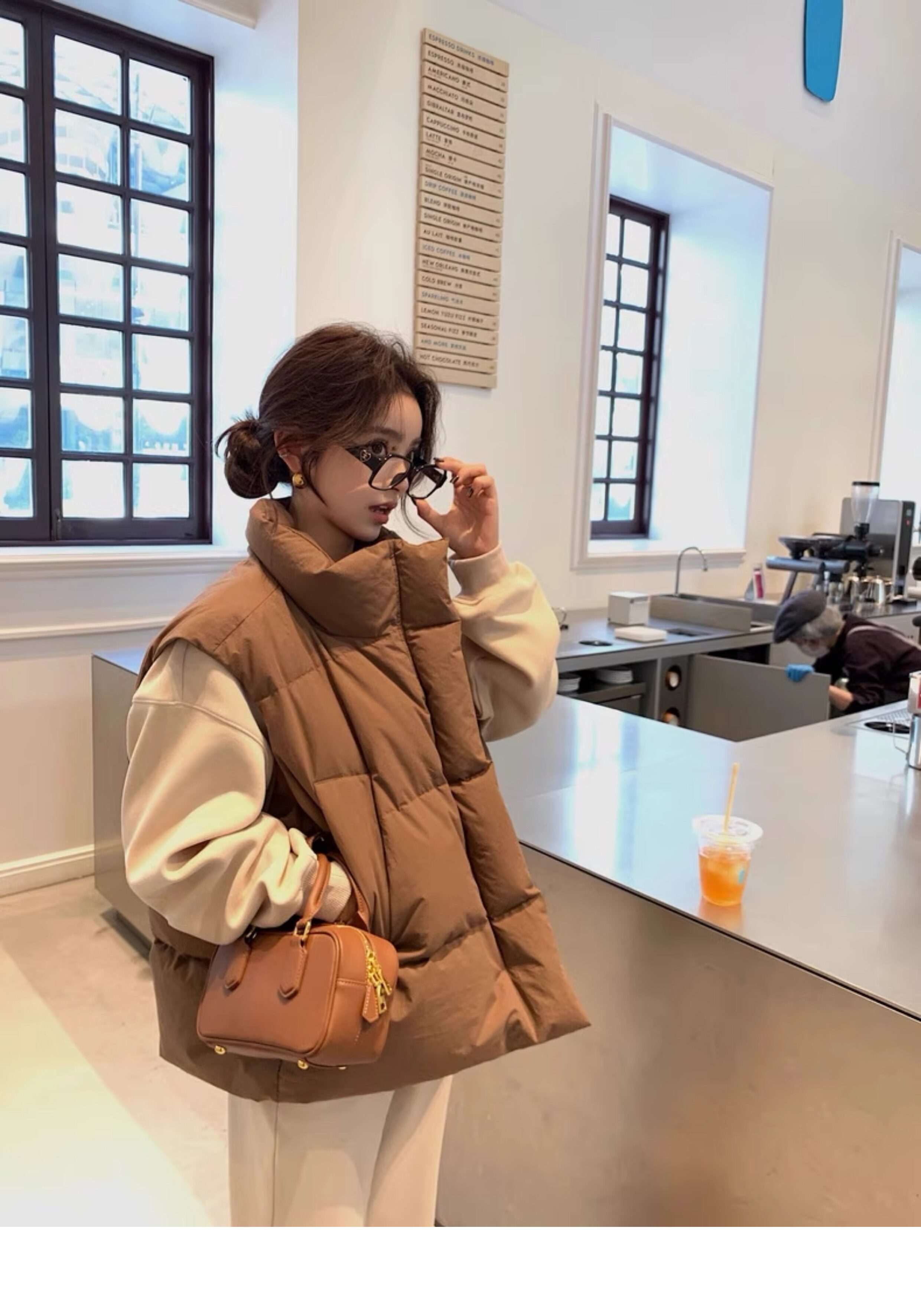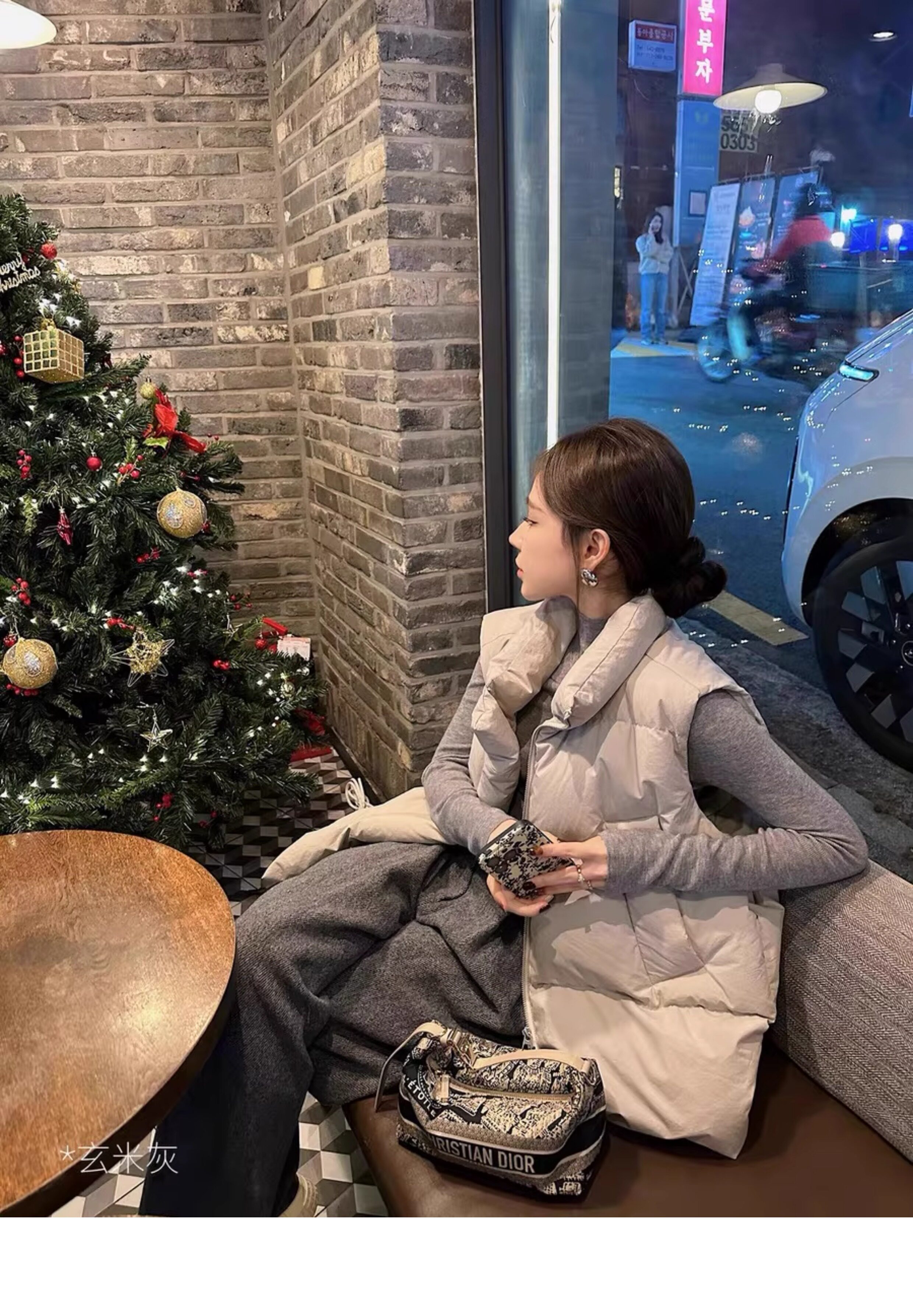 Korean-Style Fashionable down Cotton Vest for Women, Outerwear, 2025 New Autumn and Winter Stand-Up Collar Vest, Warm Cotton Jacket