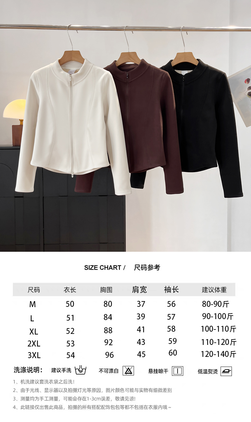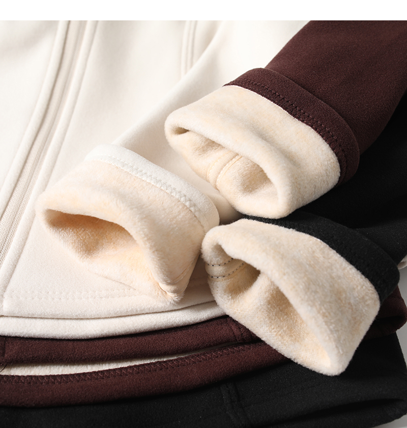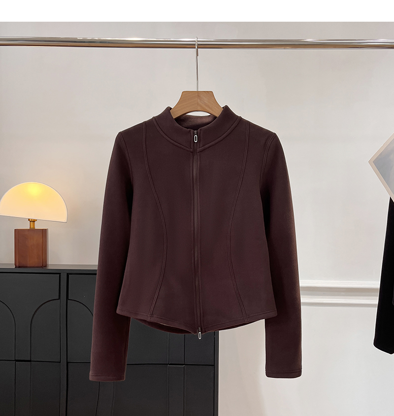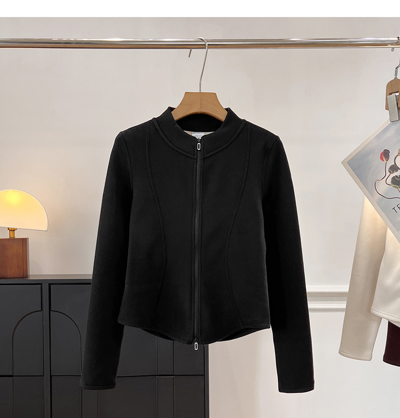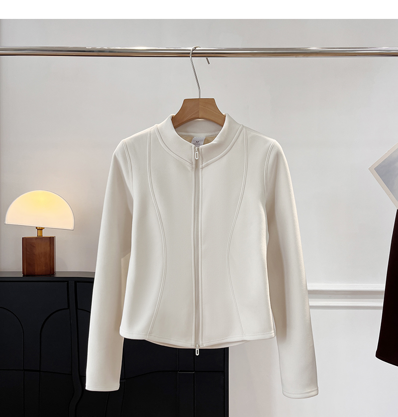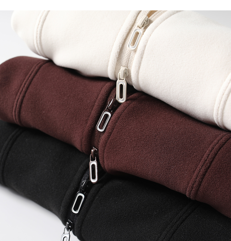 Lu~ Stand Collar, Slim Waist, Double-Sided Fleece, Autumn and Winter Slim-Fit, Slimming, Outdoor Windproof, Lightweight, Warm Cardigan Jacket