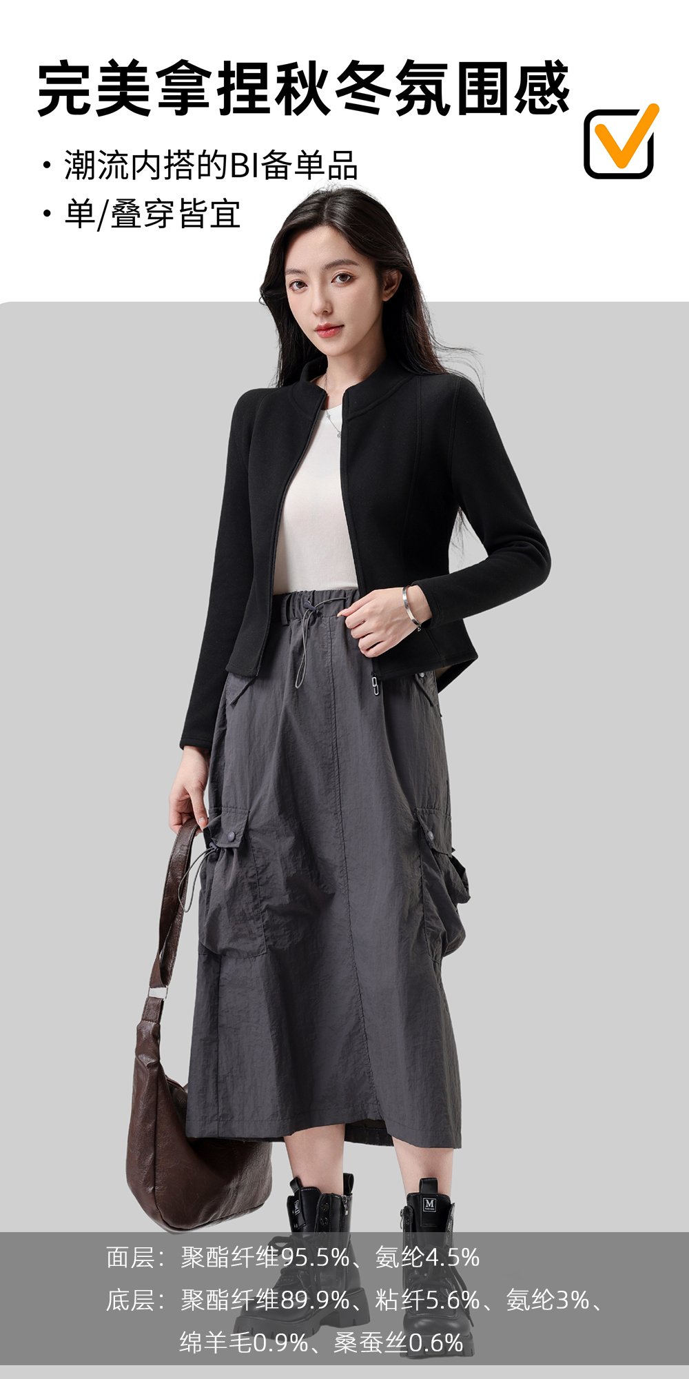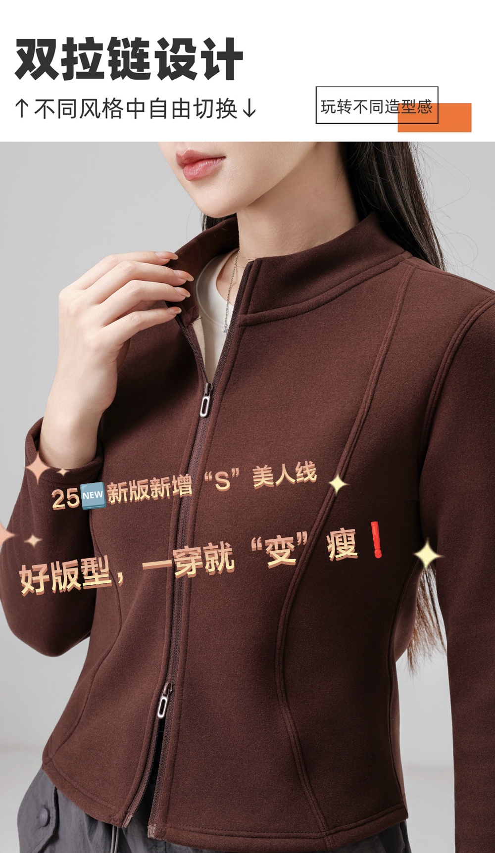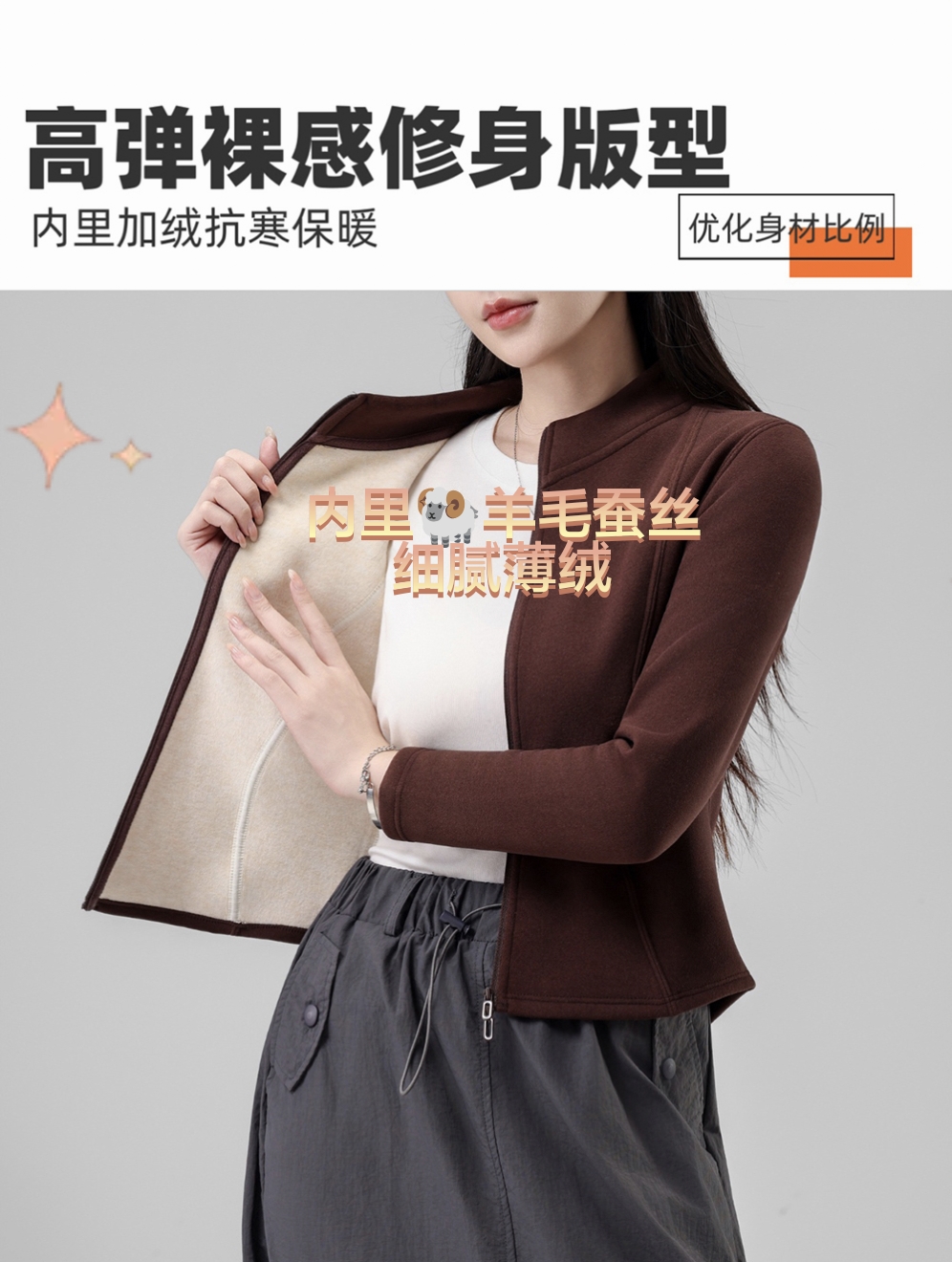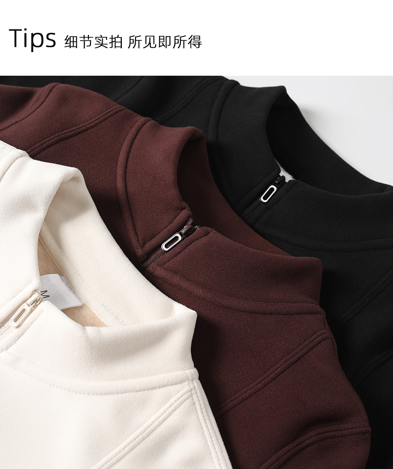 Lu~ Stand Collar, Slim Waist, Double-Sided Fleece, Autumn and Winter Slim-Fit, Slimming, Outdoor Windproof, Lightweight, Warm Cardigan Jacket