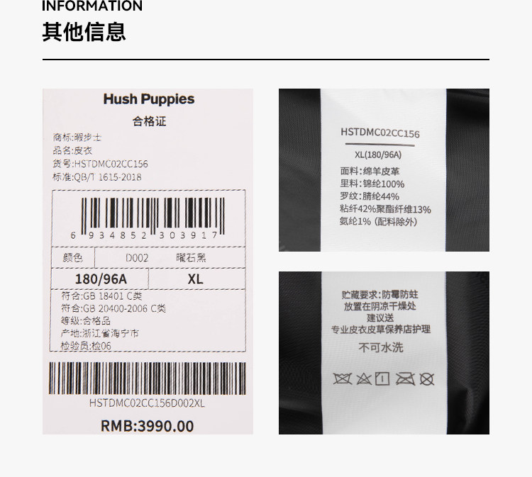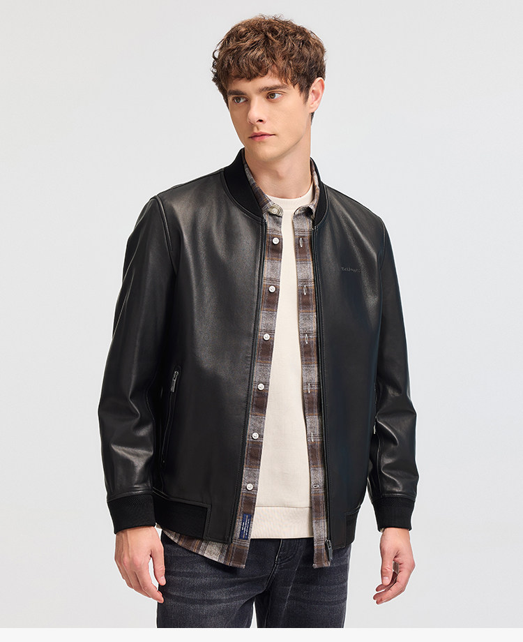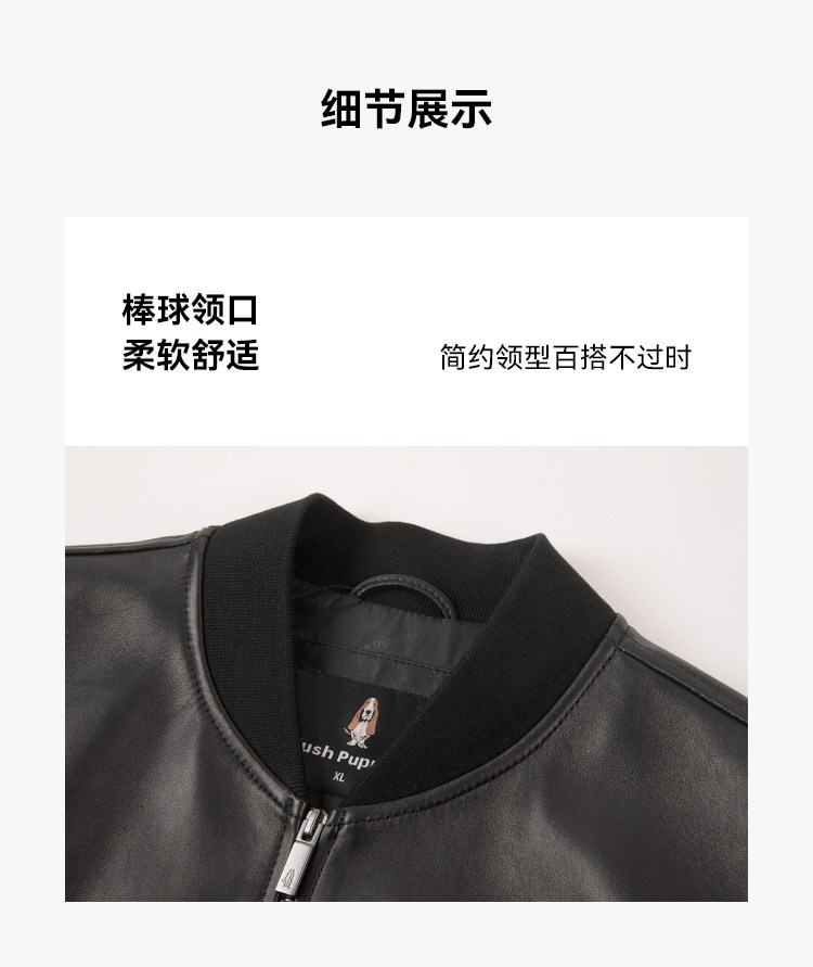 [Same Style as in the Mall] Hush Puppies Winter Structured and Stylish Baseball Collar Sheep Leather Jacket for Men