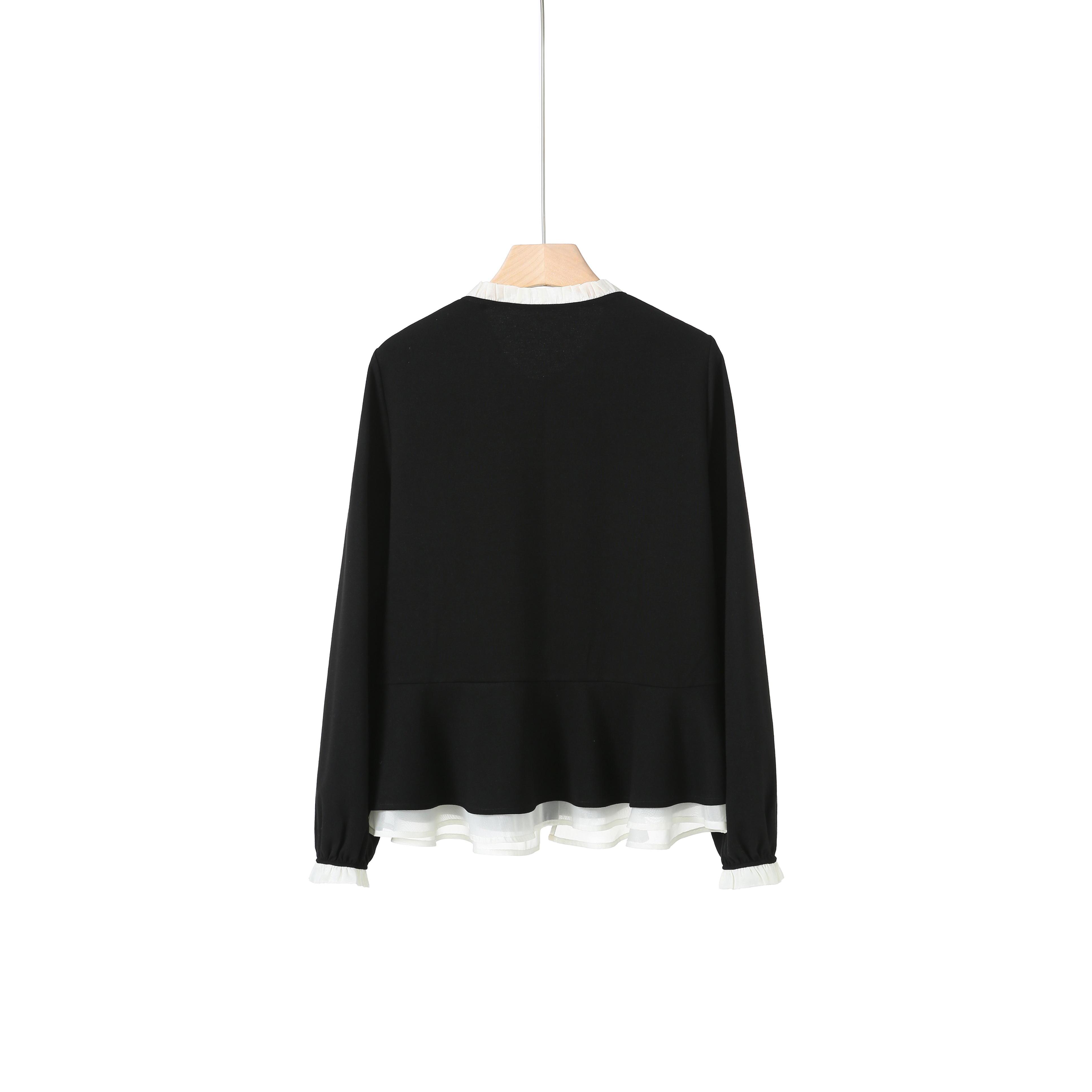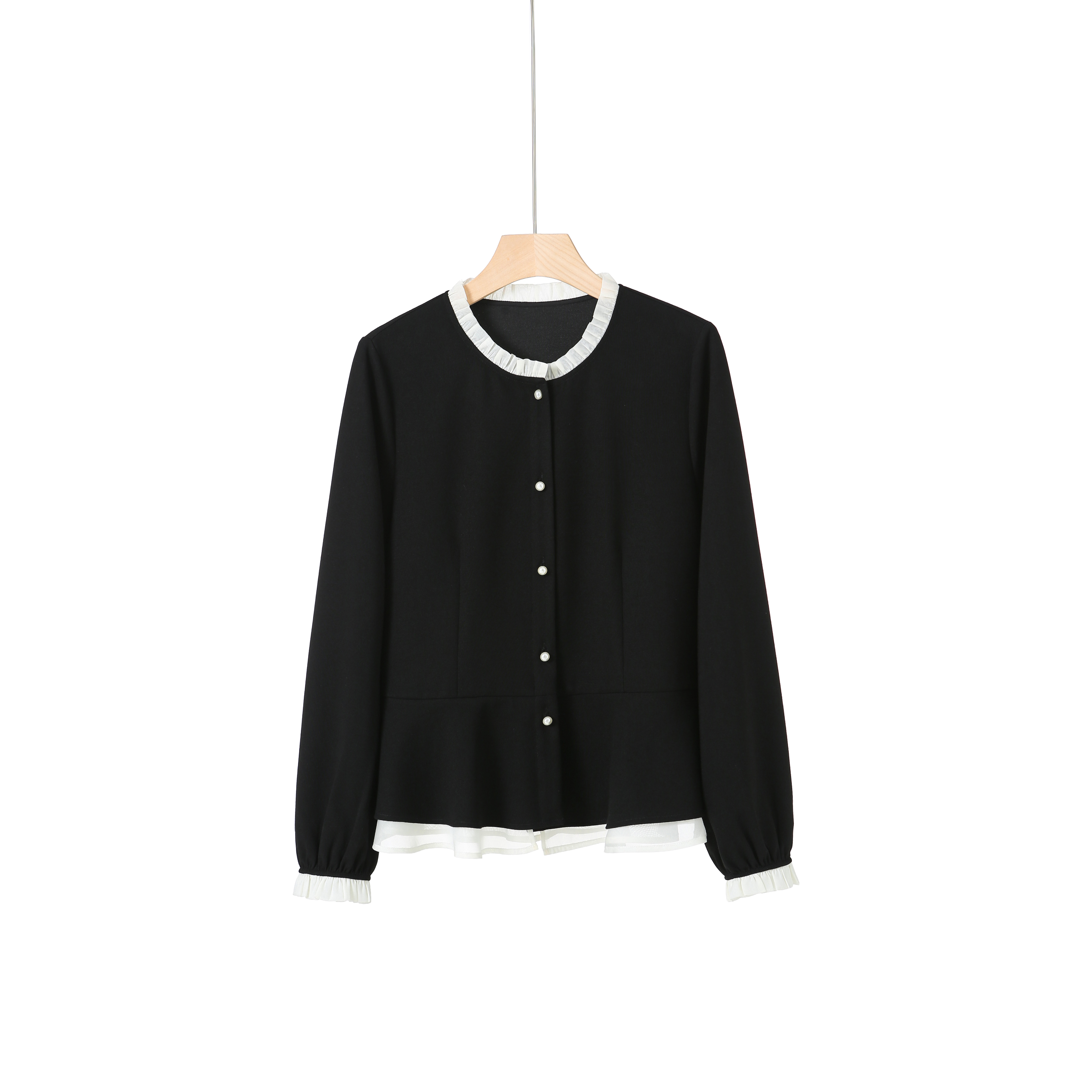 Plum Wood Patchwork Ruffled Collar Shirt for Women, 2025 Autumn New Long-Sleeve Loose Casual Versatile Age-Reducing Top