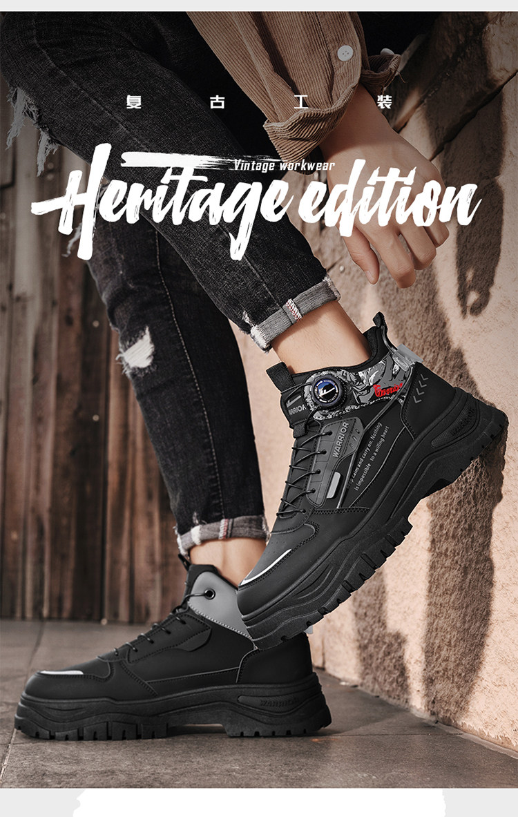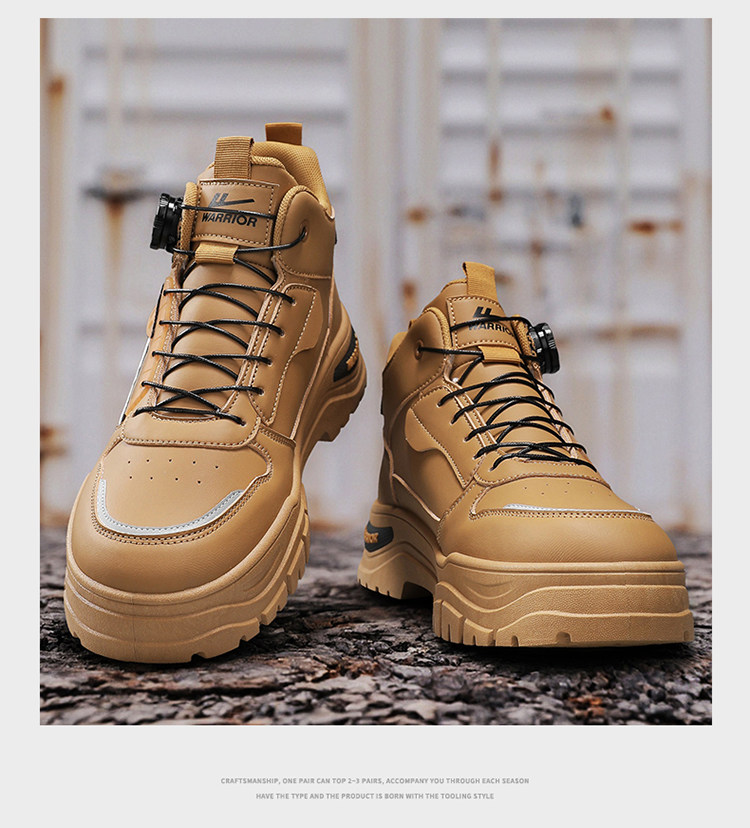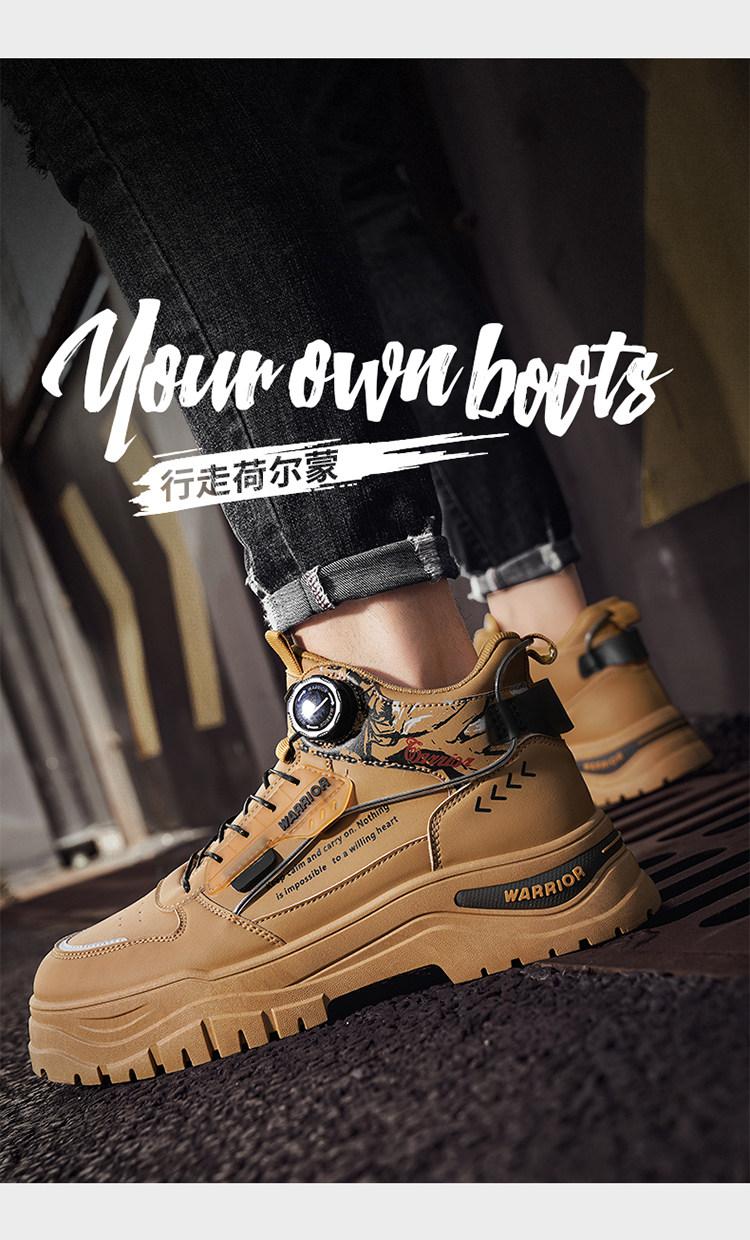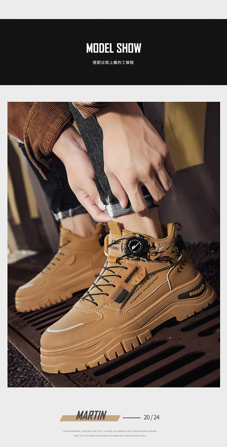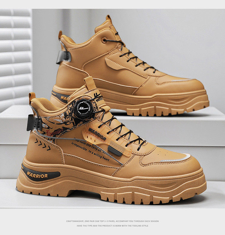 Pull-Back High-Top Men's Shoes 2025 Autumn and Winter Martin Boots Men's Fleece-Lined Casual Workwear Trendy Shoes with Rotating Buckle No Need to Tie Shoelaces