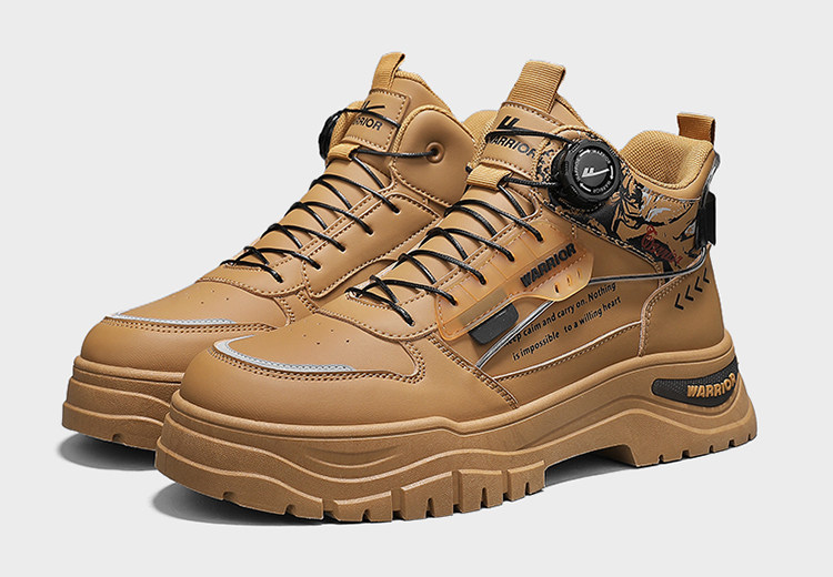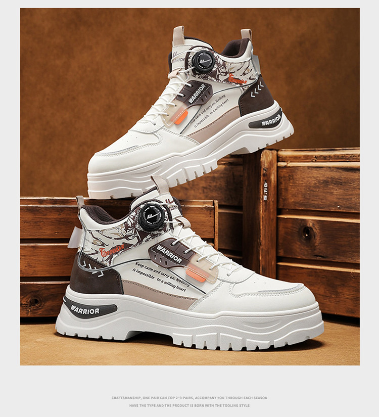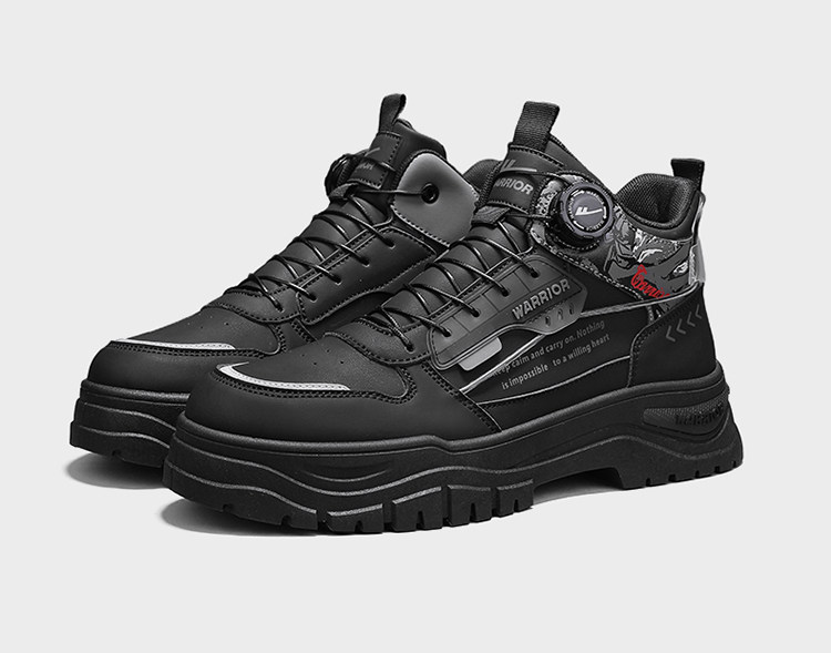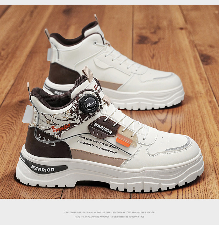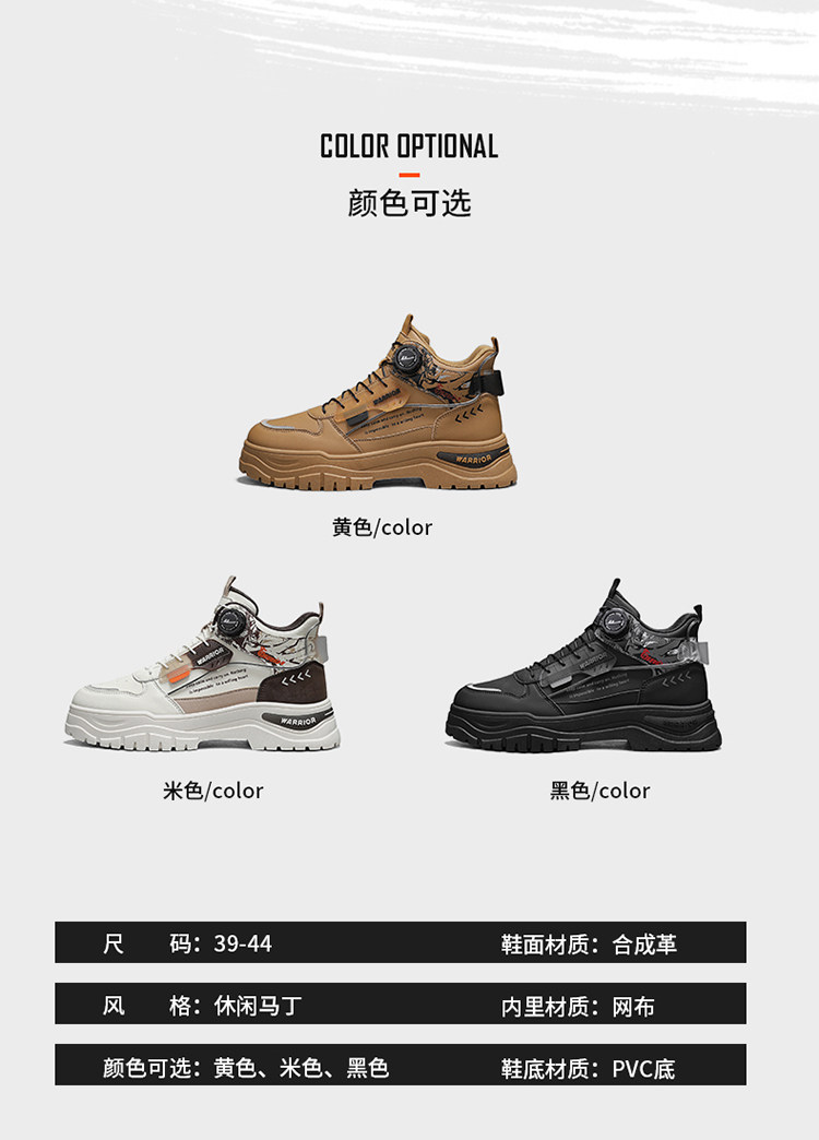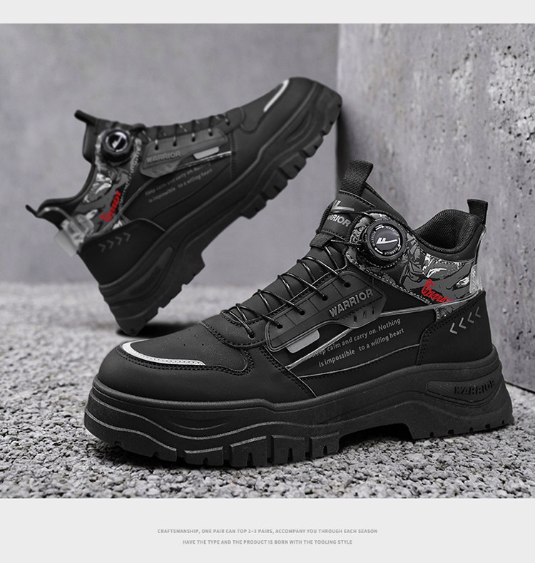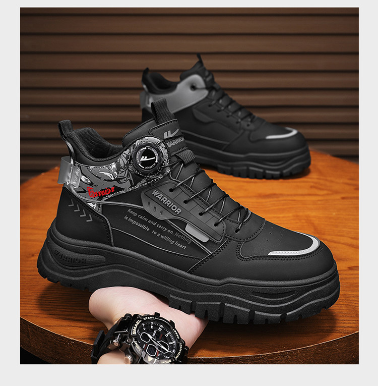 Pull-Back High-Top Men's Shoes 2025 Autumn and Winter Martin Boots Men's Fleece-Lined Casual Workwear Trendy Shoes with Rotating Buckle No Need to Tie Shoelaces