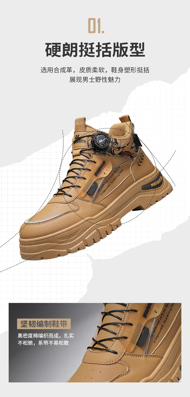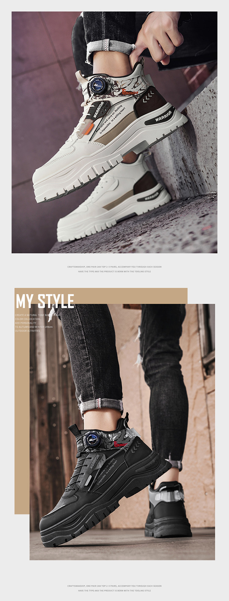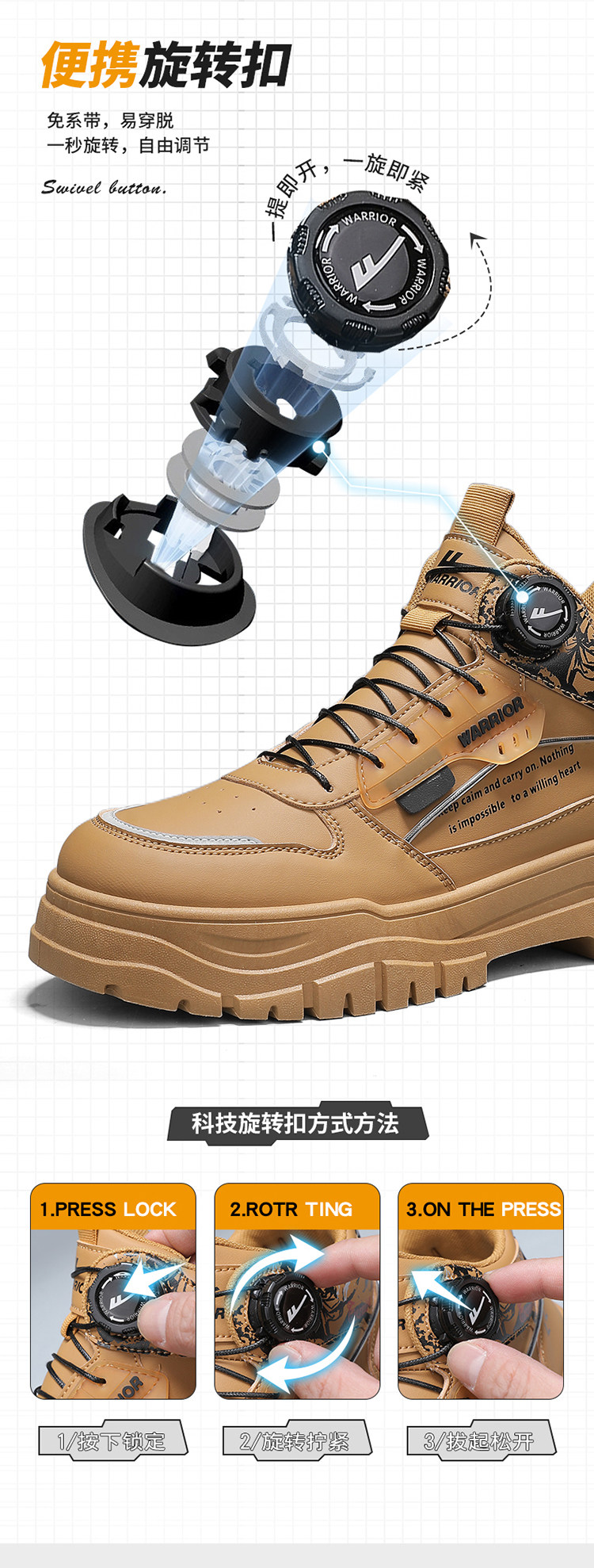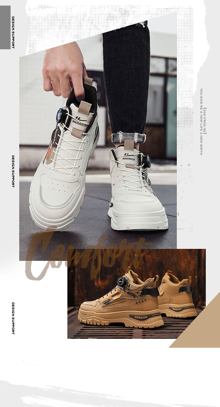 Pull-Back High-Top Men's Shoes 2025 Autumn and Winter Martin Boots Men's Fleece-Lined Casual Workwear Trendy Shoes with Rotating Buckle No Need to Tie Shoelaces