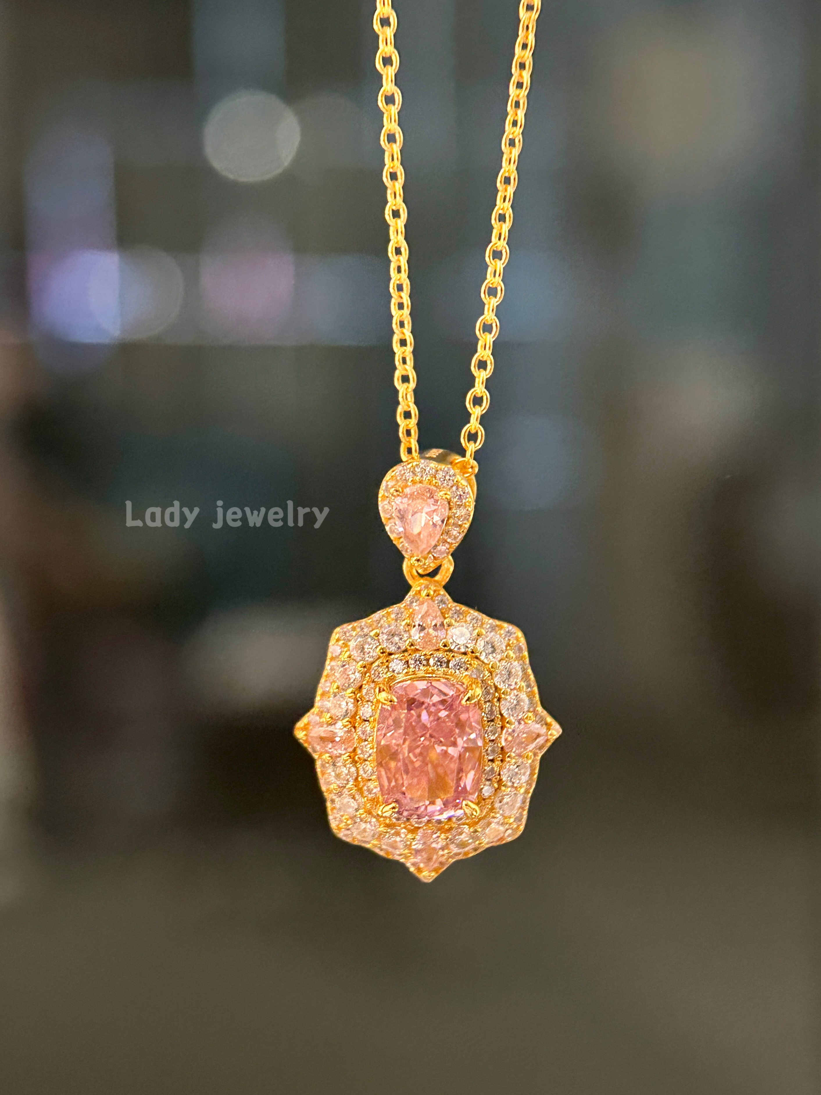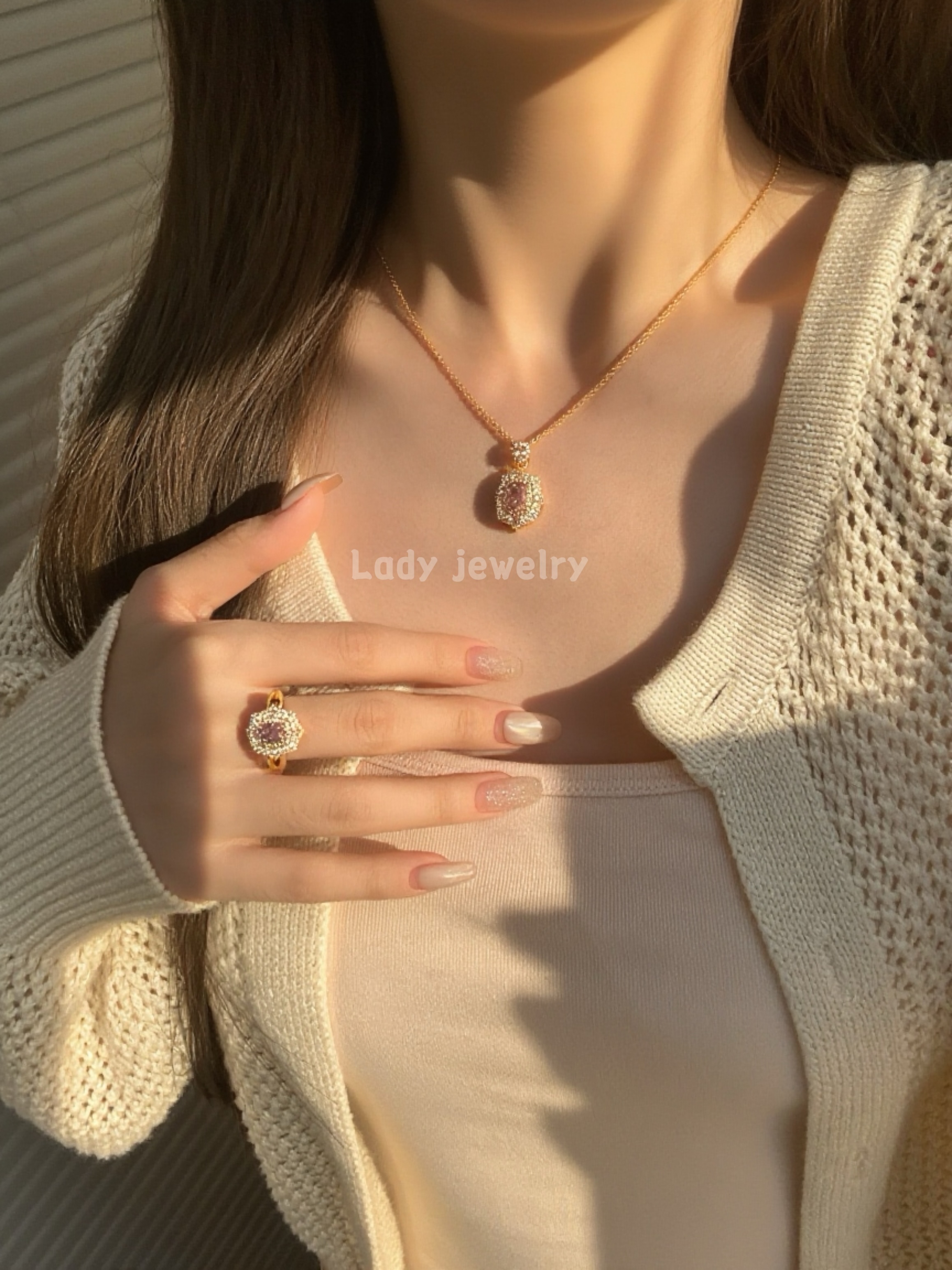 Lady's "Light Luxury Floral Style" Crystal Diamond | S925 Silver Plated with Real Gold | Pink Series Elegant Earrings Three-Piece Set