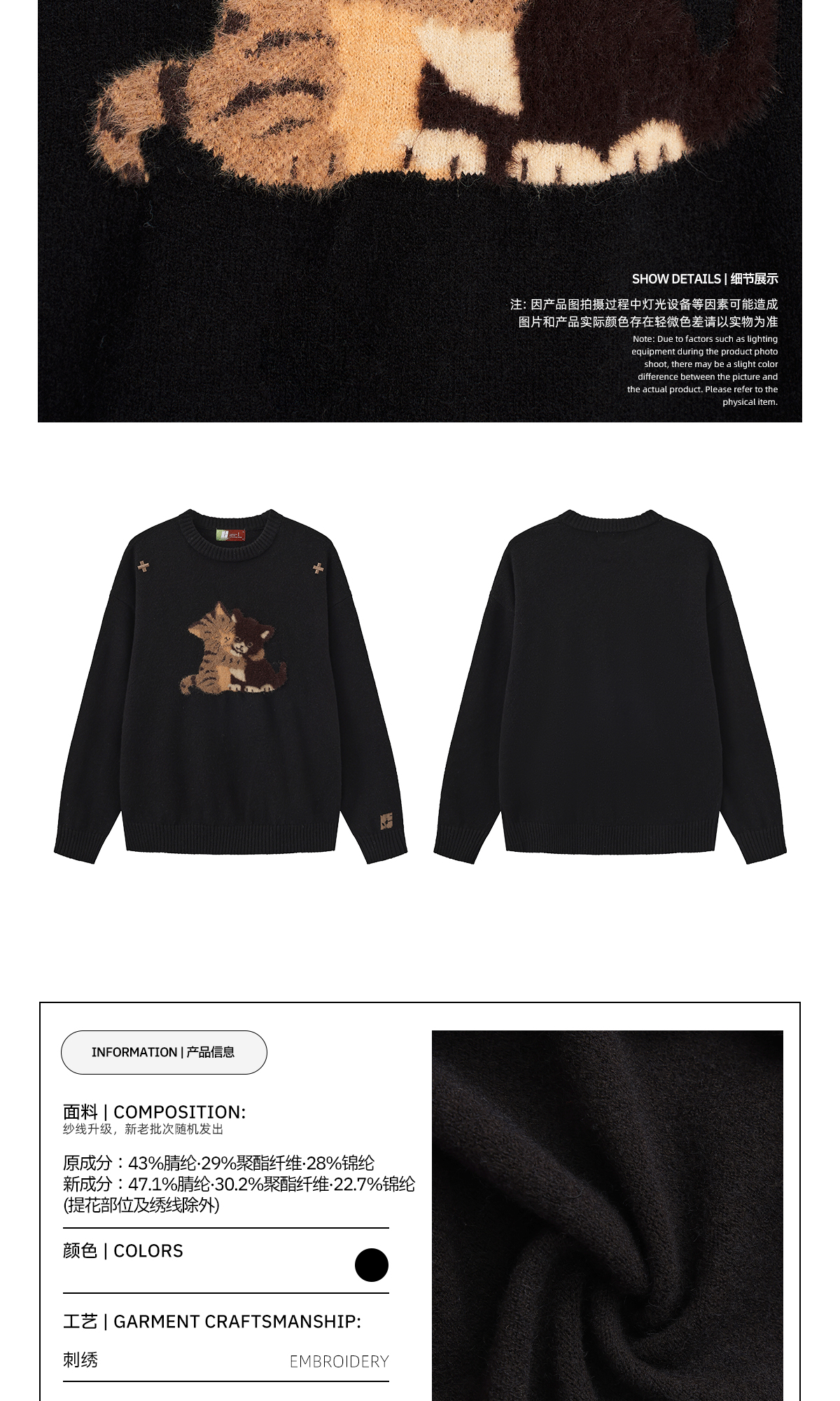 Nstnew Start Germination Project Embrace Cat Plush Jacquard Lazy Style Loose Versatile Sweater Knitted Top