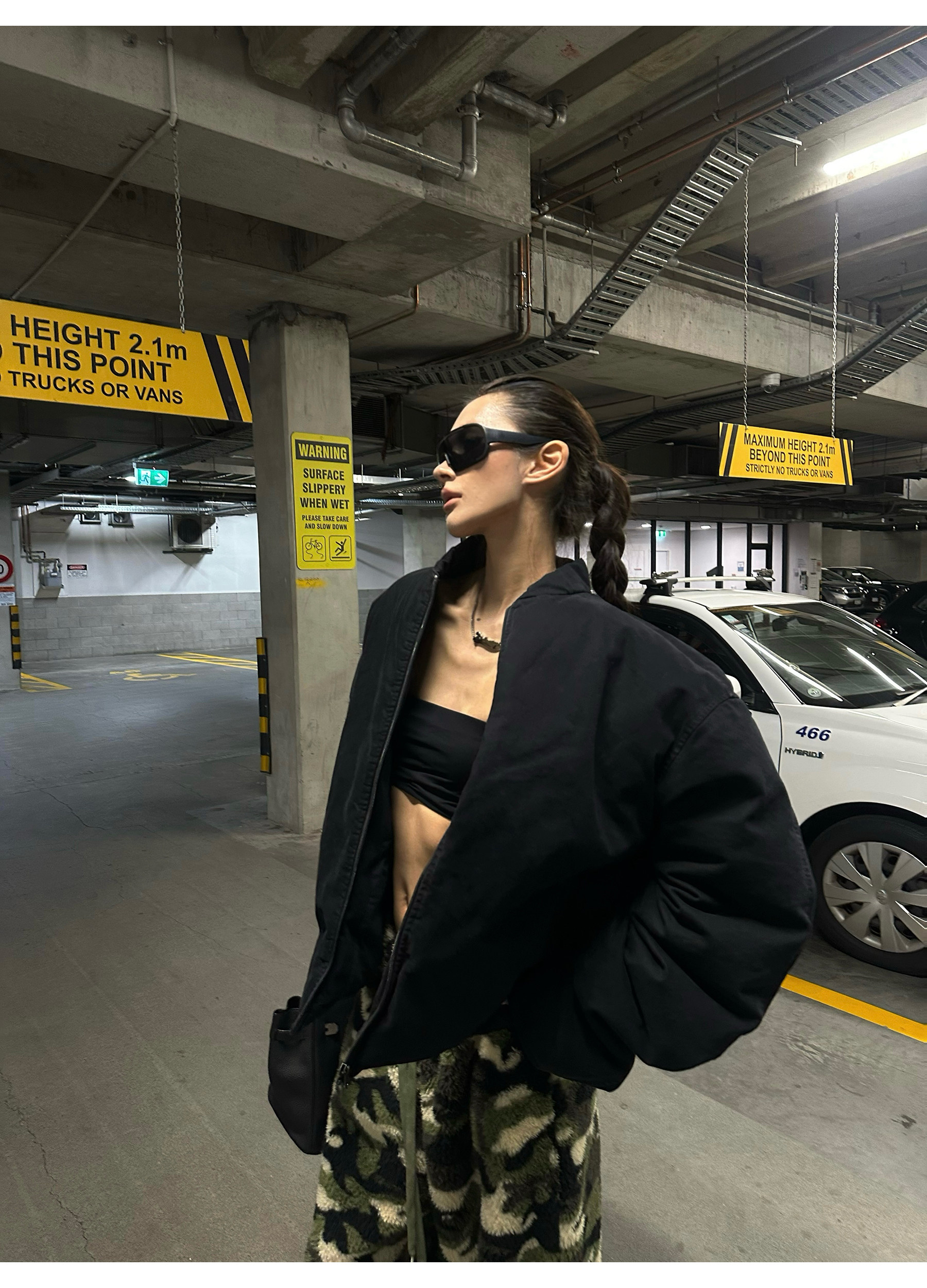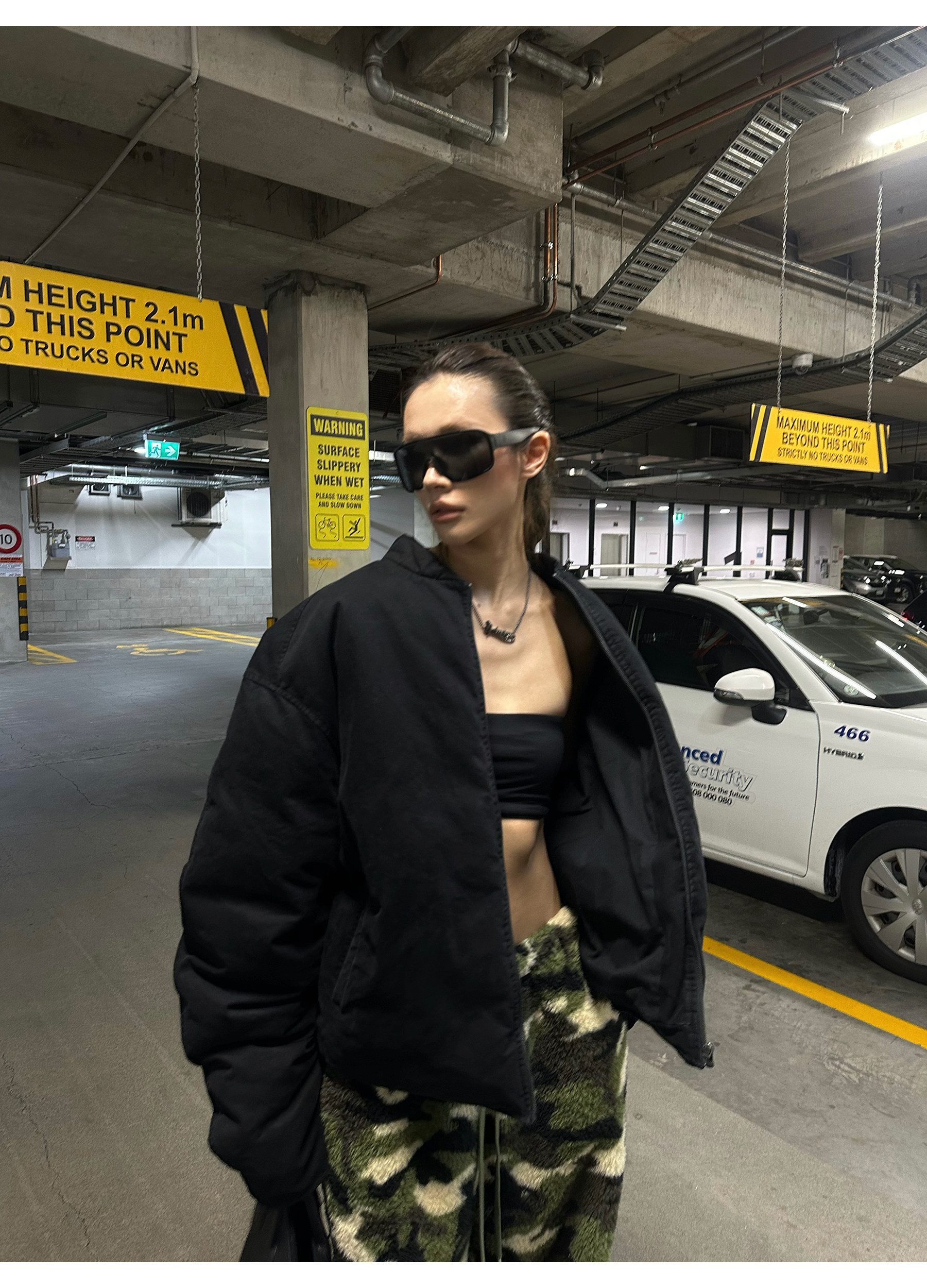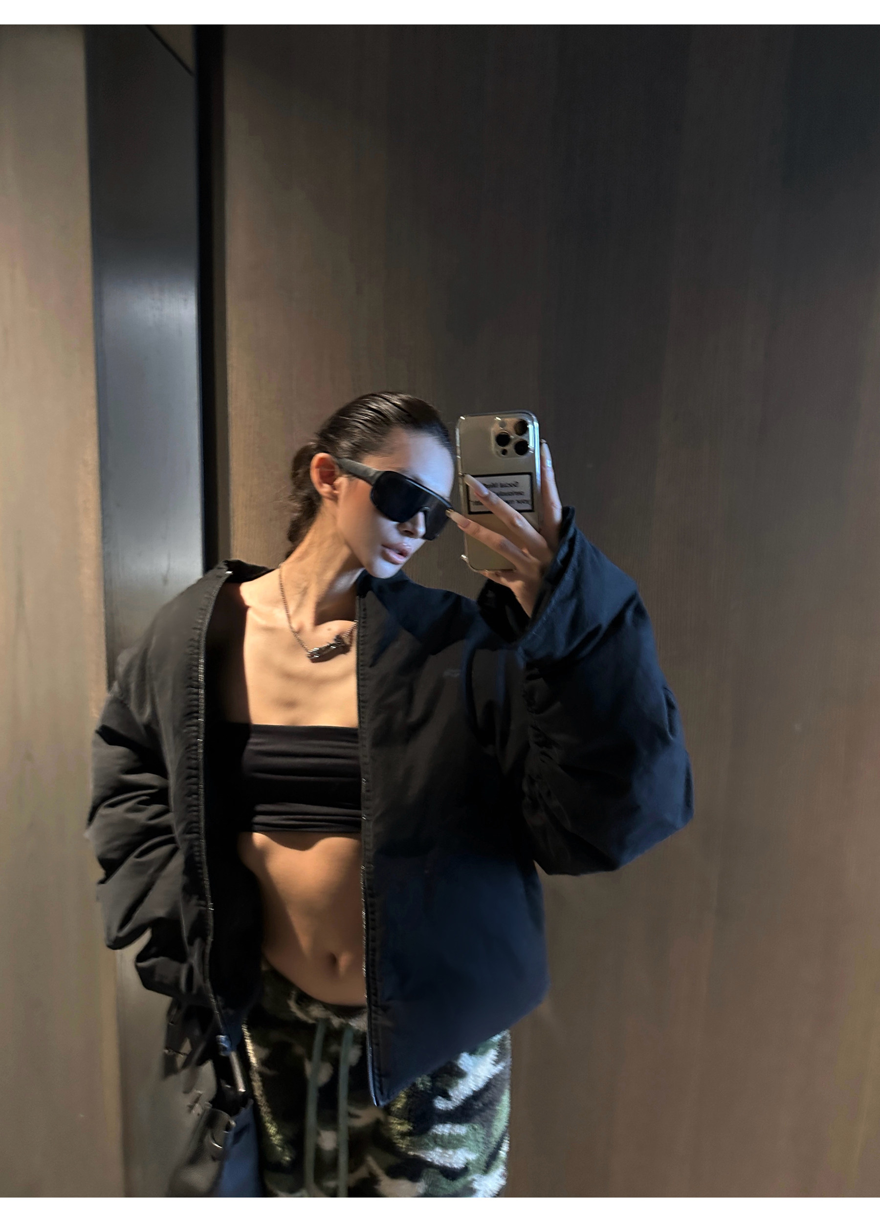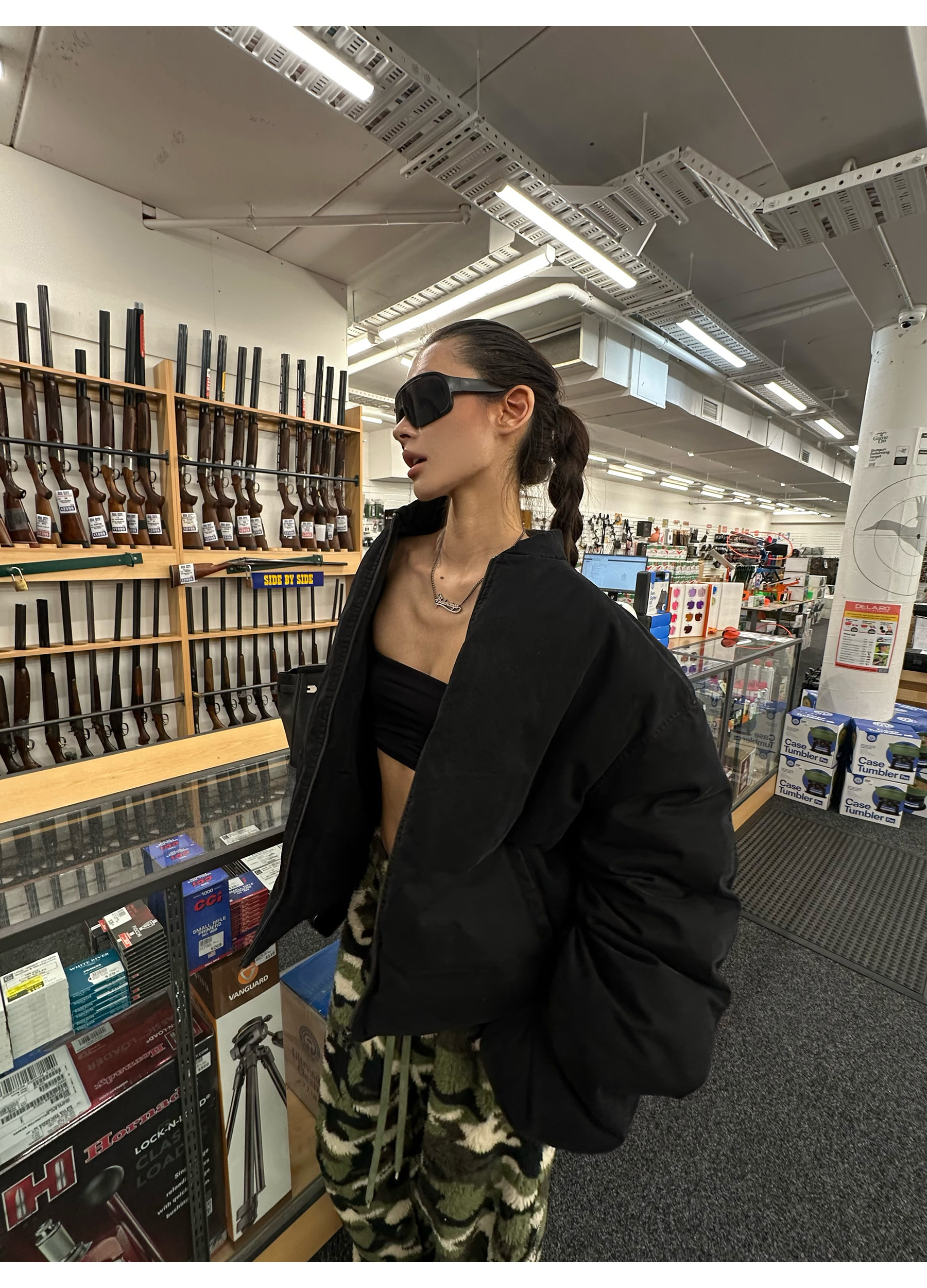 0122Stepll Zero-Degree Rebel Black Short Cotton Jacket for Women, American Retro Style, Loose Fit, Puffer Jacket
