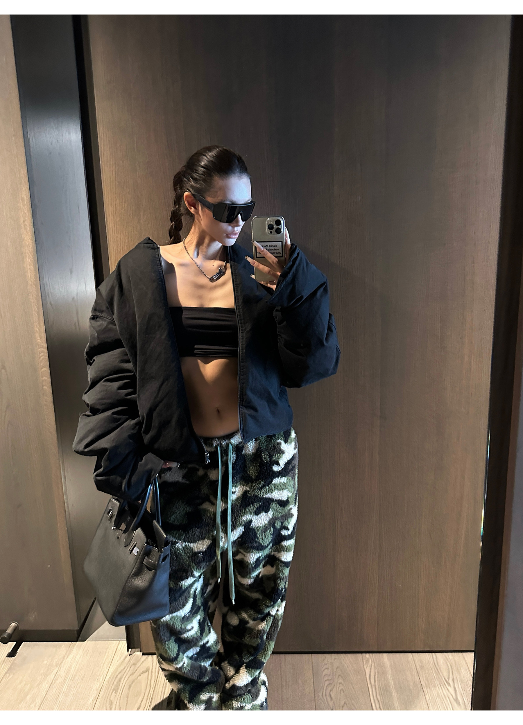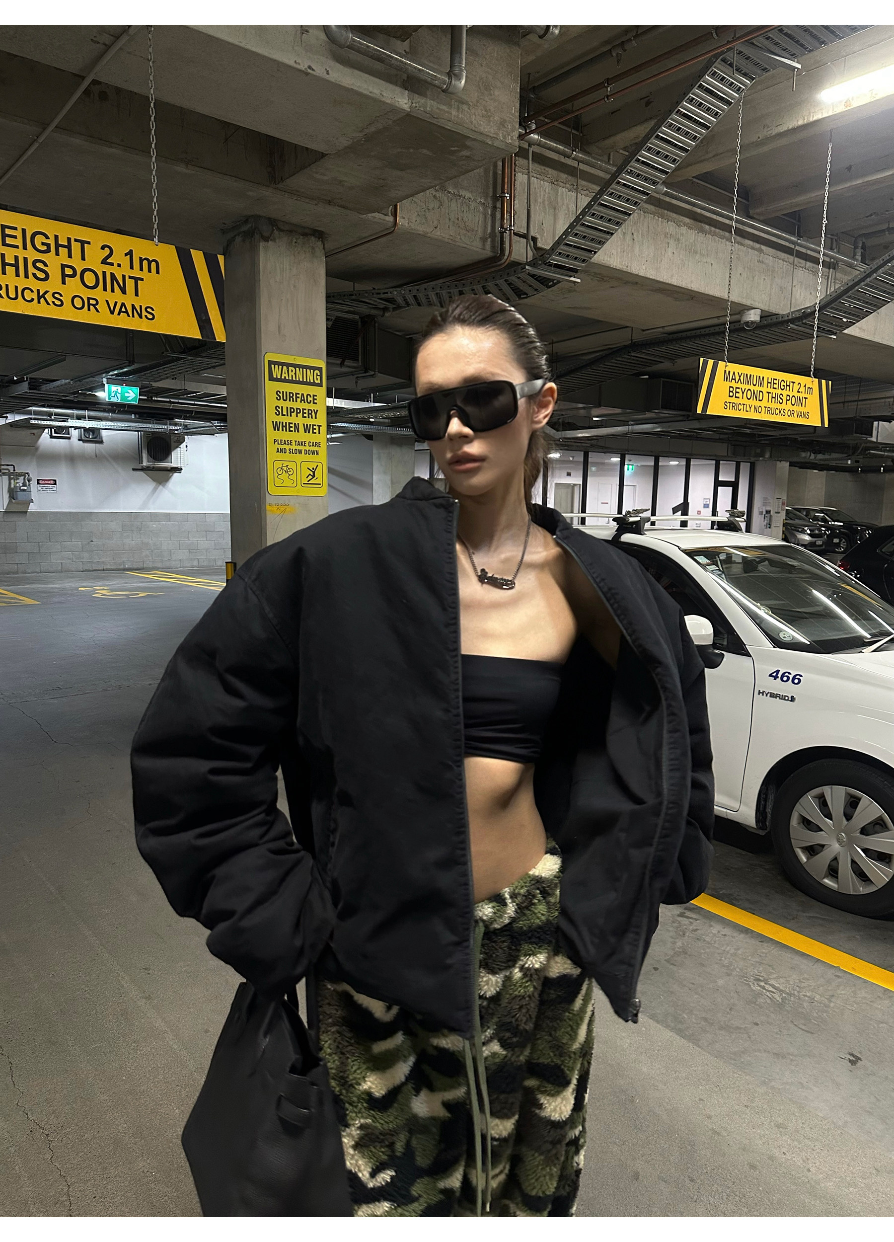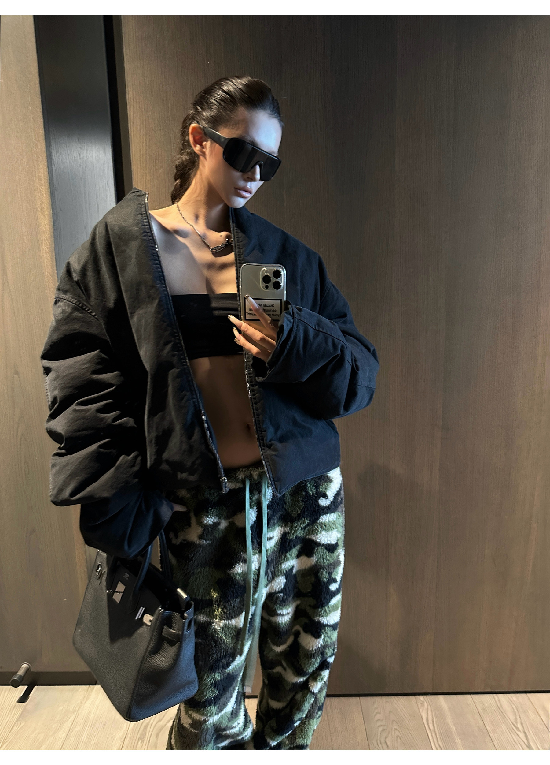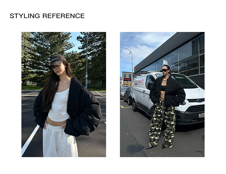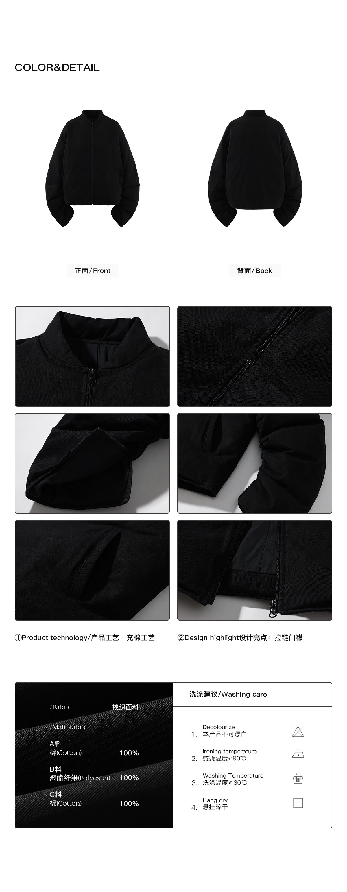 0122Stepll Zero-Degree Rebel Black Short Cotton Jacket for Women, American Retro Style, Loose Fit, Puffer Jacket