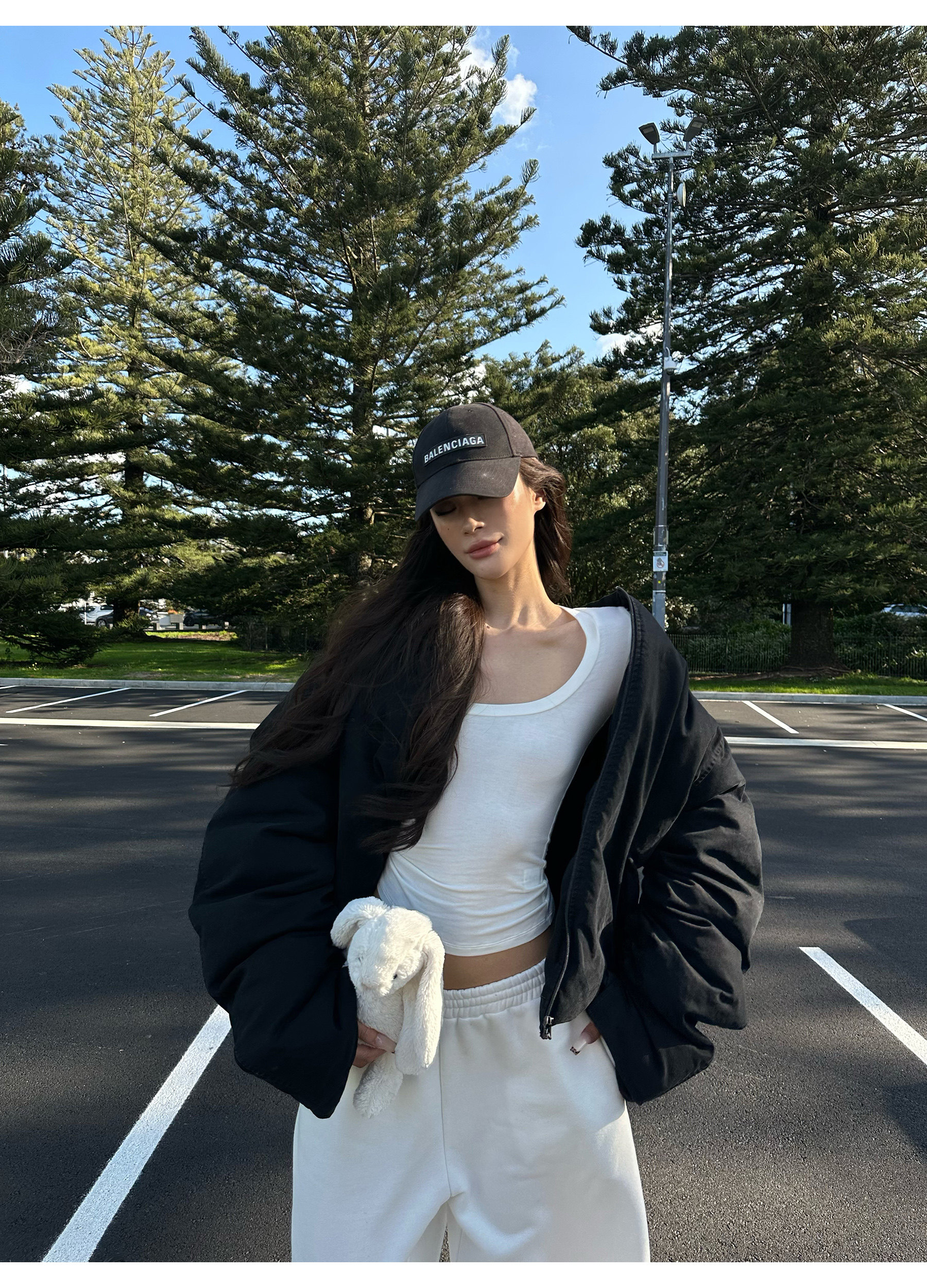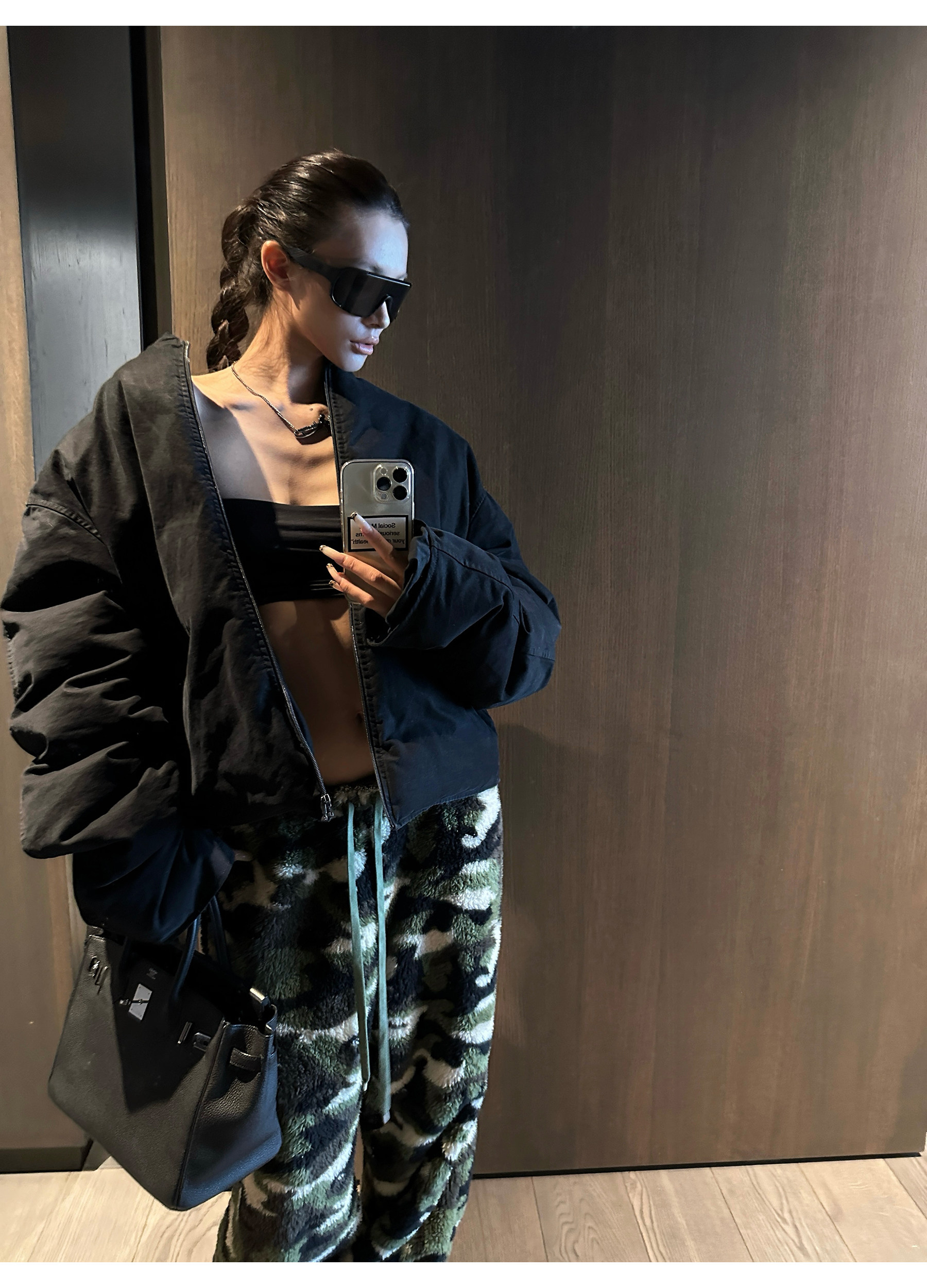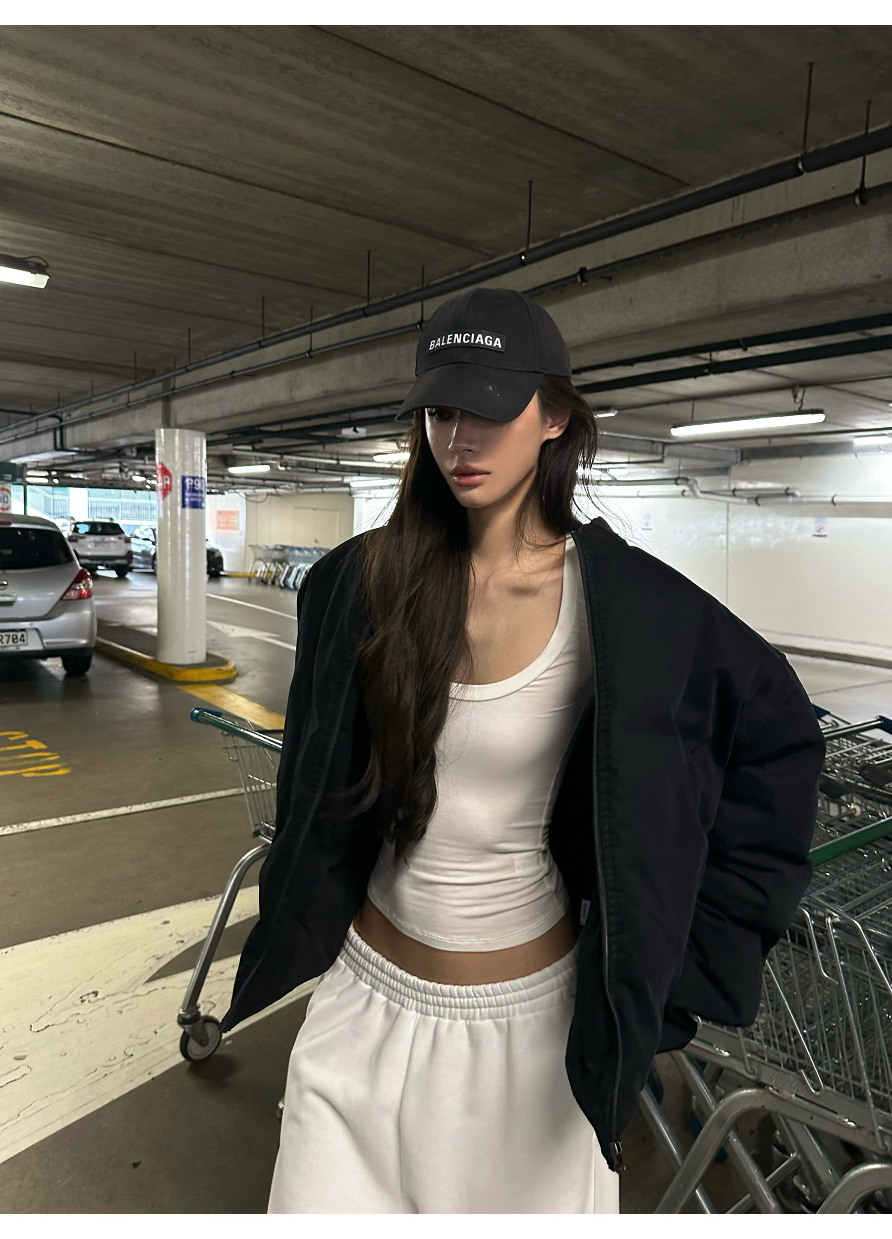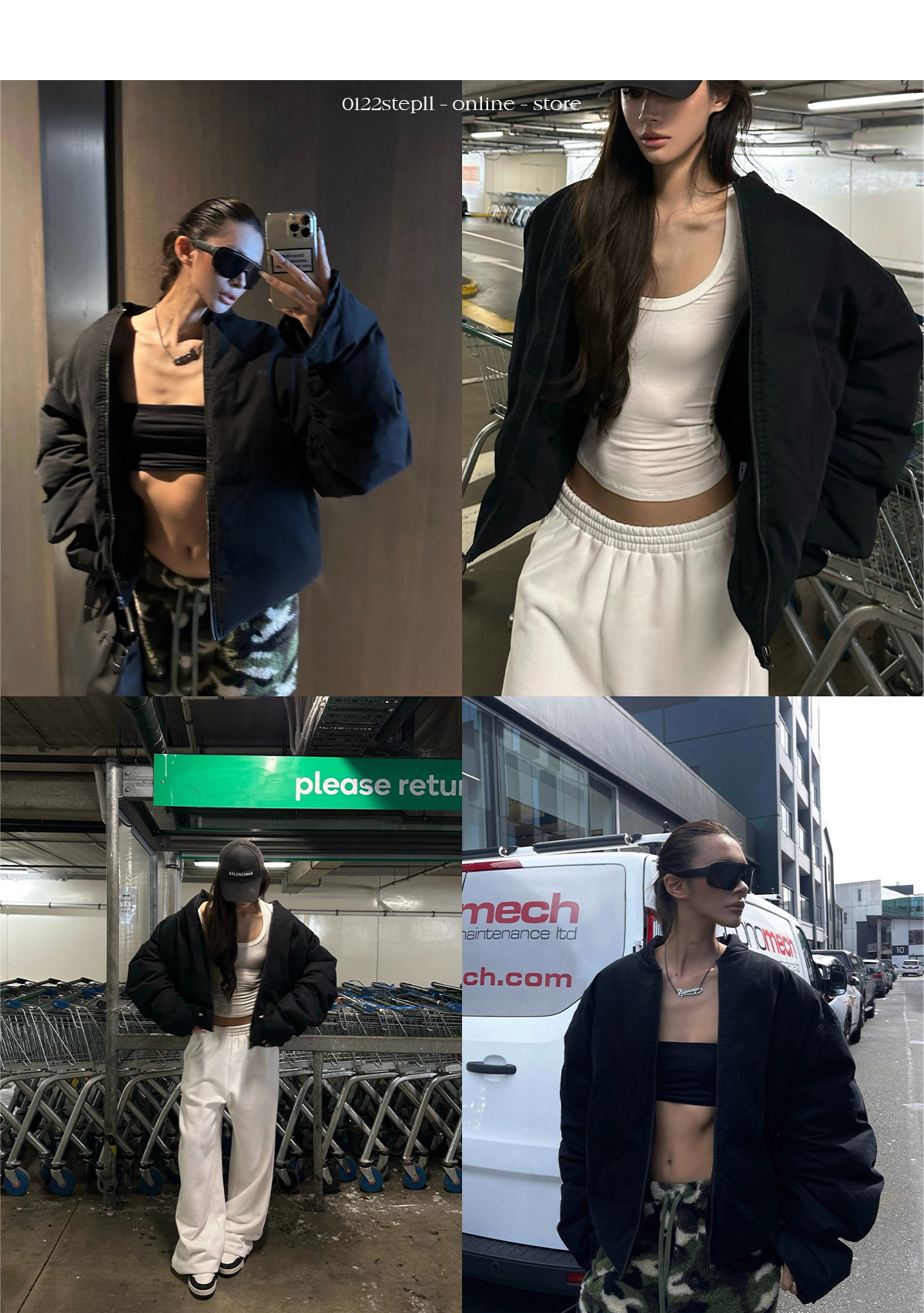 0122Stepll Zero-Degree Rebel Black Short Cotton Jacket for Women, American Retro Style, Loose Fit, Puffer Jacket