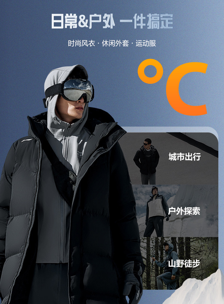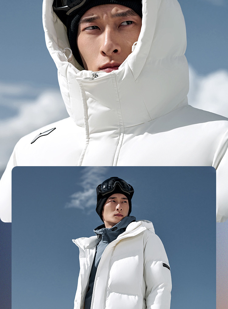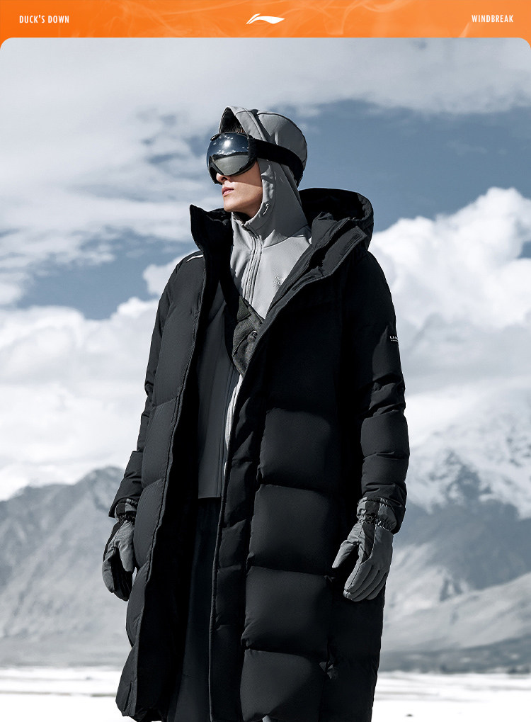 Li Ning Hotpot down Jacket | Men's Autumn and Winter Thickened Duck down Warm Outdoor Hooded Long Sports Coat for Men