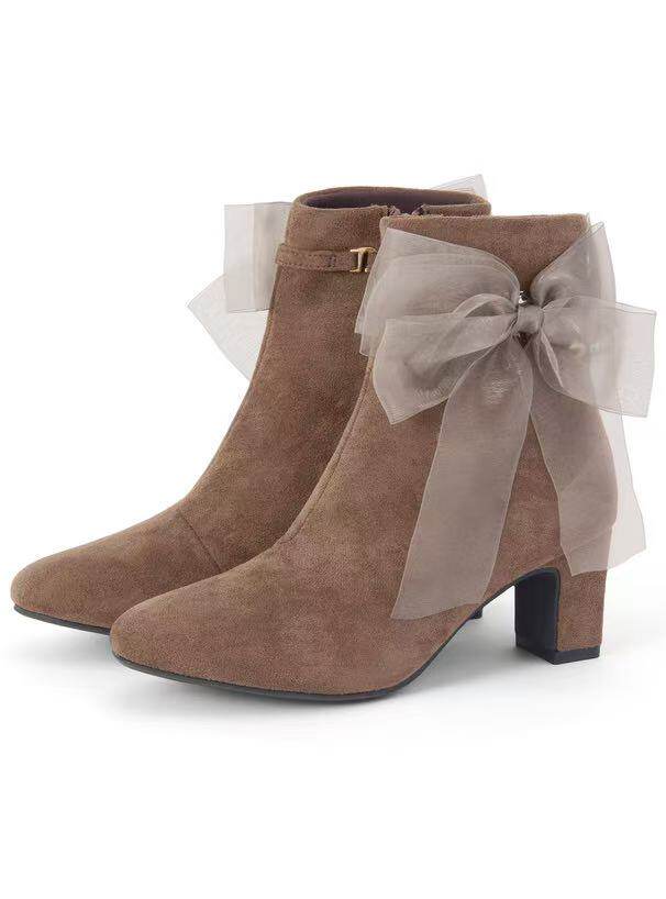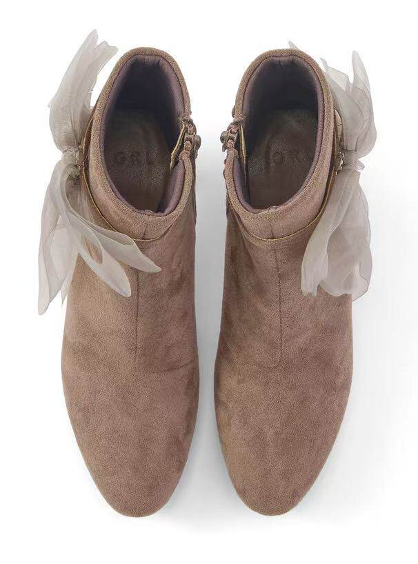 Grl Japan Authentic Purchase Service Three-Way Tulle Ribbon Short Boots 2025 Early Autumn New Style Versatile Comfortable Bowknot