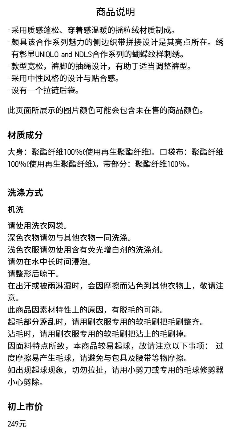 Uniqlo Collaboration Model/Men's and Women's Fleece Trousers/Casual Pants 483979