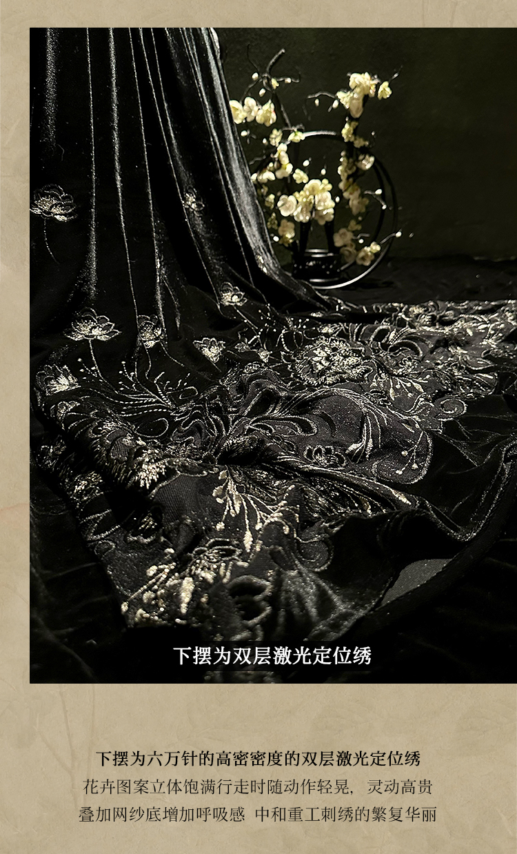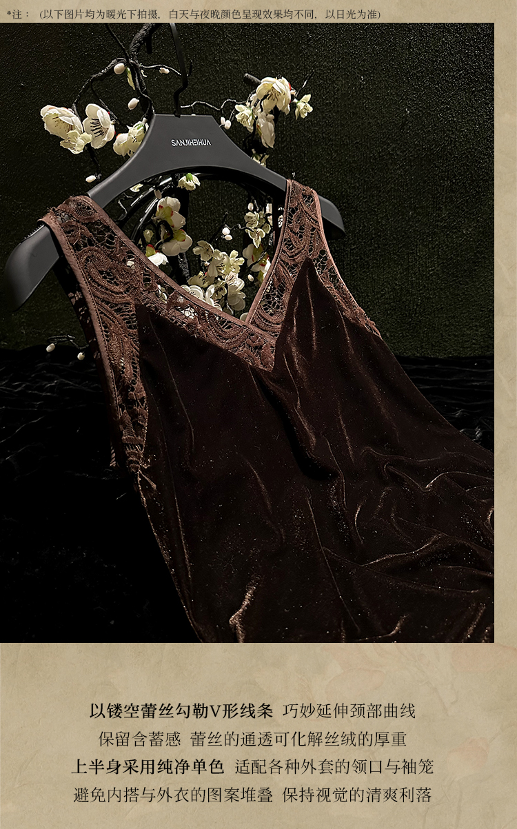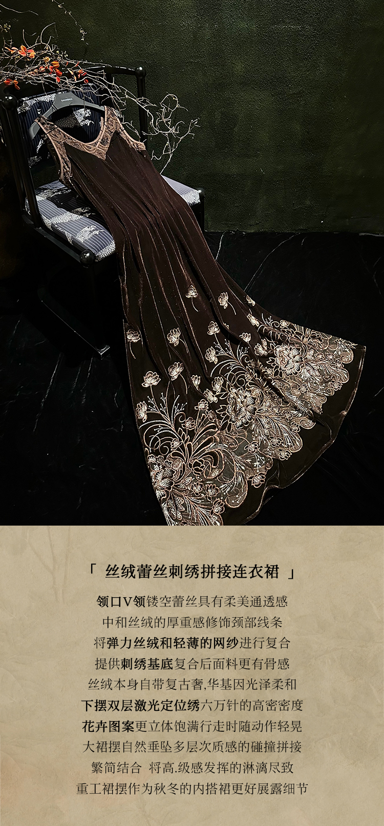 Sanzhi Heihua [Hanben Xi] Chinese-Style New Lace Velvet Dress, Very Beautiful Early Autumn Dress, Vest-Style Long Dress