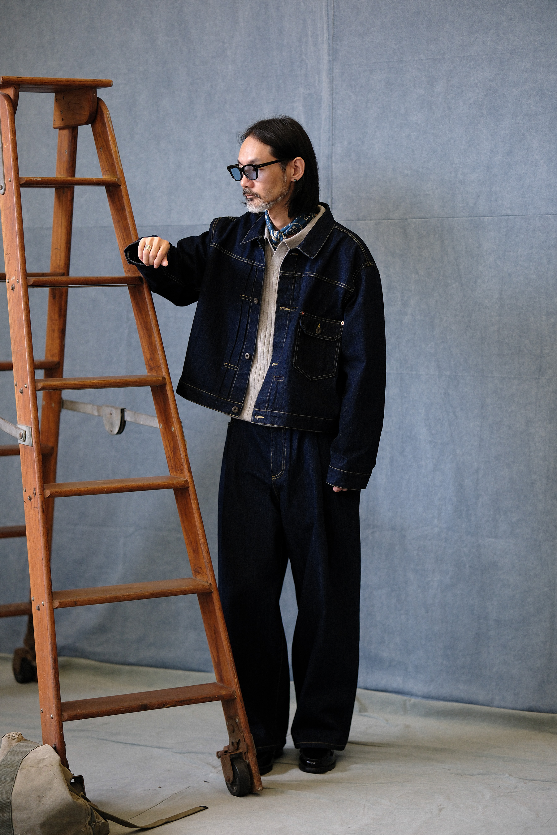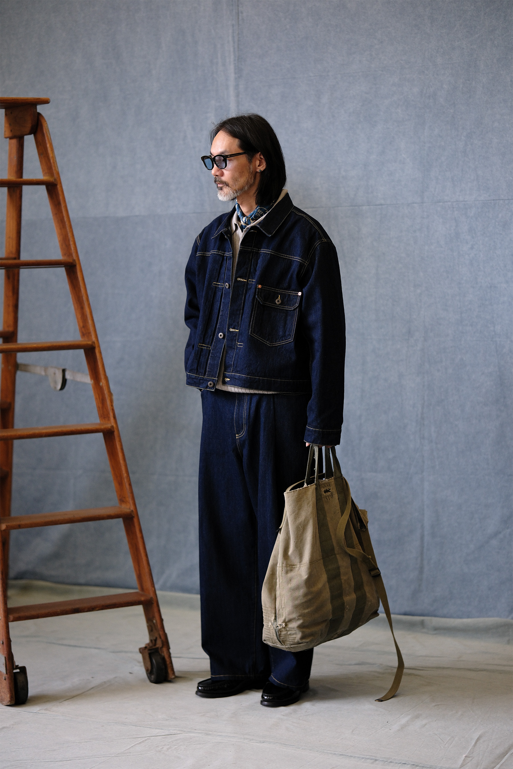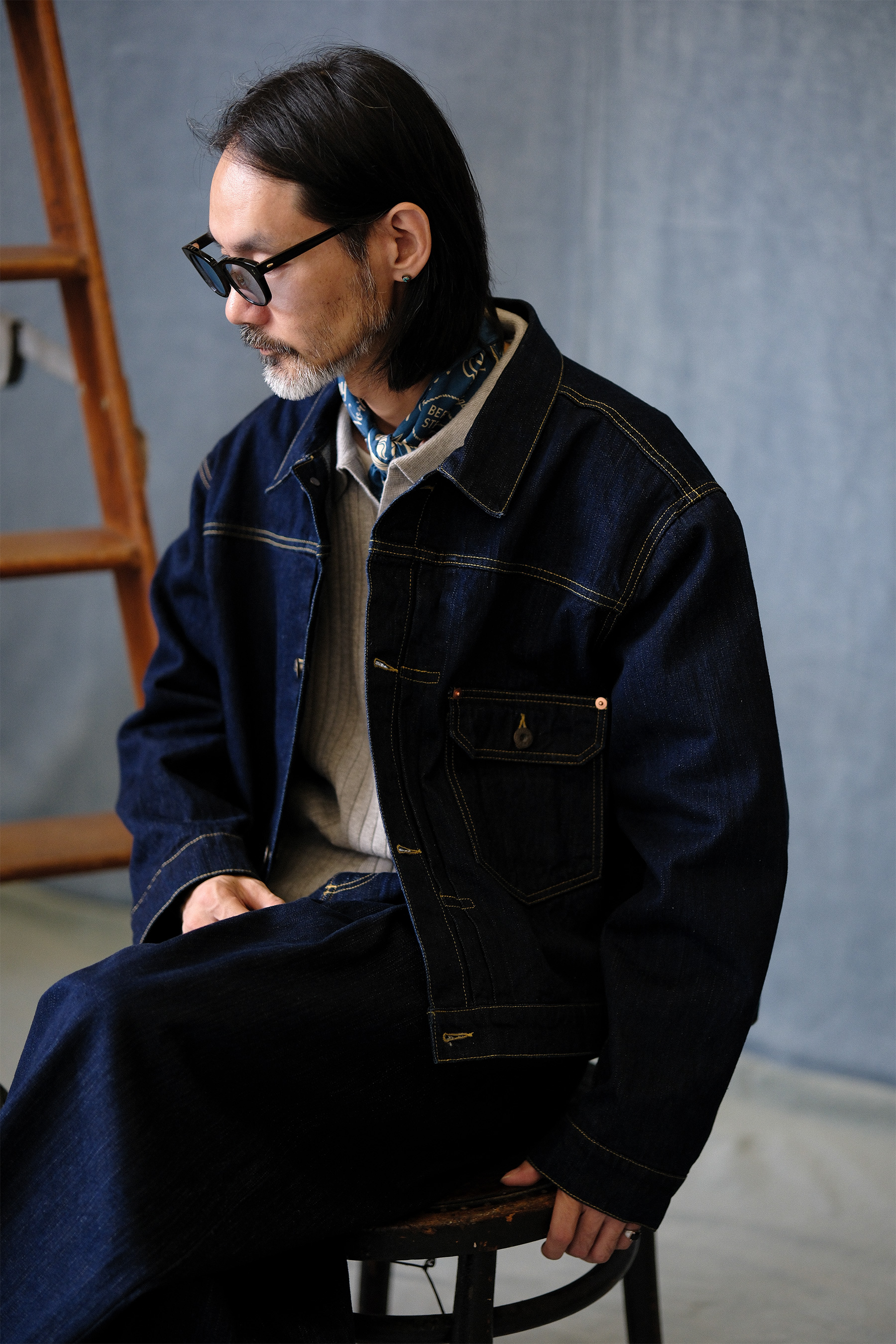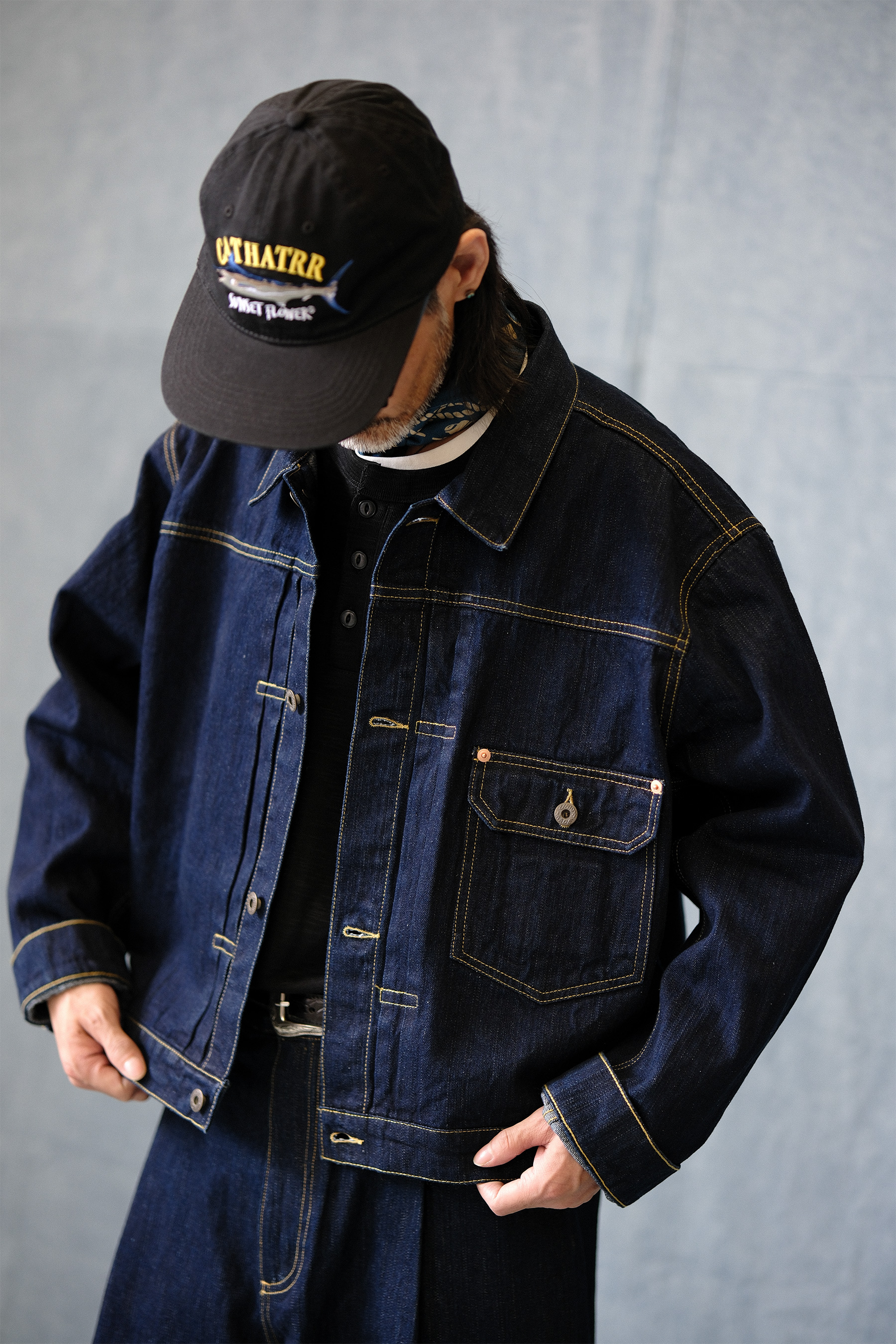 Labor Union Retro Bamboo Texture Loose Light Washed Denim Jacket Lu977