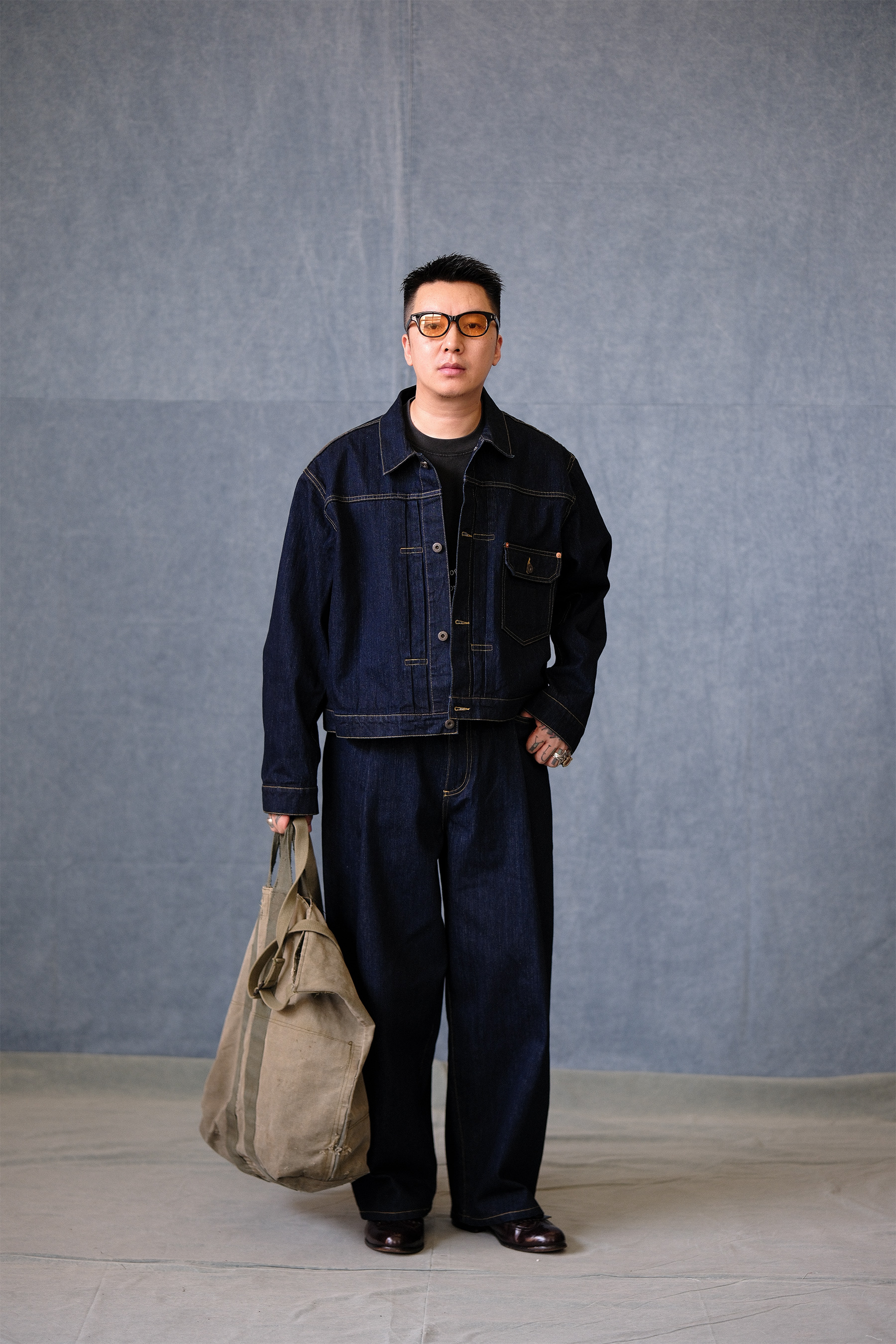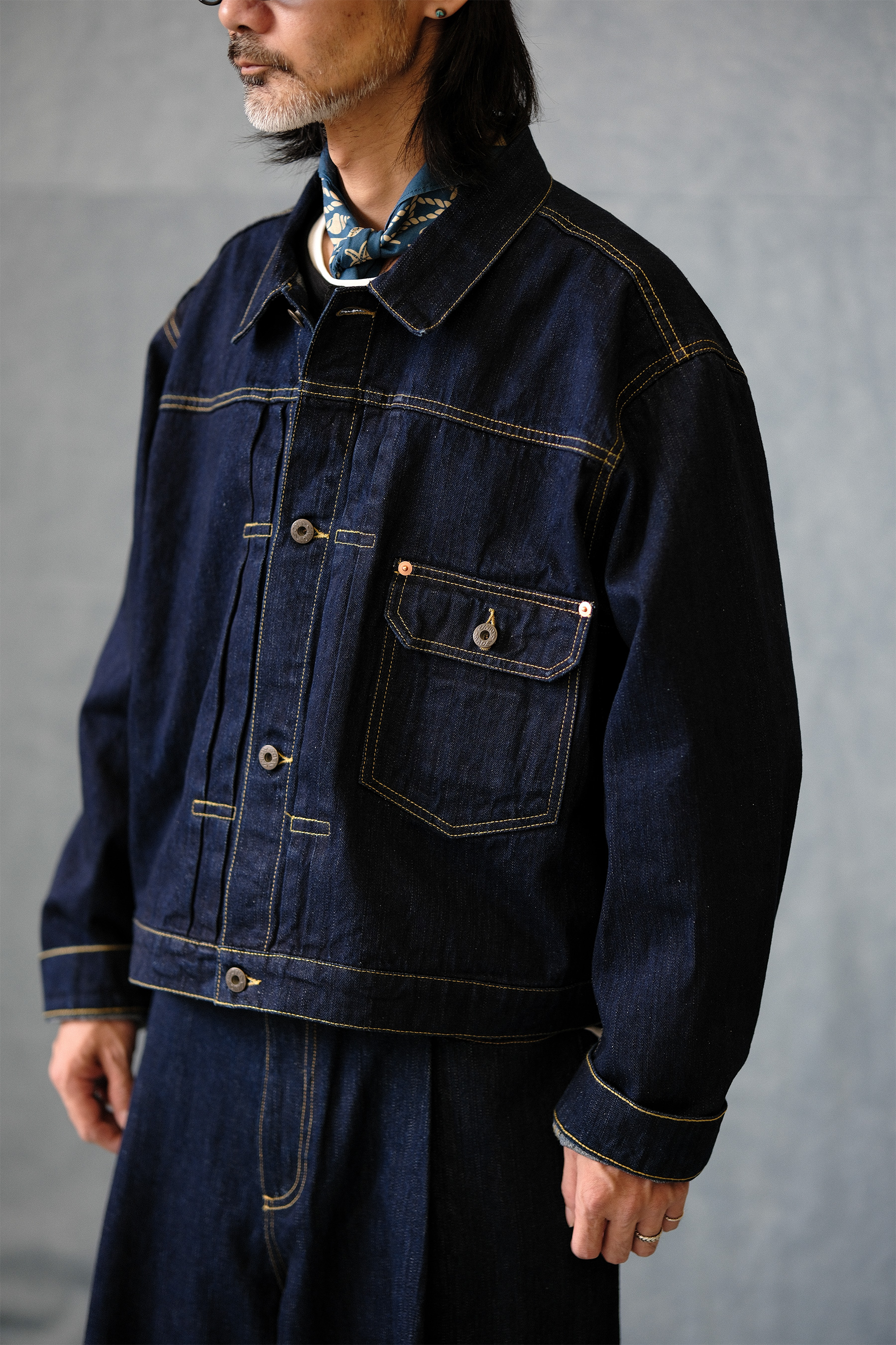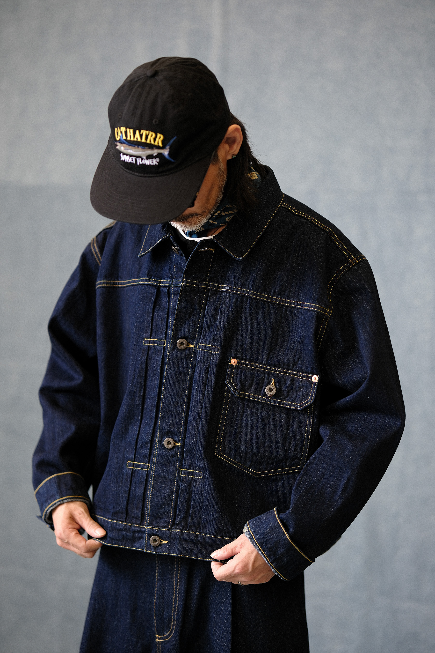 Labor Union Retro Bamboo Texture Loose Light Washed Denim Jacket Lu977