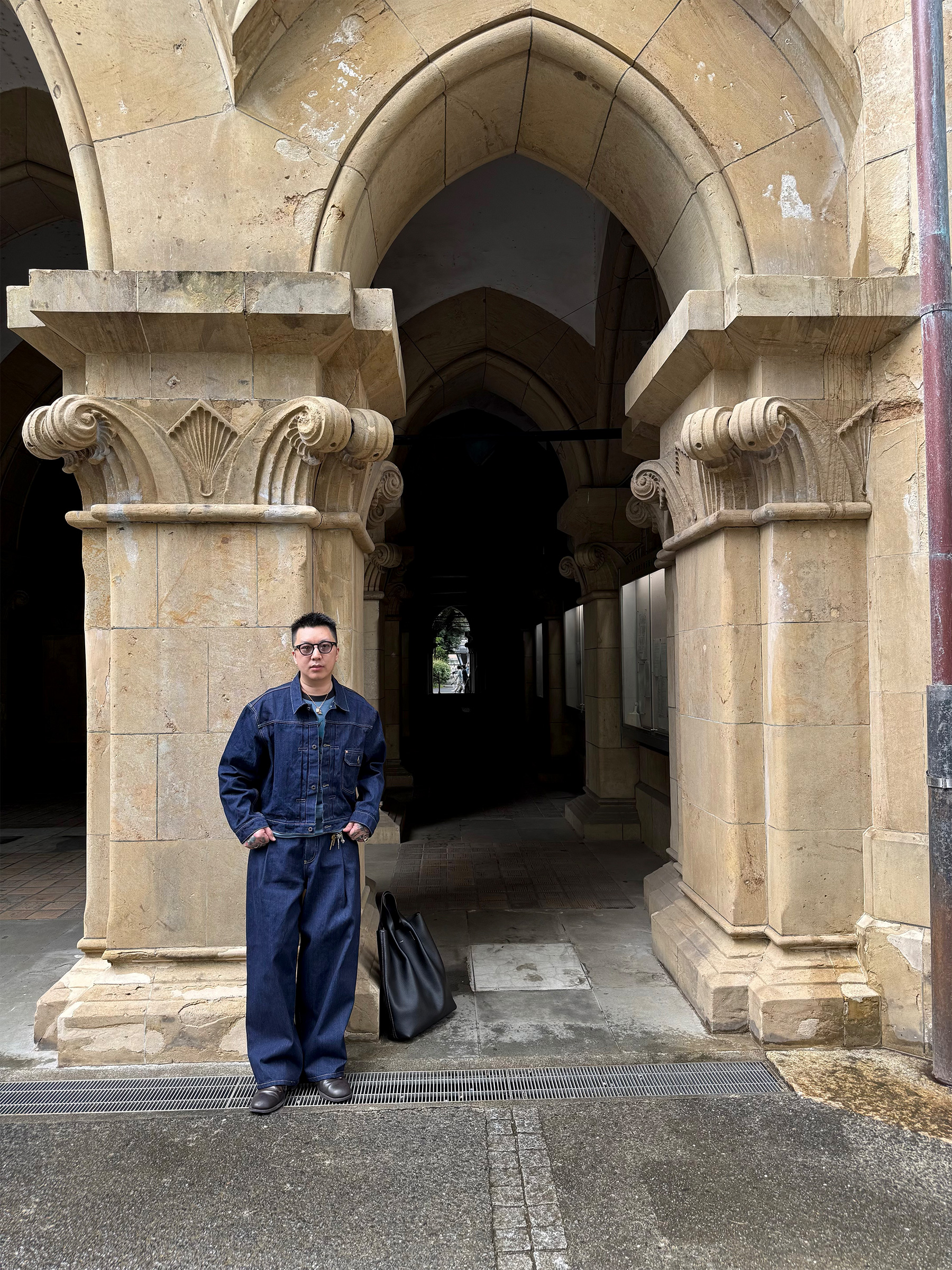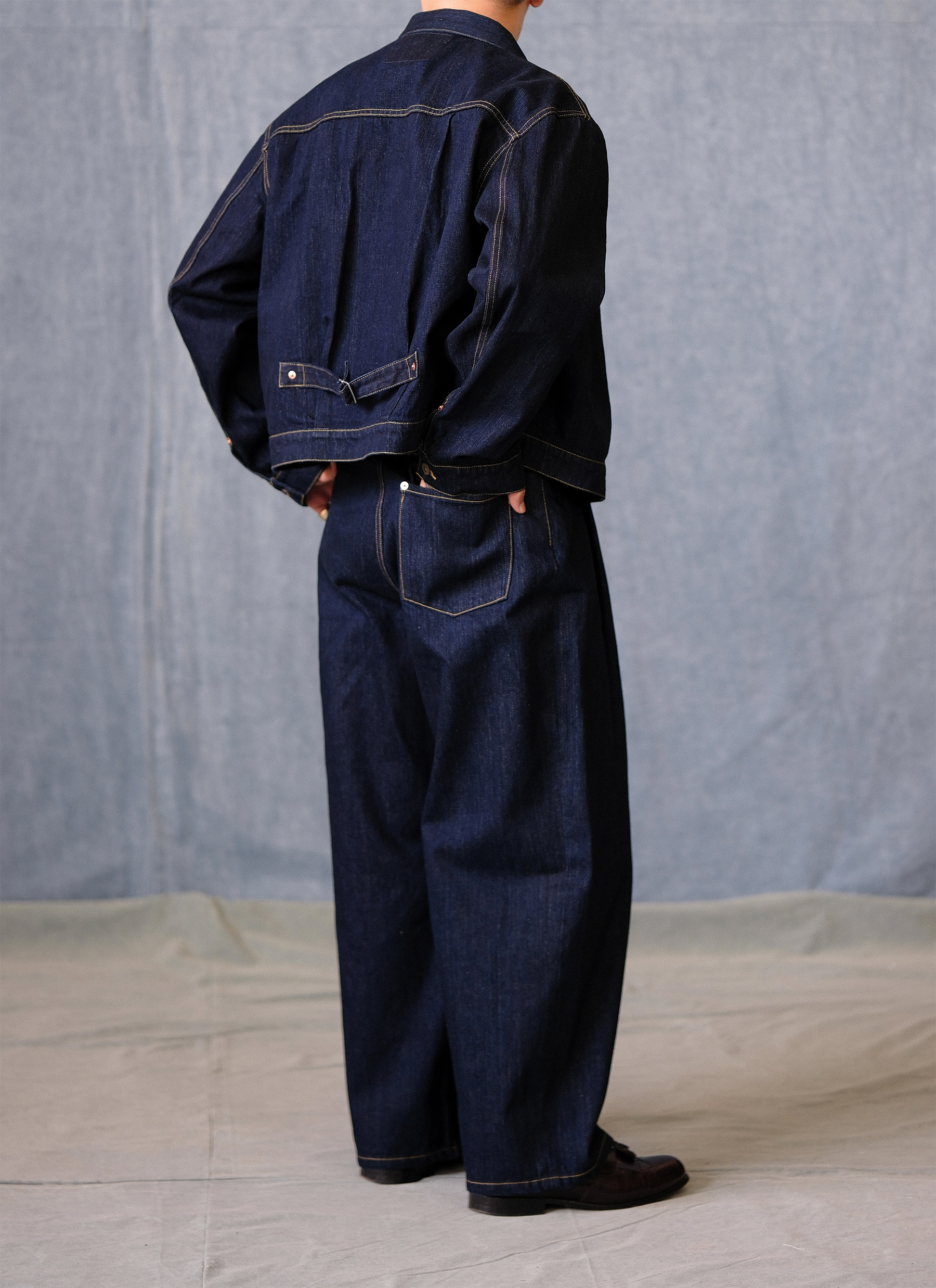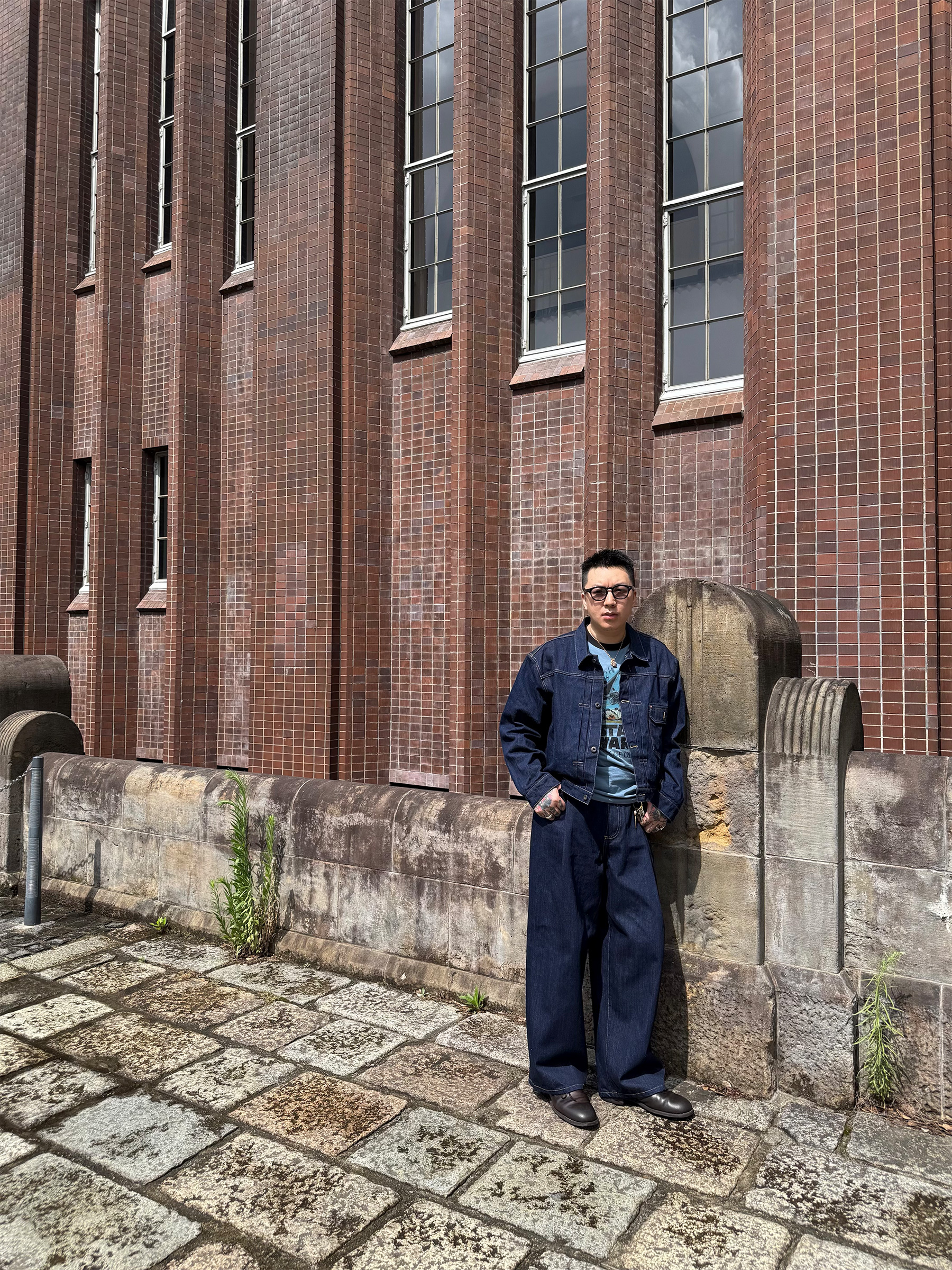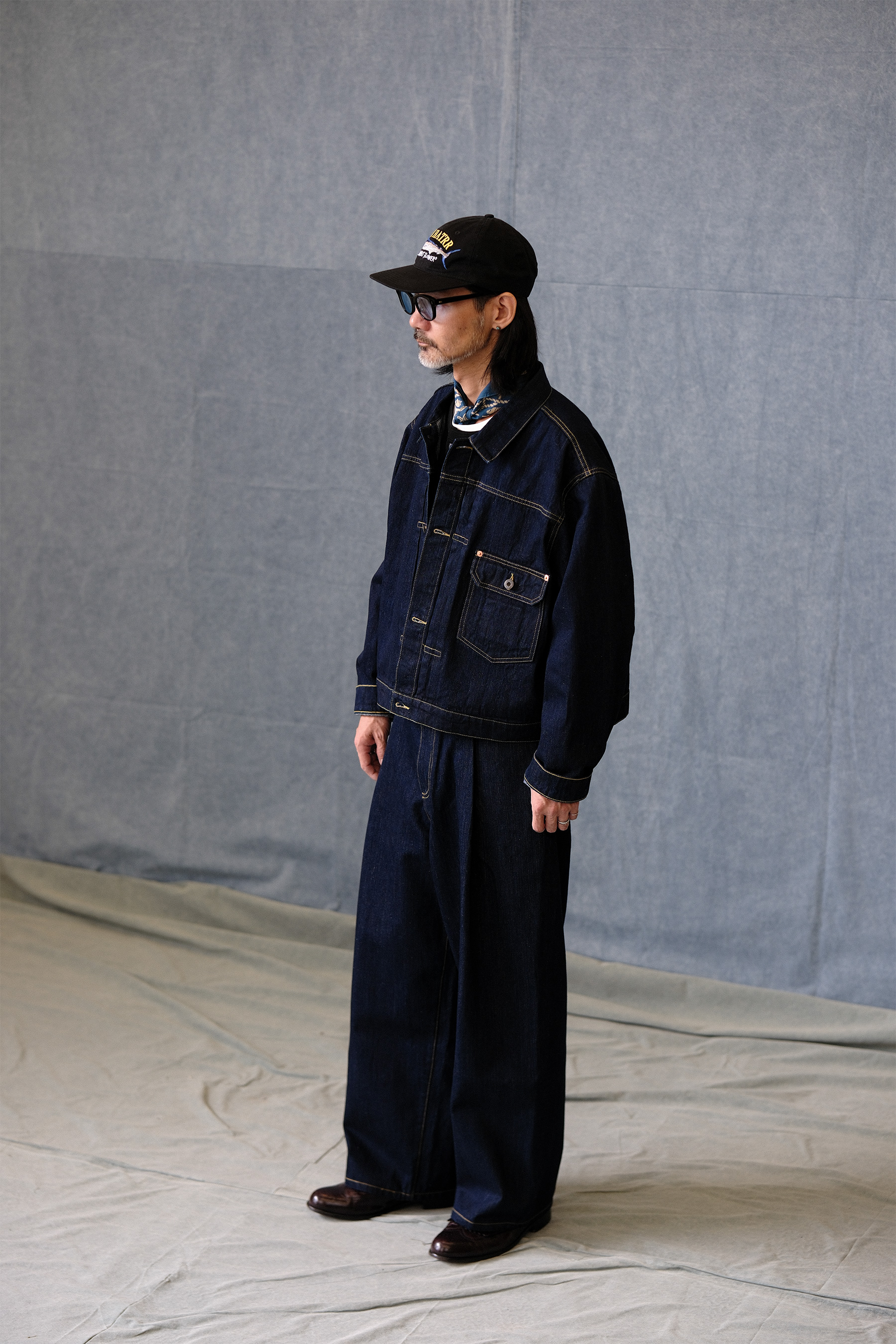 Labor Union Retro Bamboo Texture Loose Light Washed Denim Jacket Lu977