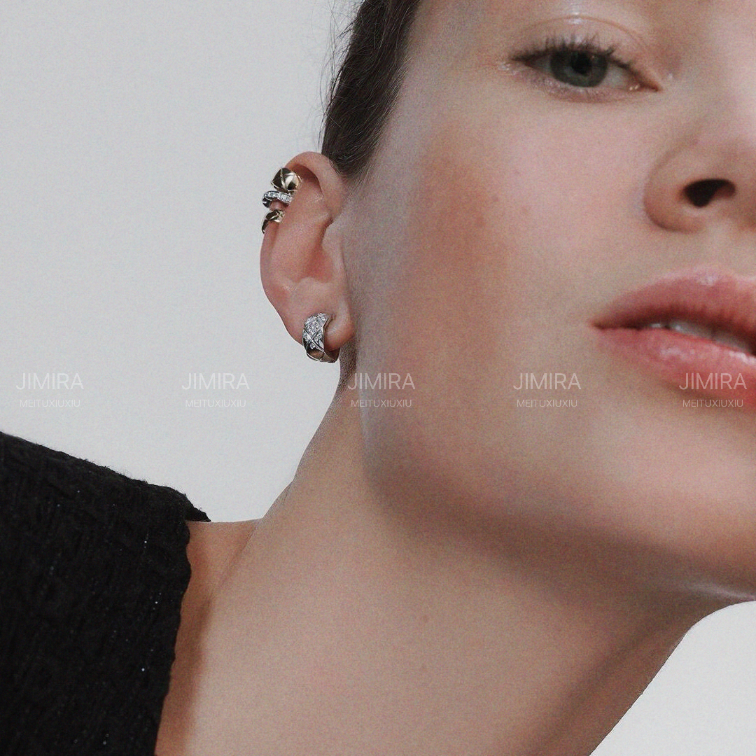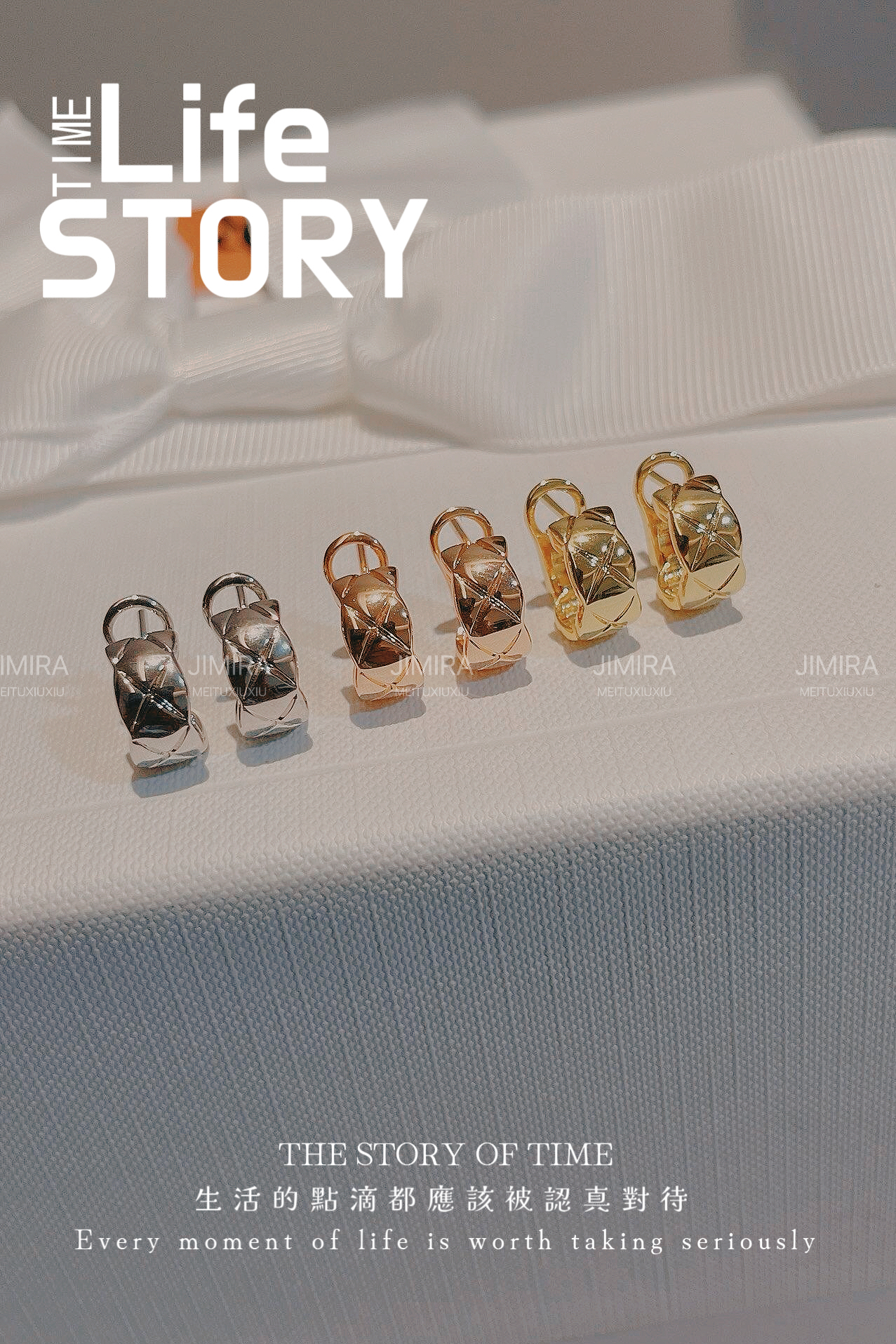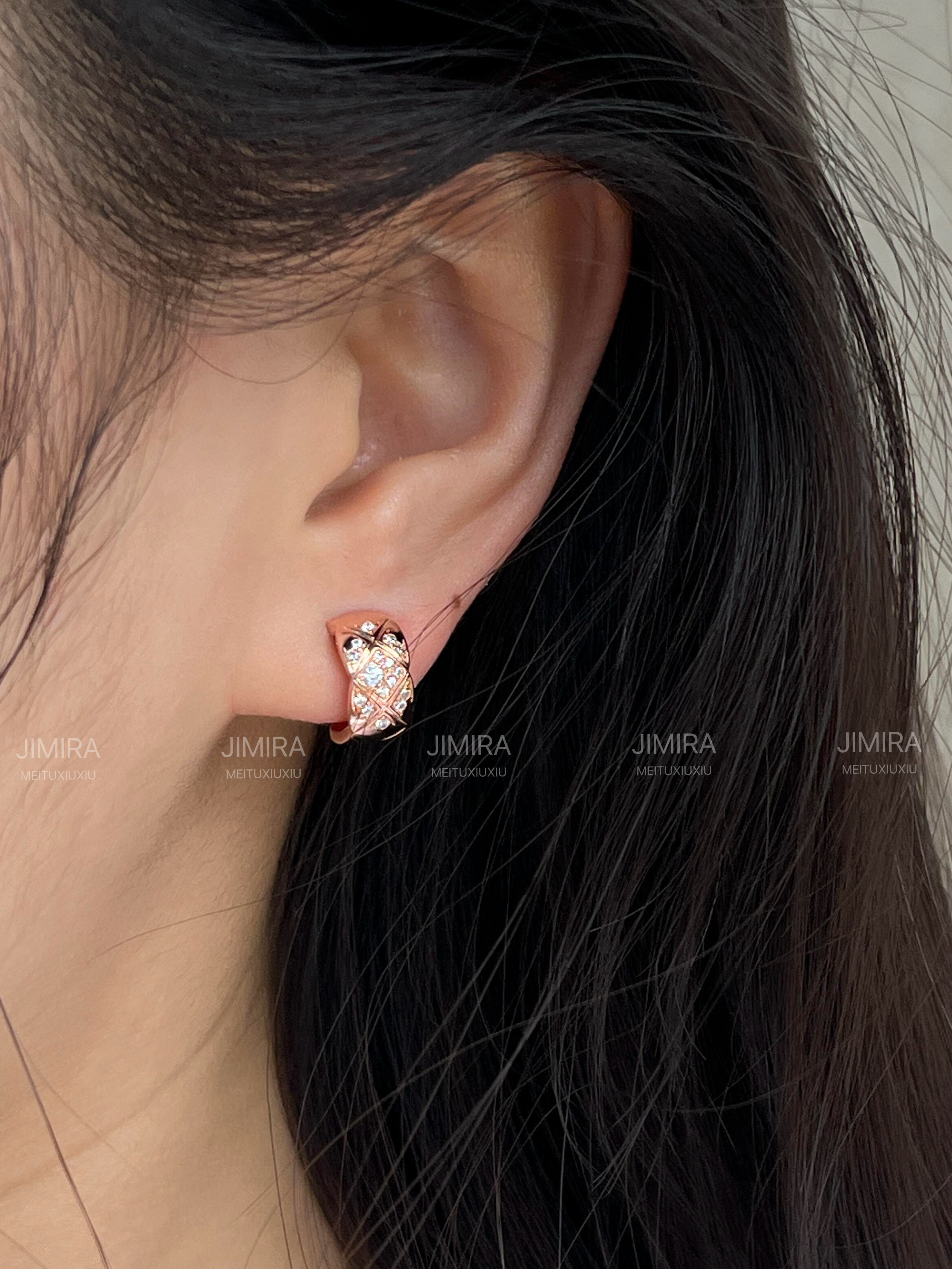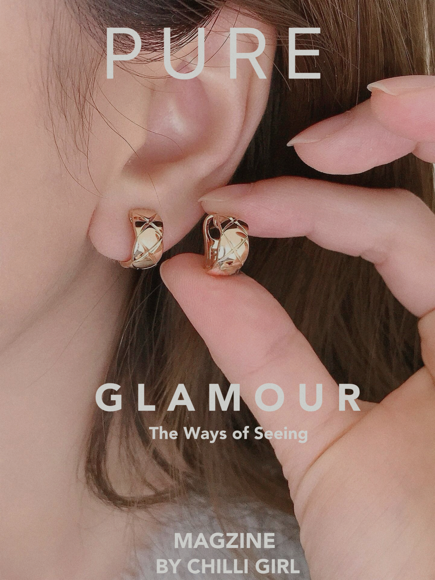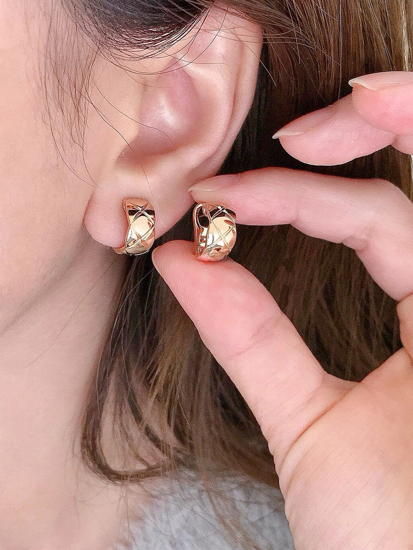 Jennie-Style Earrings, Kim Ji-Ni, Park Min-Young, Kim Yu-Jeon, Diamond-Shaped Checkered Ear Clips, Chanel-Style, Light Luxury, High-End Elegance