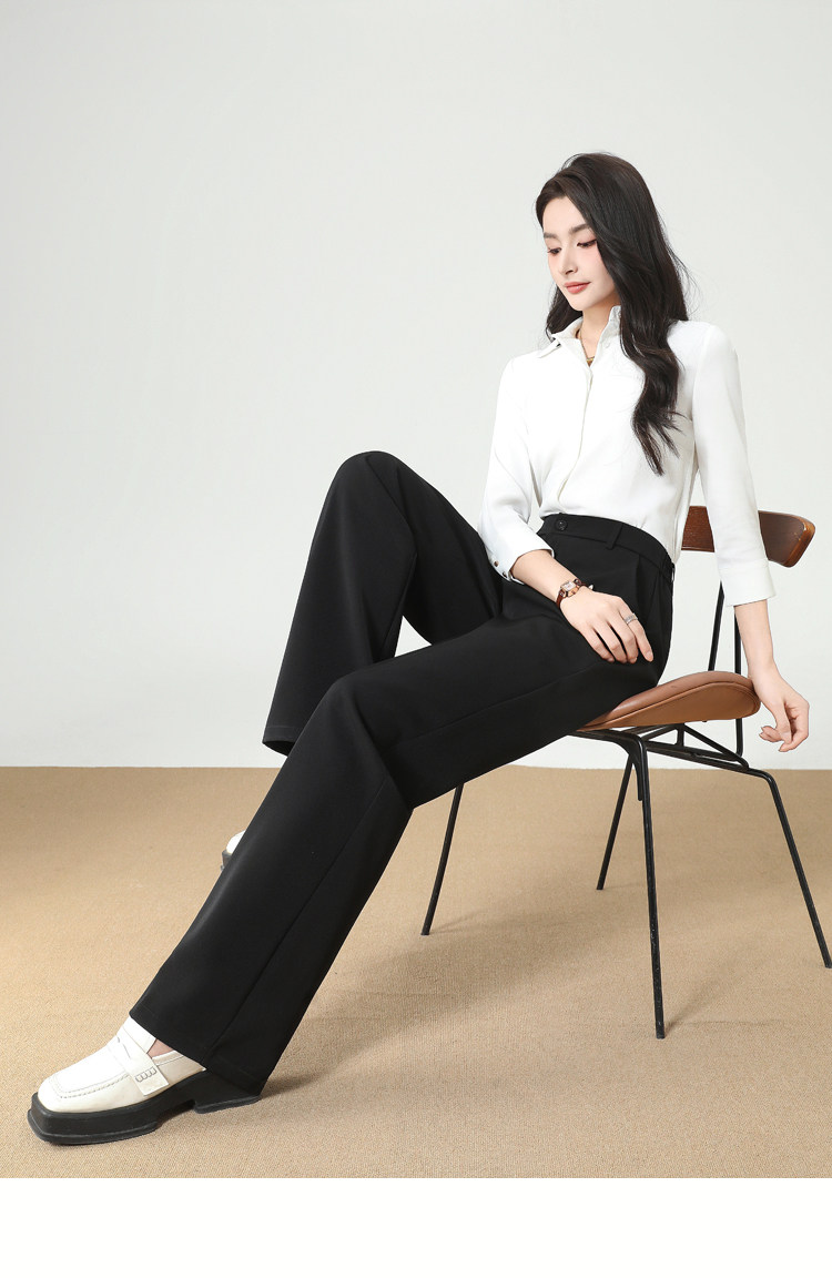 Straight-Leg Suit Pants for Women, Spring, Autumn, Winter 2025 New Style, High-Waisted, High-End, Professional Formal Wear, Black, Fleece-Lined, Wide-Leg Pants