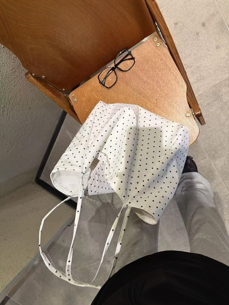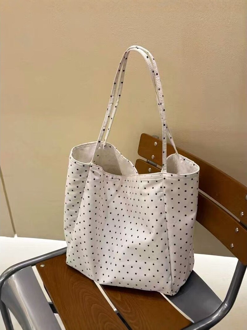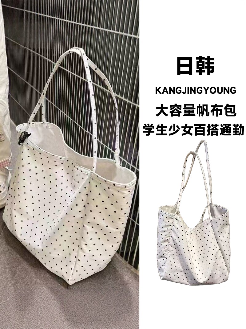 Japanese and Korean Large-Capacity Canvas Bag 2025 Polka Dot New Style Korean Version Tote Shoulder Bag for Students and Girls Versatile for Commuting