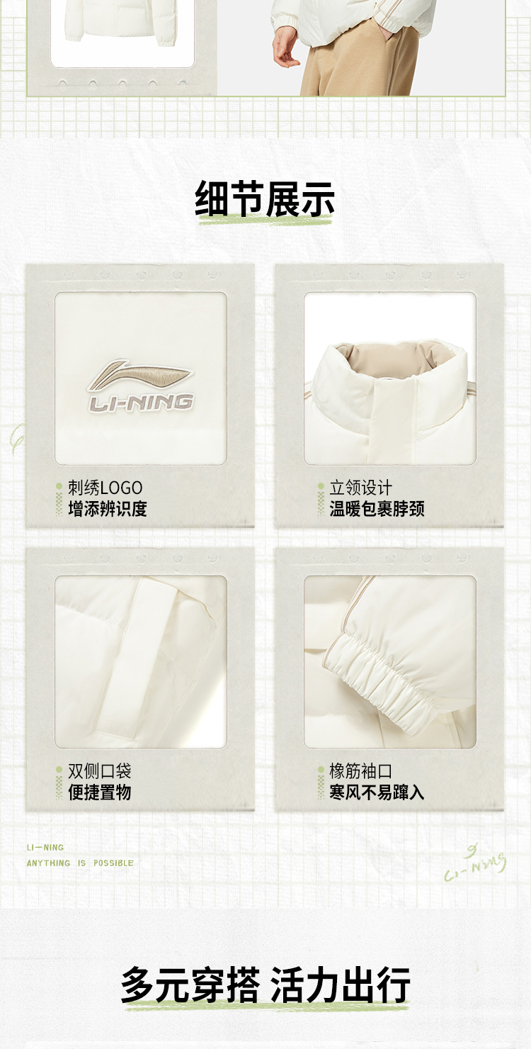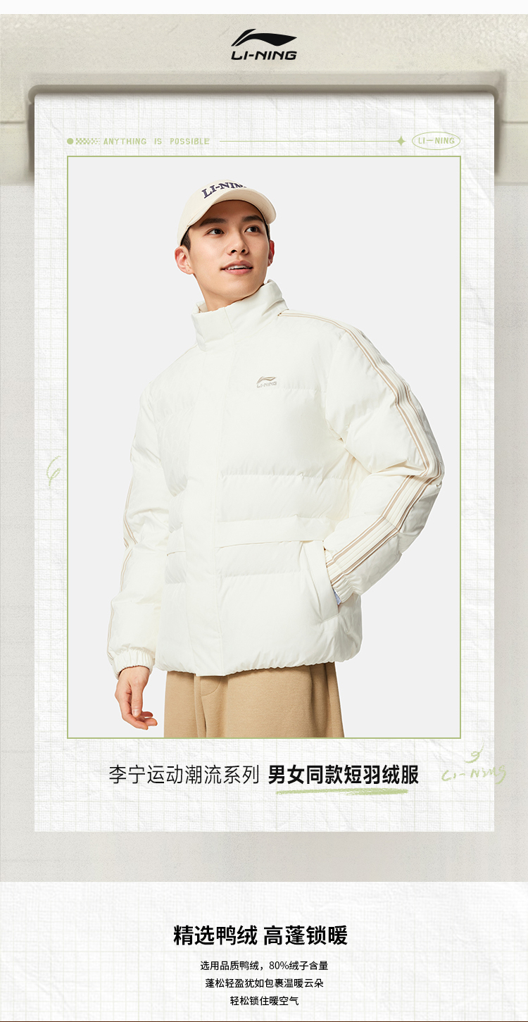 Xiao Zhan Style Li-Ning Short down Jacket for Men and Women, 25 Styles, Sports Lifestyle, Warm Winter Duck down Sportswear