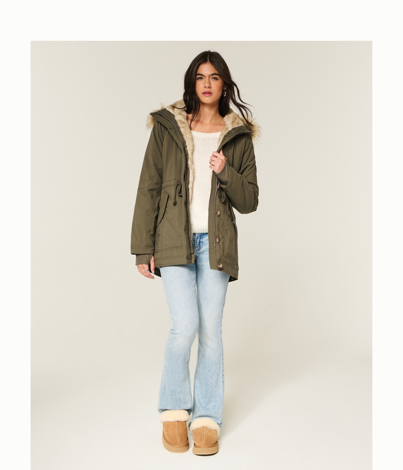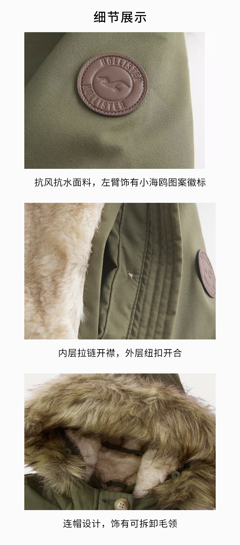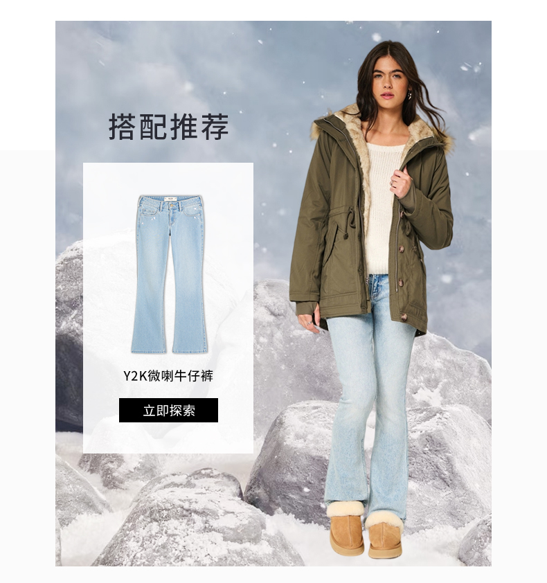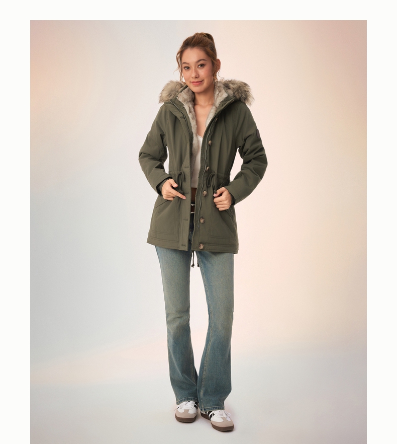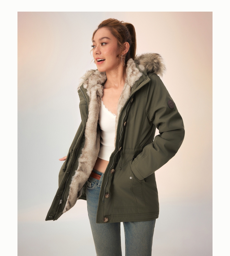 [Wind-Resistant and Warm] Hollister Small Seagull Pattern 25 Autumn and Winter Parka Style Cotton Jacket for Women 344-5053