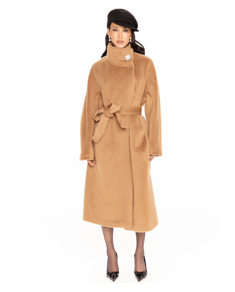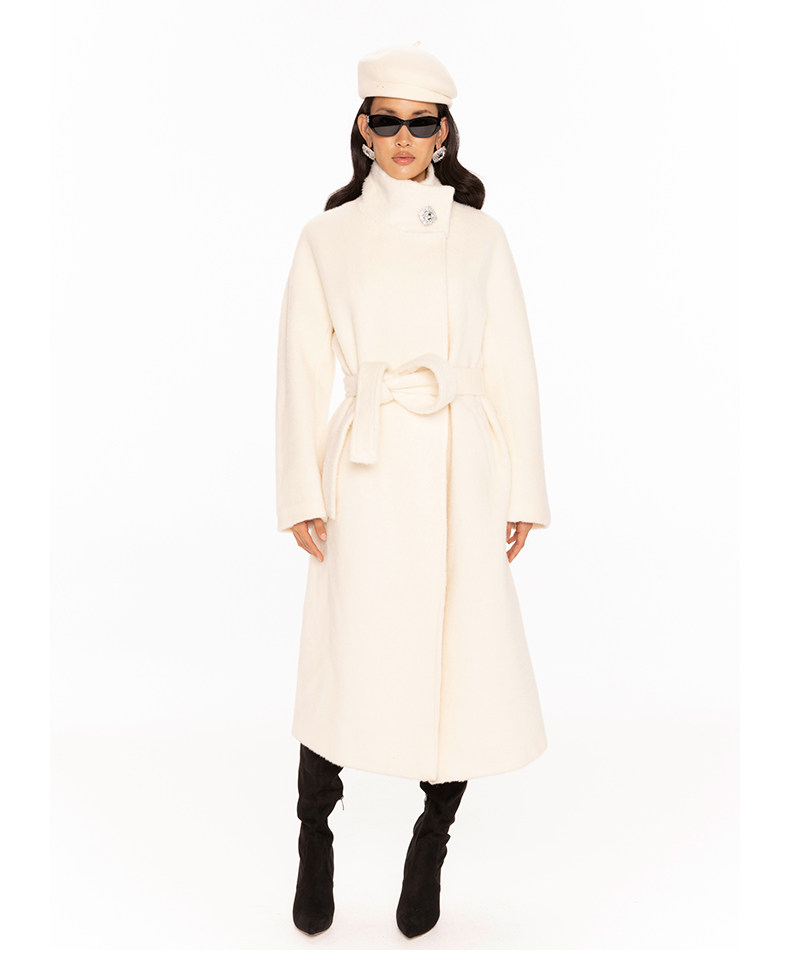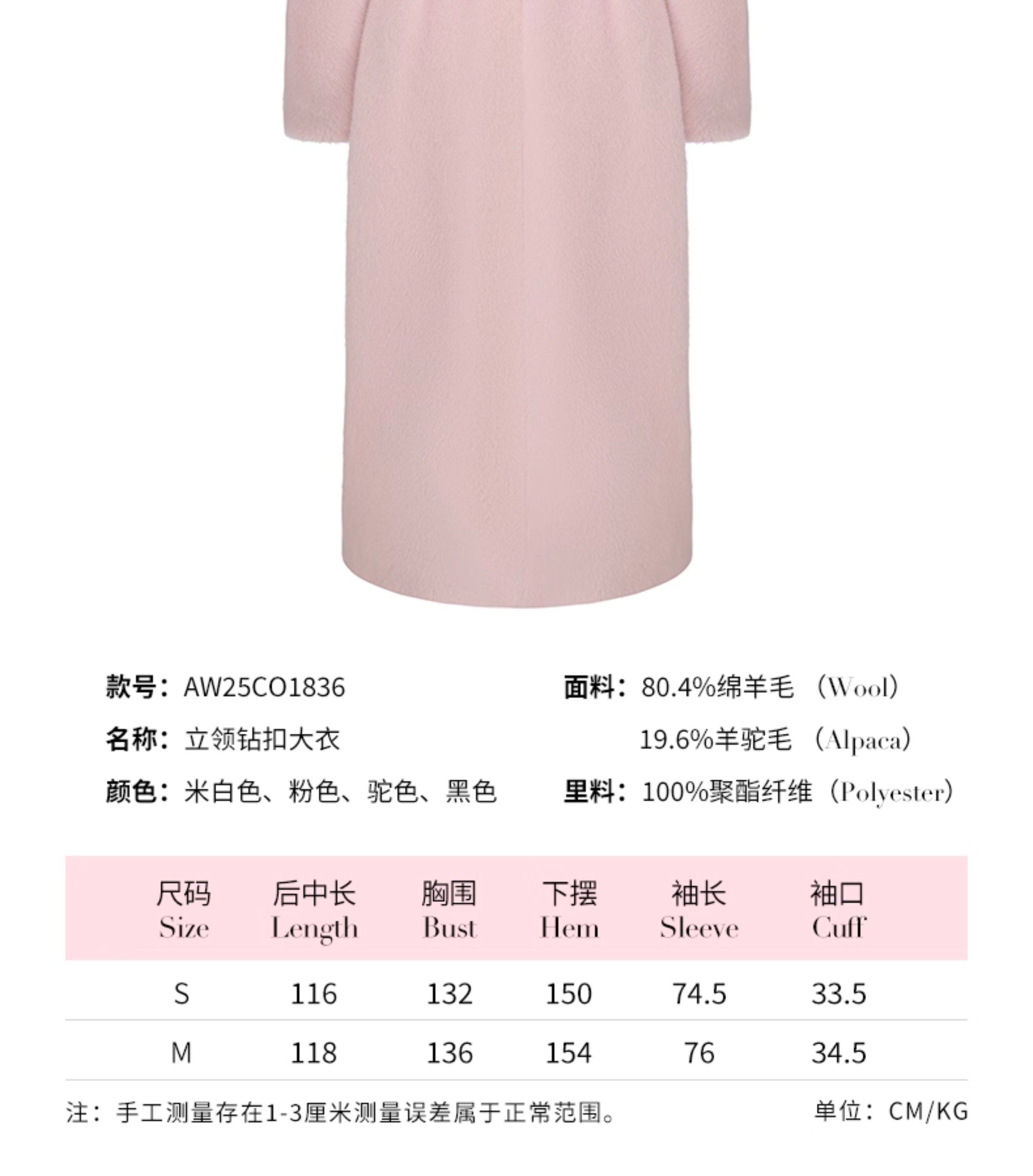 [Same Style as Xu Rulan] Nanajacqueline Stand-Up Collar Diamond Button Woolen Coat for Women, New Alpaca Wool Coat