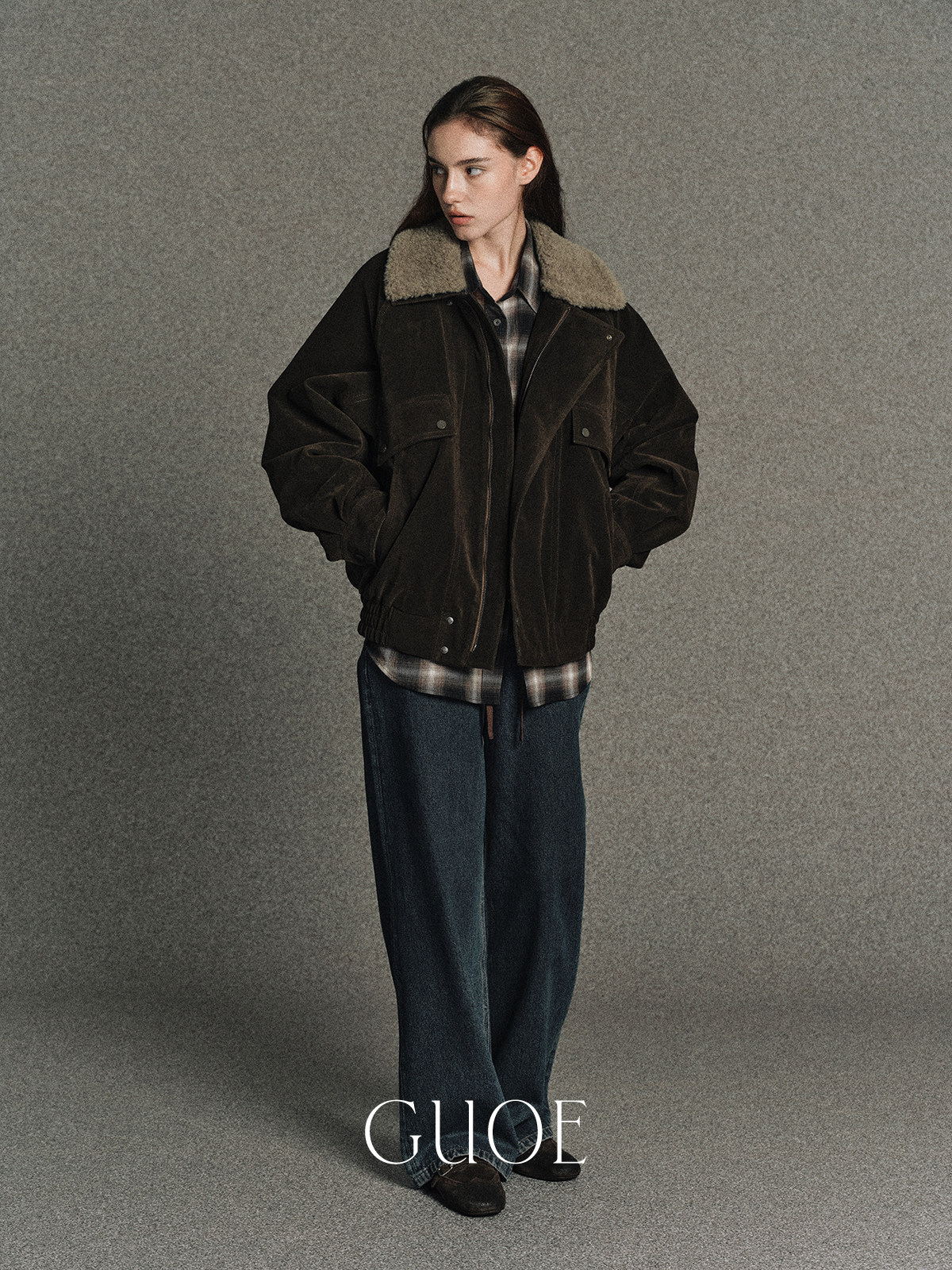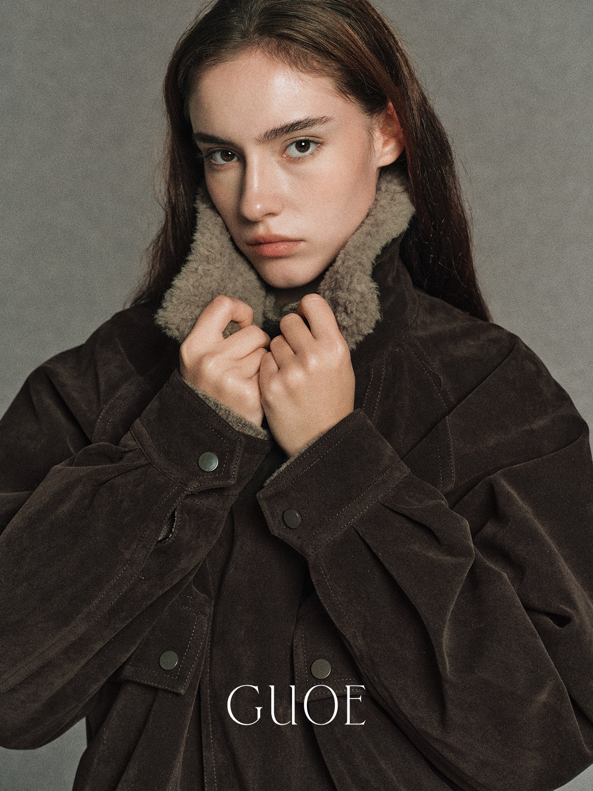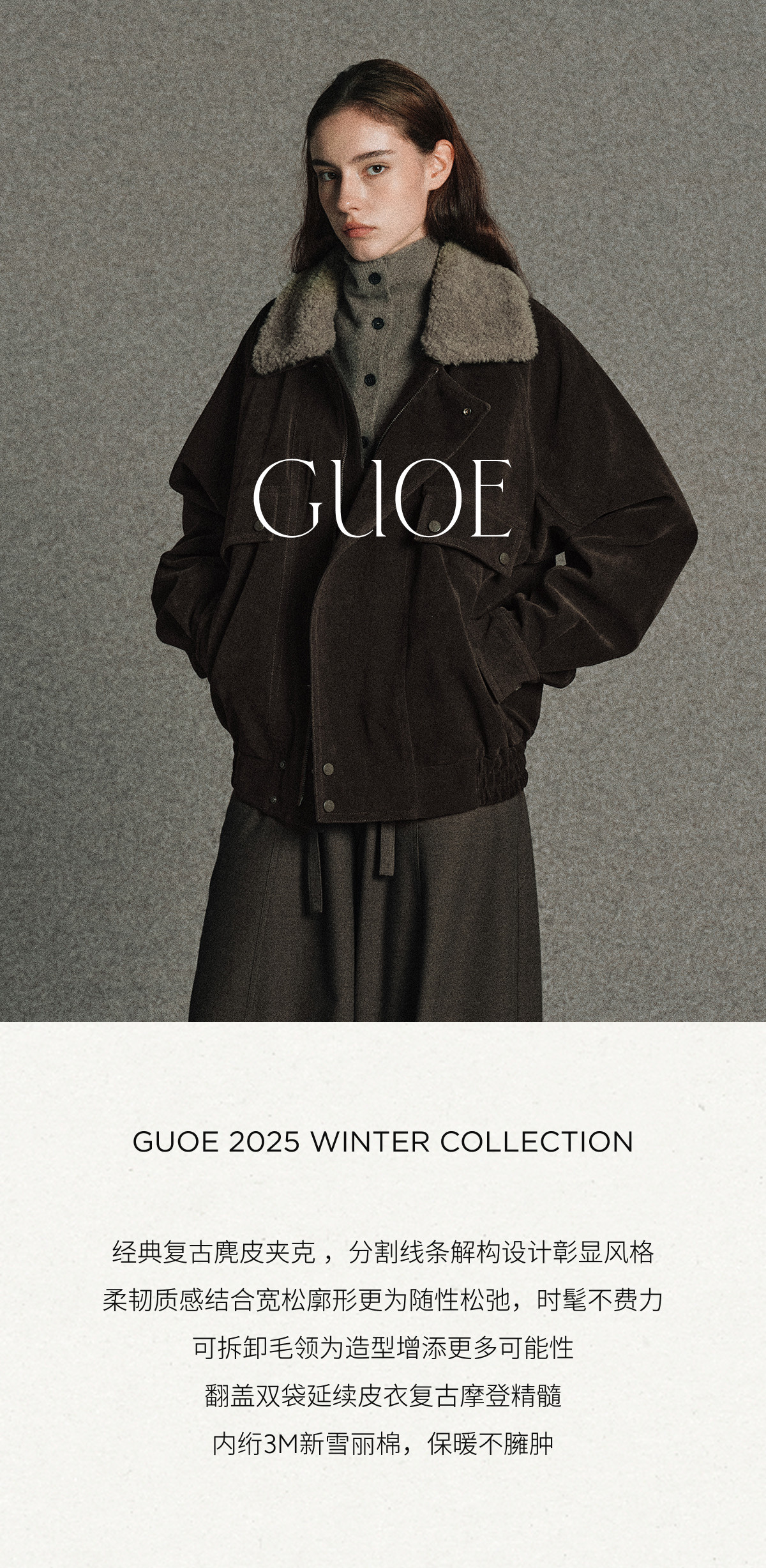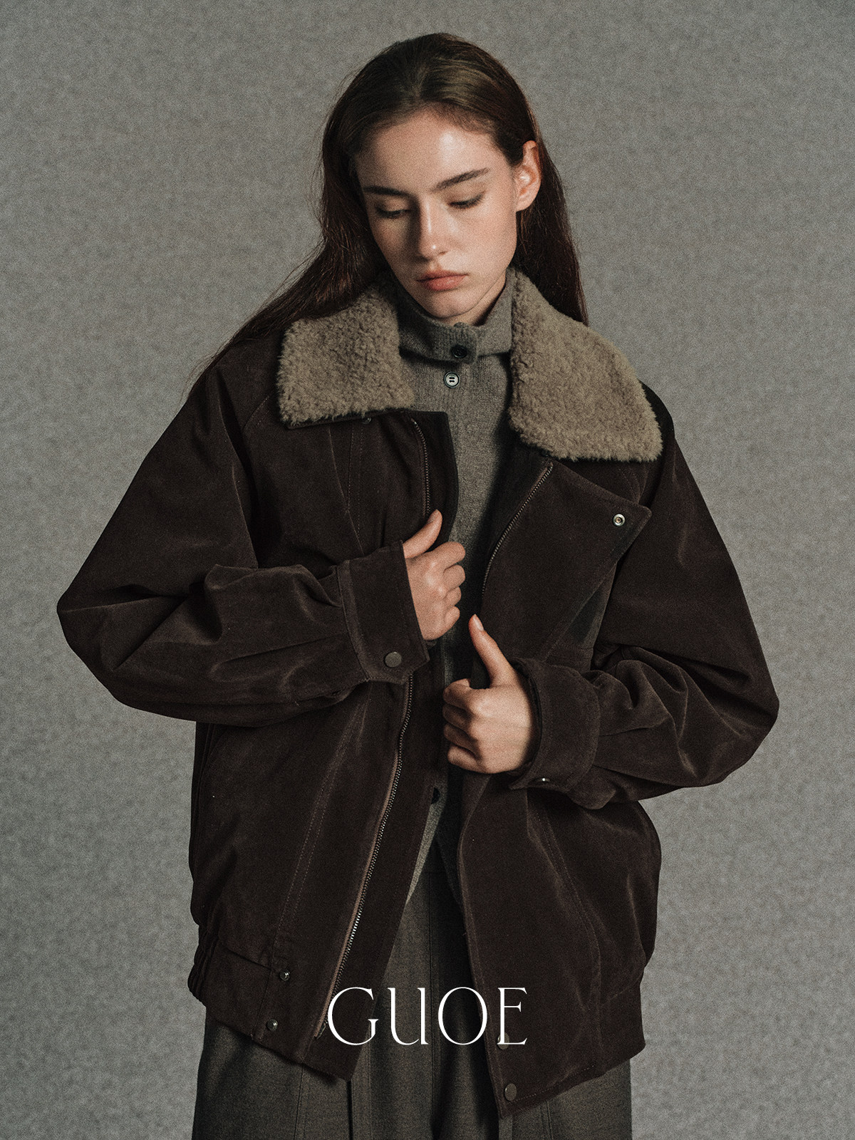 Guoe/Fashionable and Modern Detachable Fur Collar Matte Retro Suede 3m Thinsulate Cotton Jacket 31260