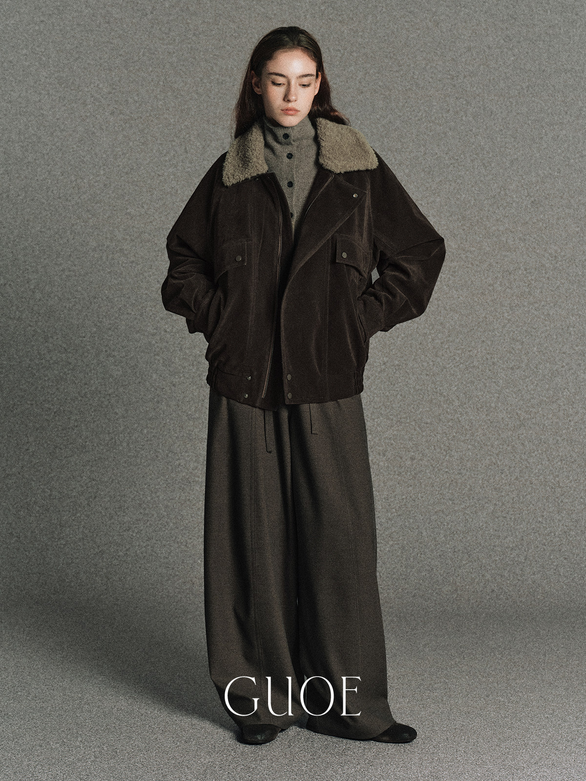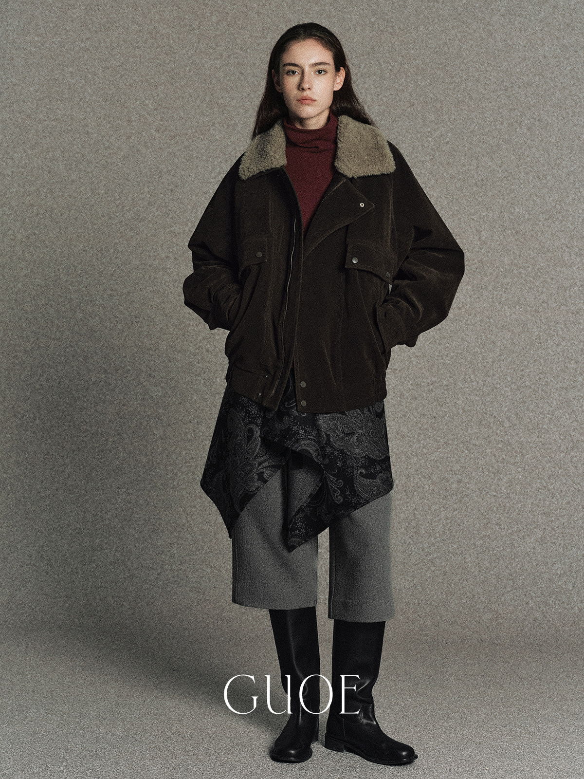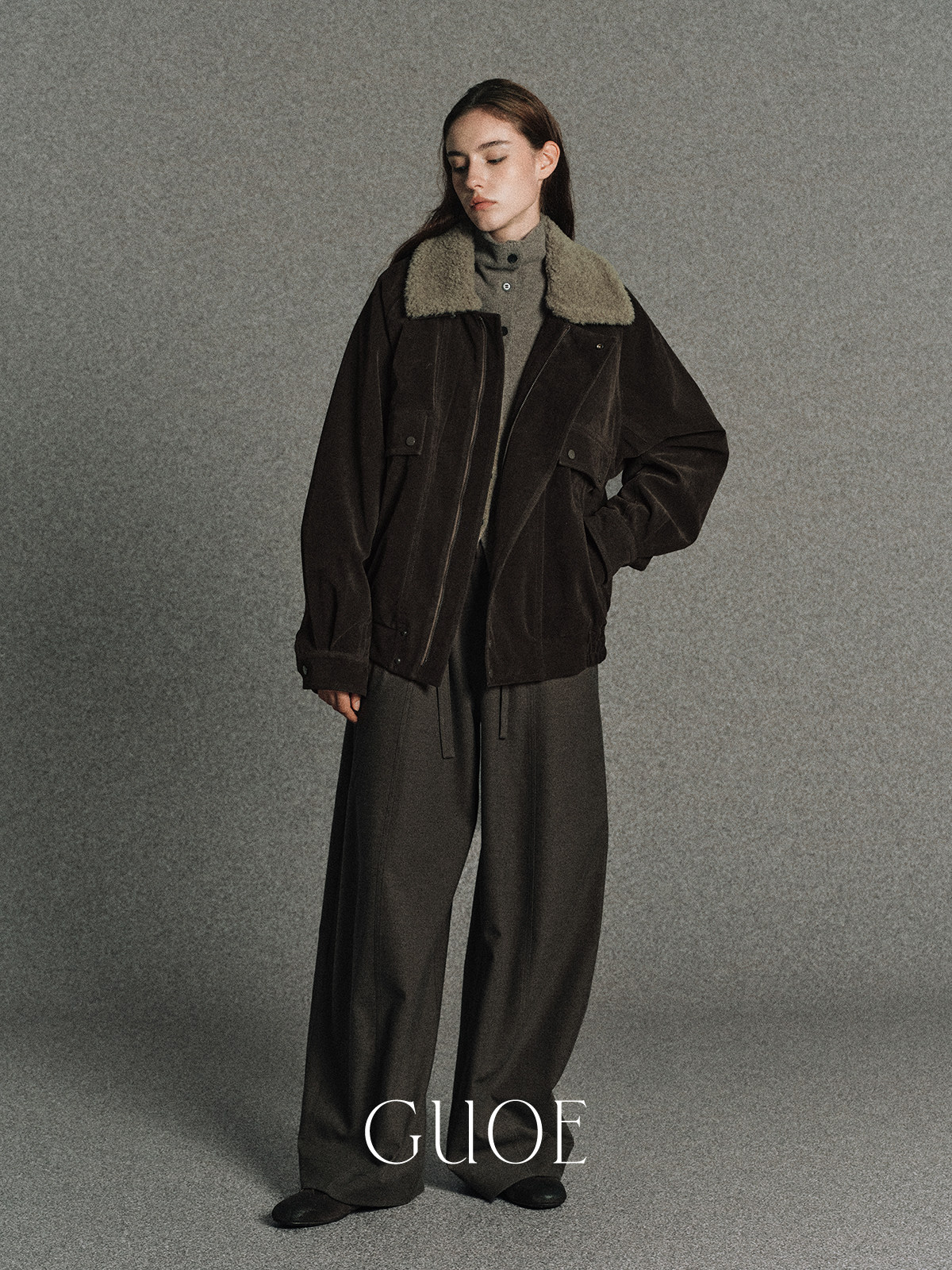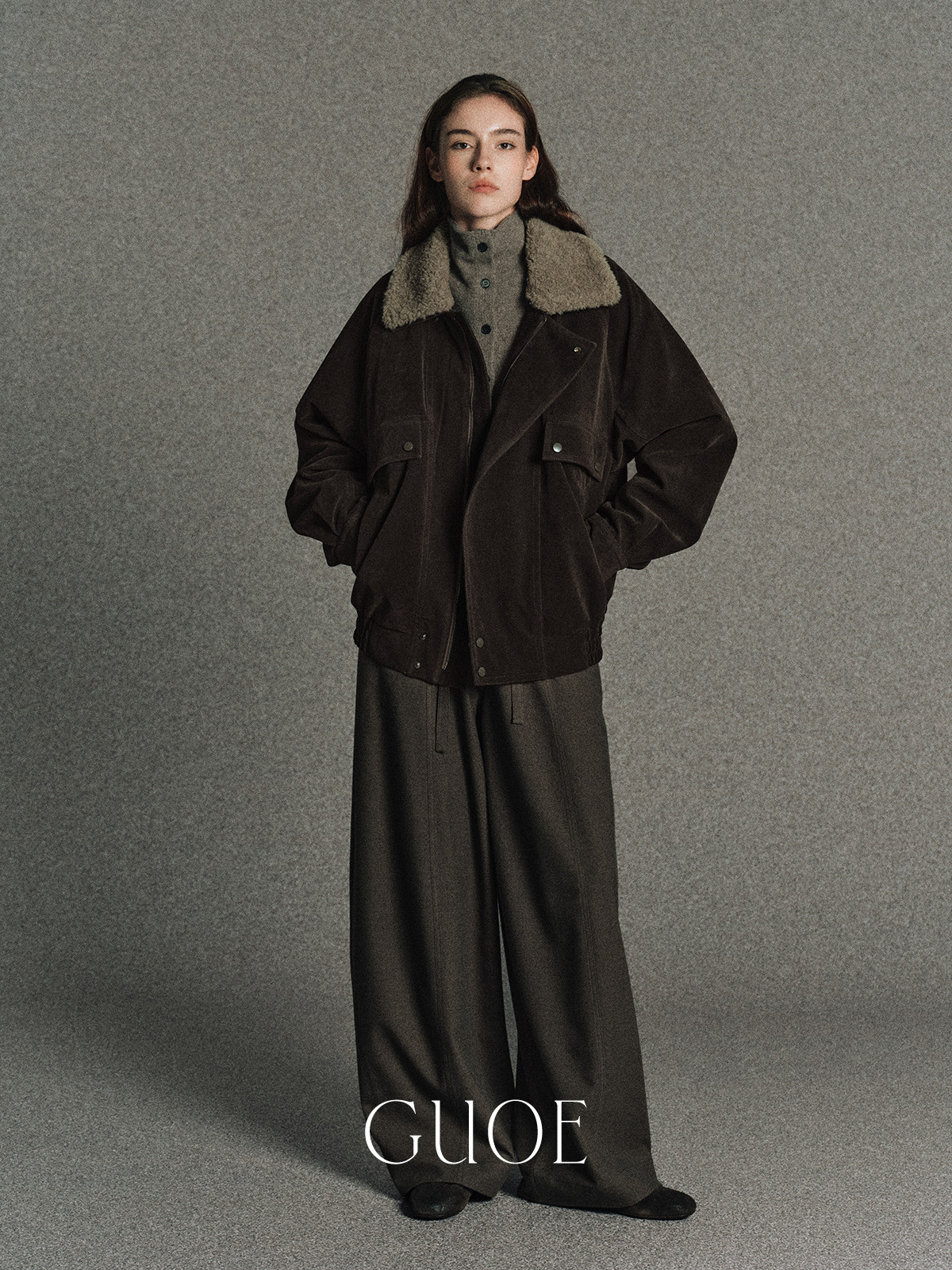Guoe/Fashionable and Modern Detachable Fur Collar Matte Retro Suede 3m Thinsulate Cotton Jacket 31260