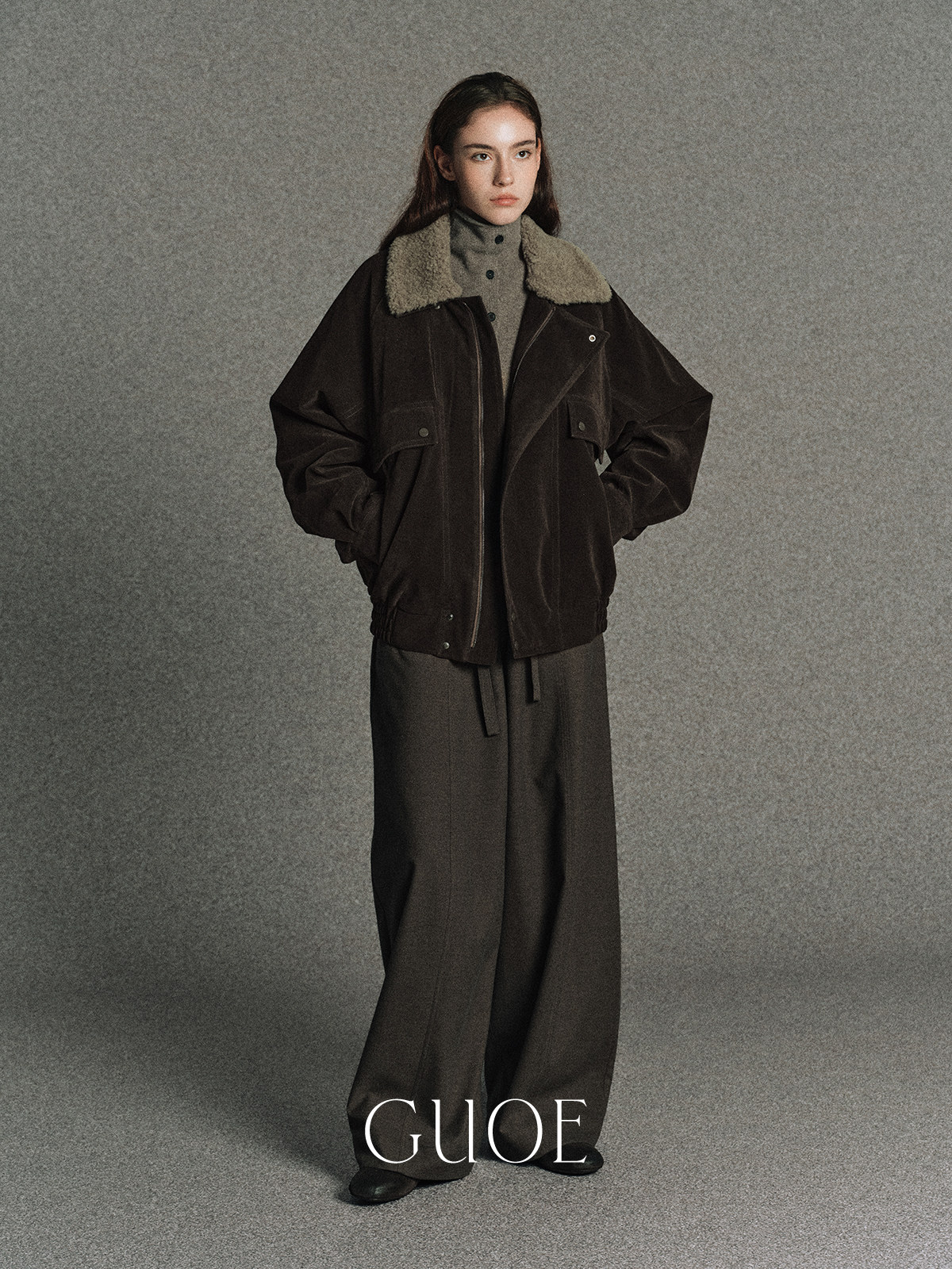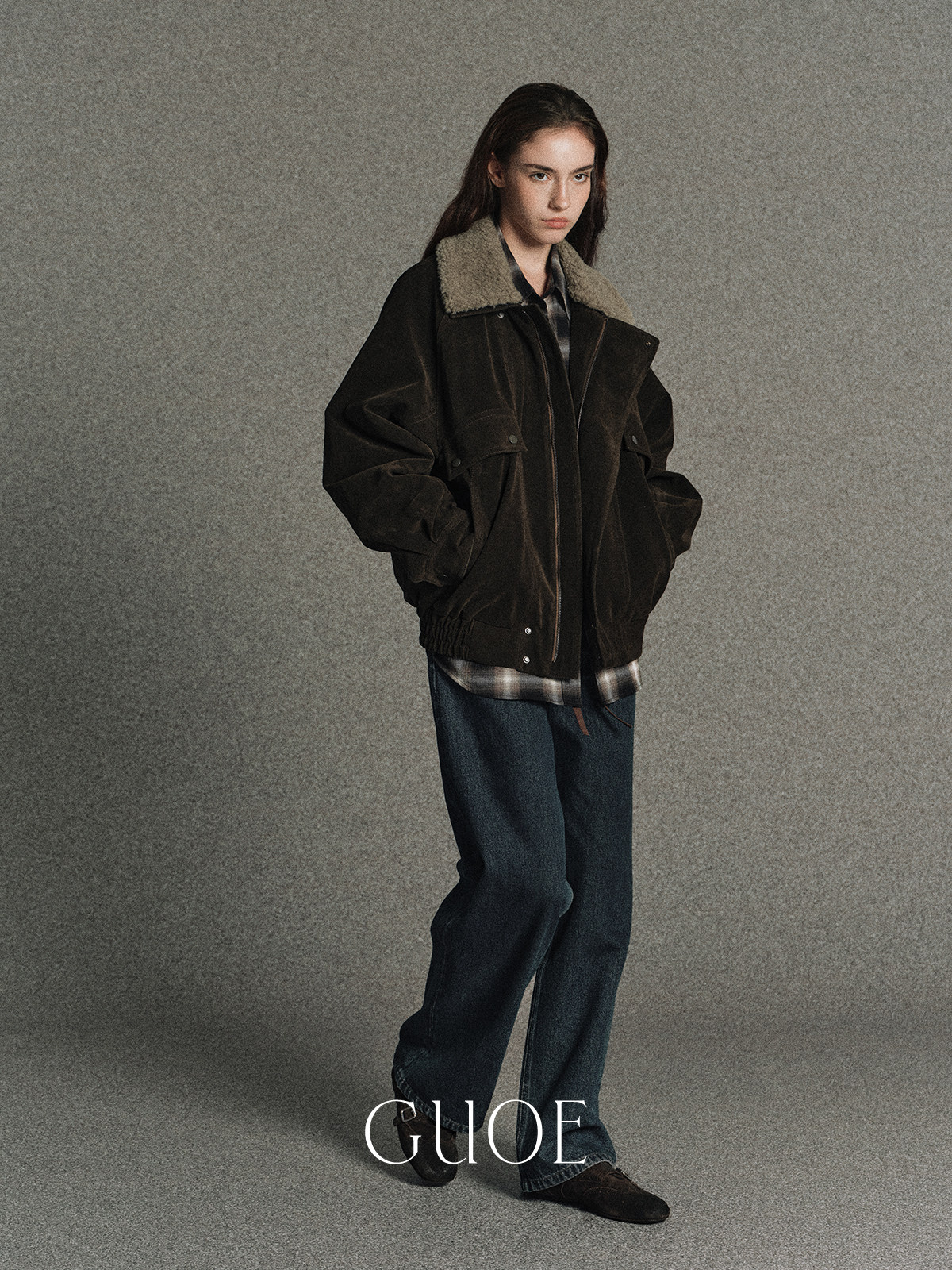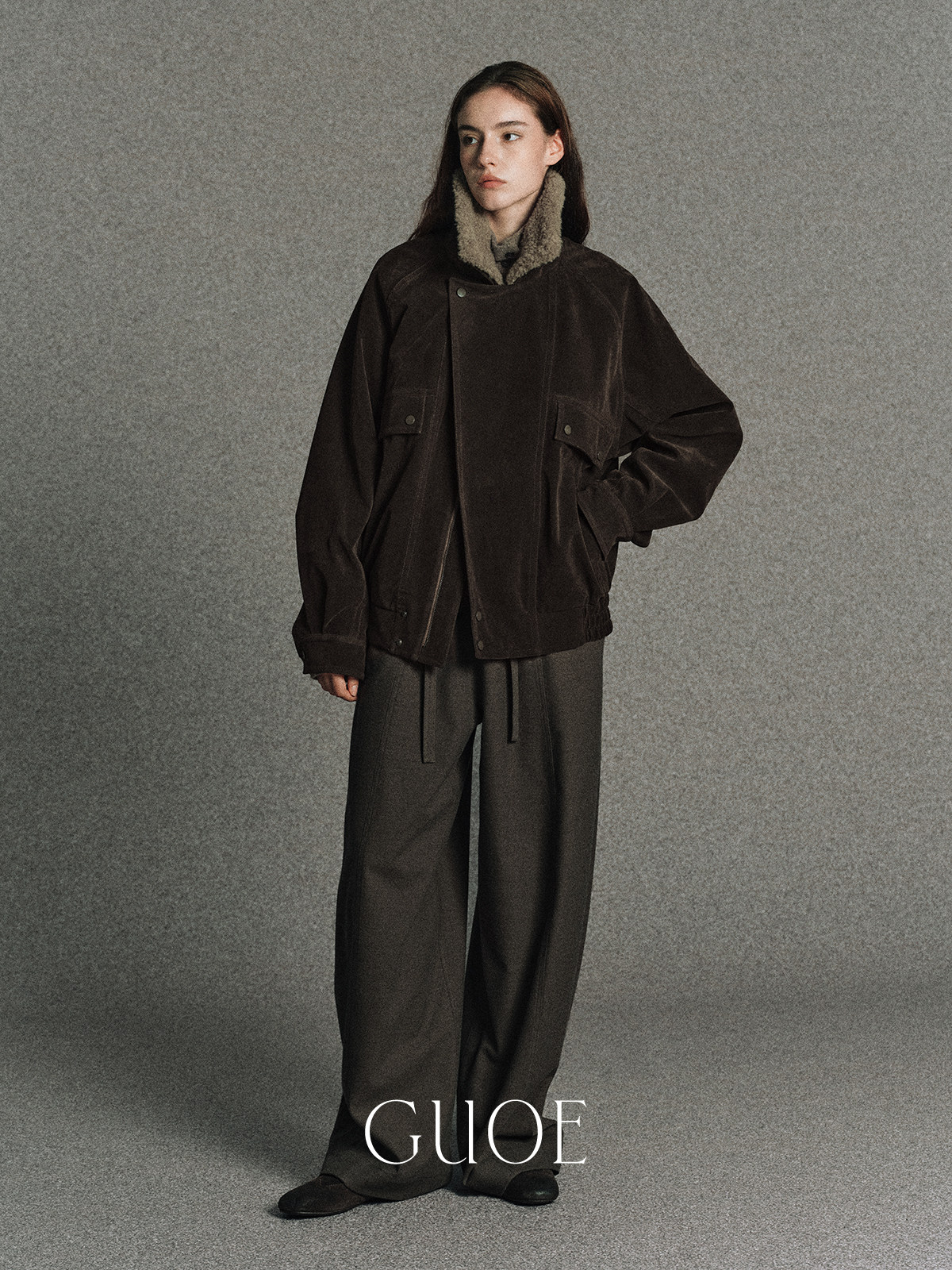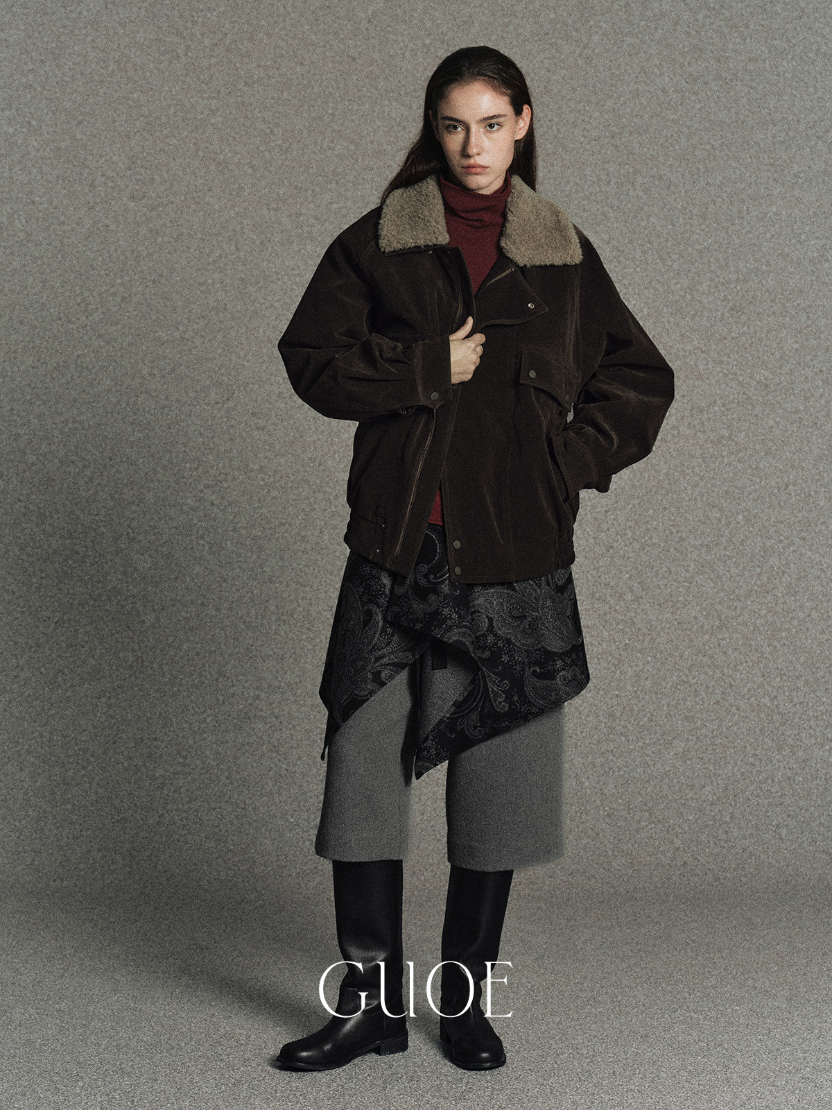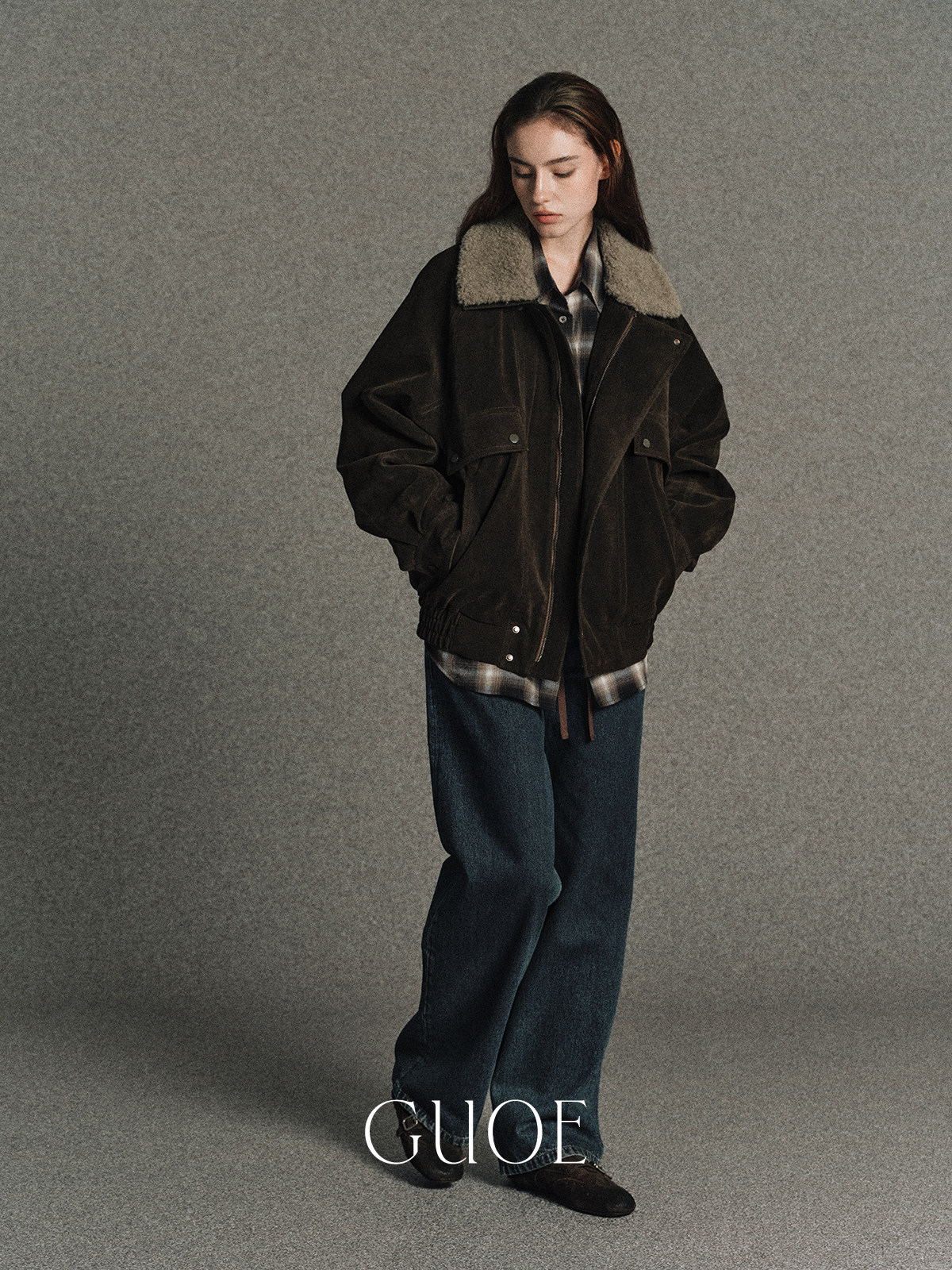Guoe/Fashionable and Modern Detachable Fur Collar Matte Retro Suede 3m Thinsulate Cotton Jacket 31260