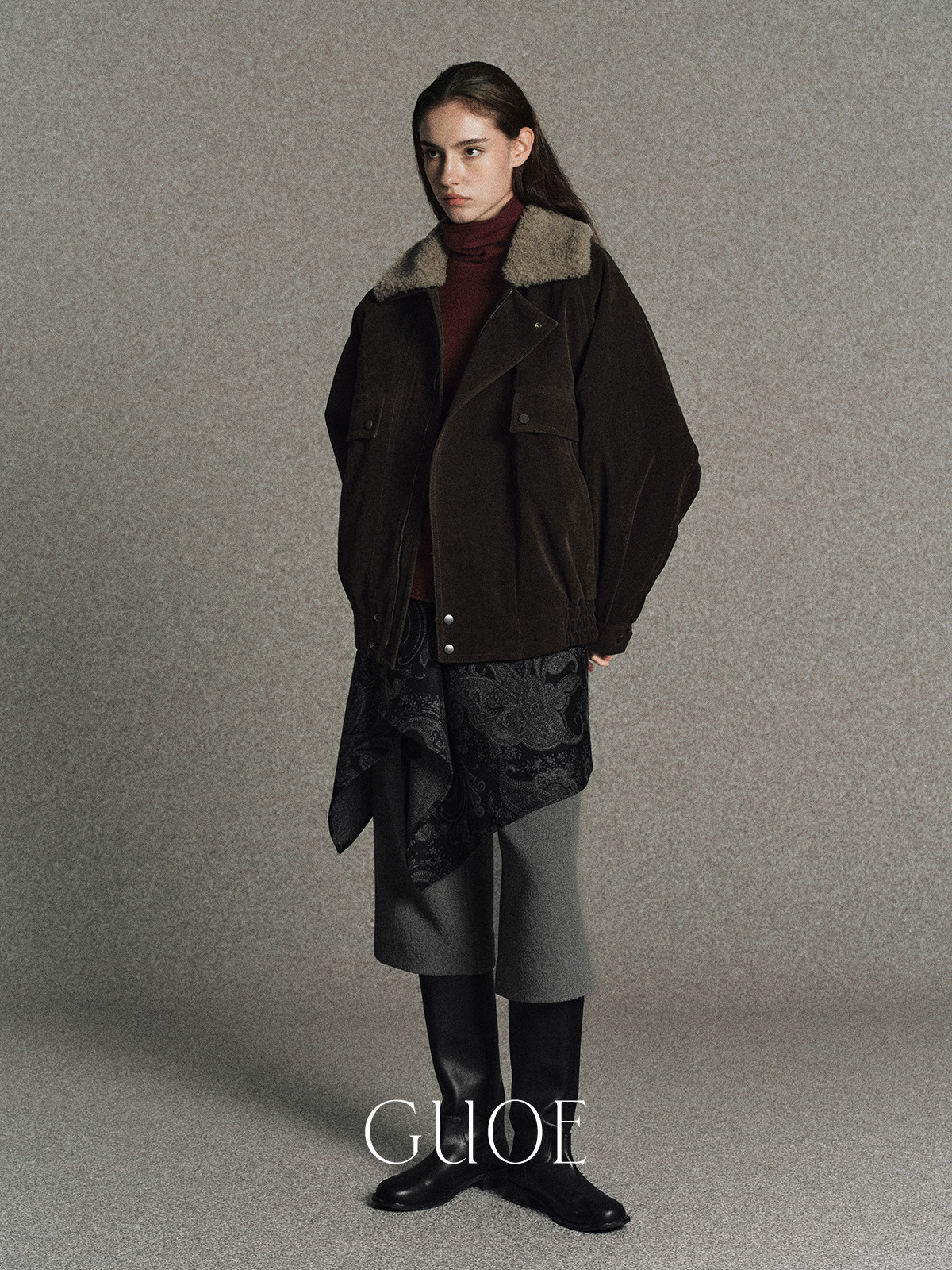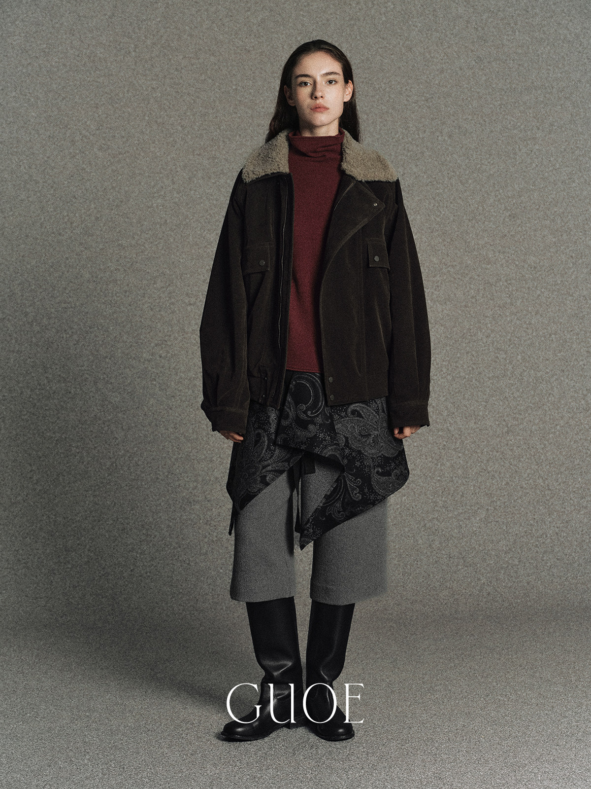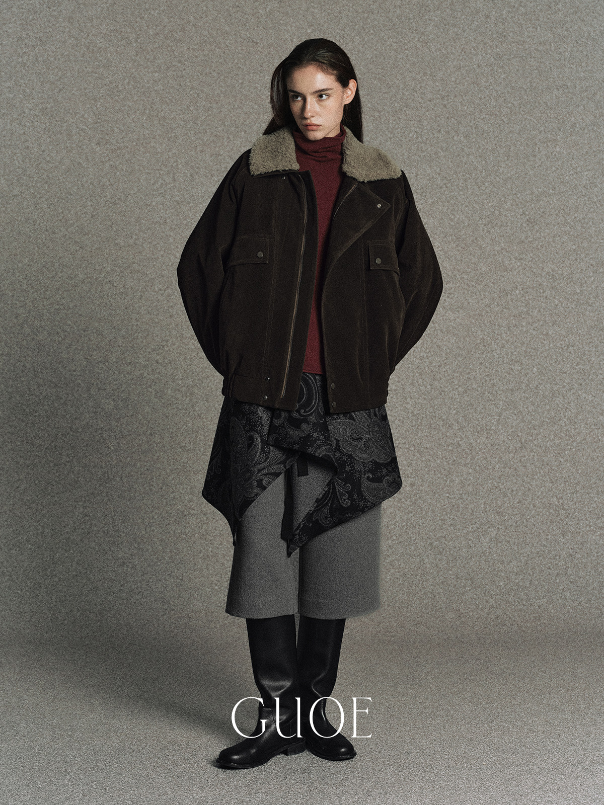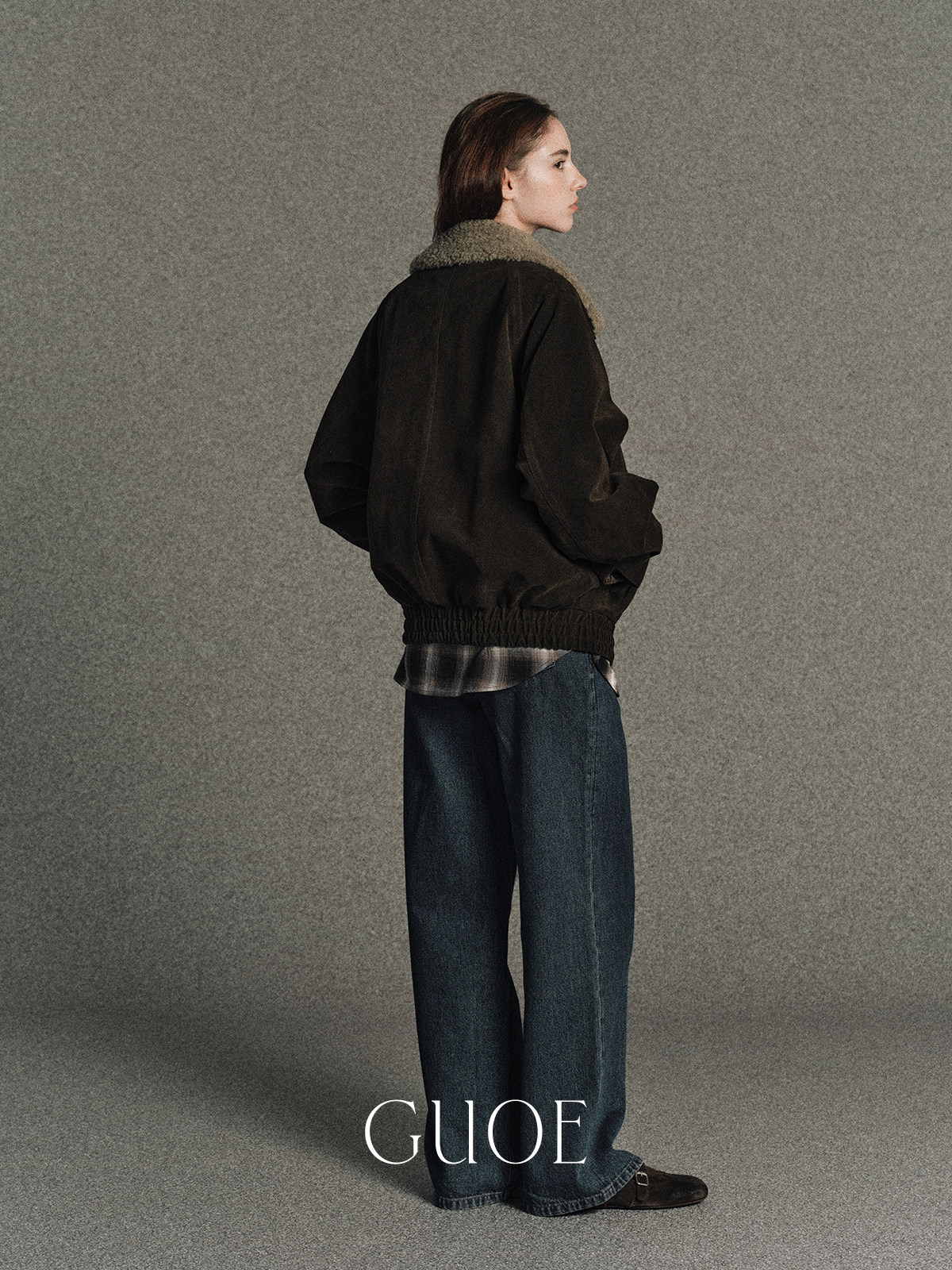 Guoe/Fashionable and Modern Detachable Fur Collar Matte Retro Suede 3m Thinsulate Cotton Jacket 31260